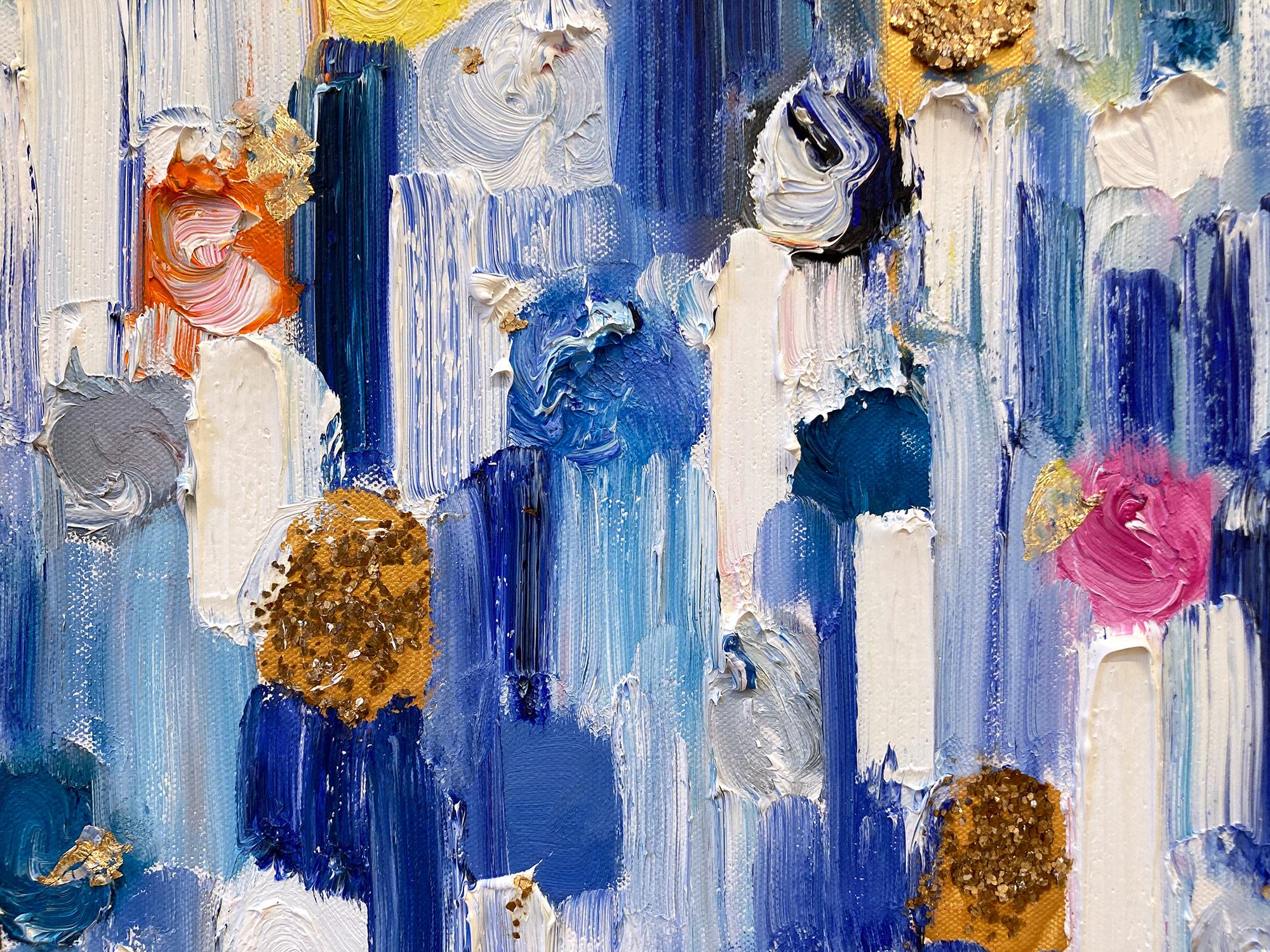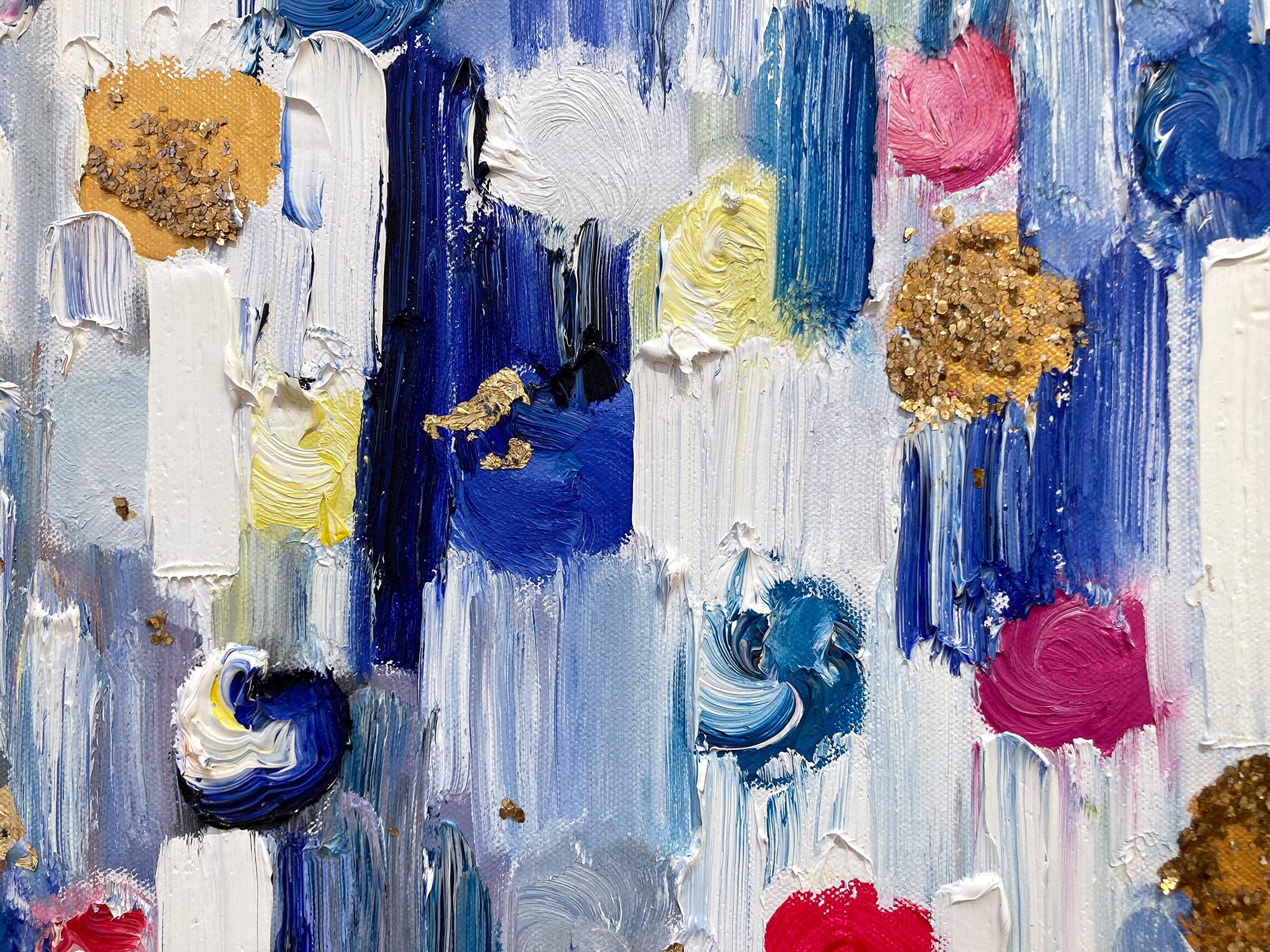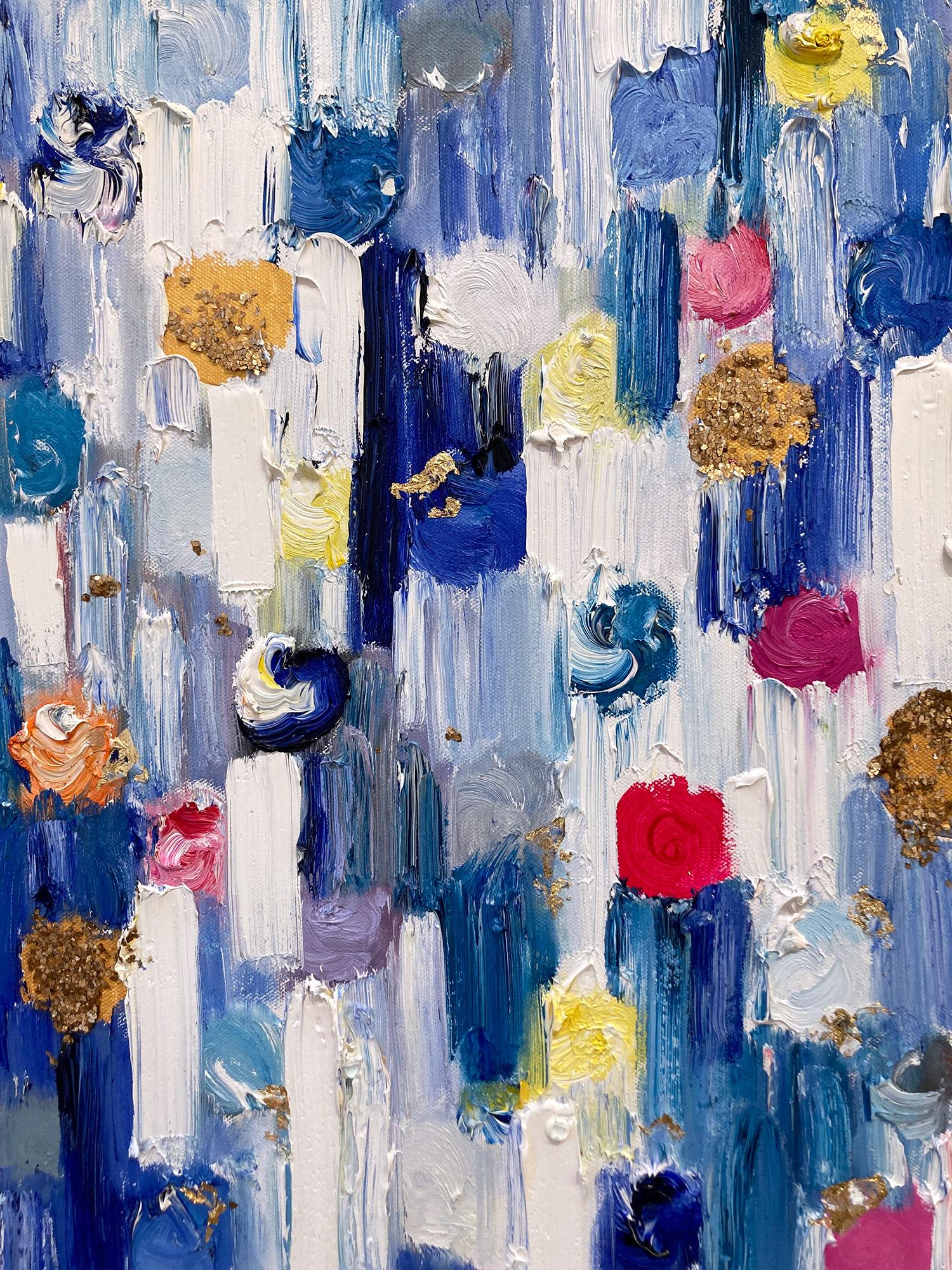 Cindy Shaoul"Dripping Dots - Barcelona" Colorful Abstract Mixed Media Oil Painting Canvas2020