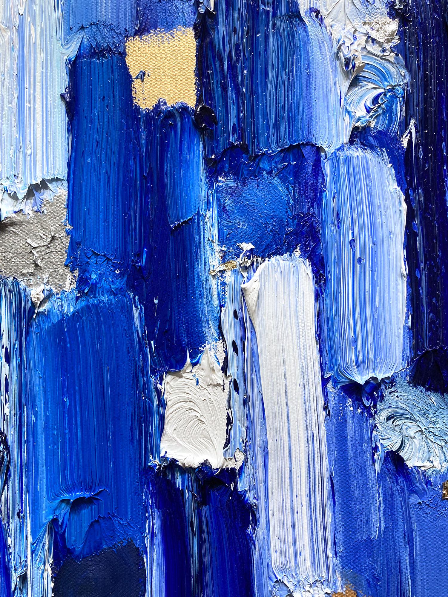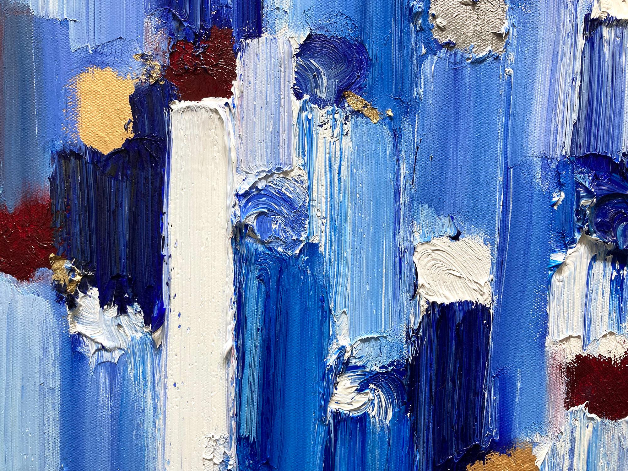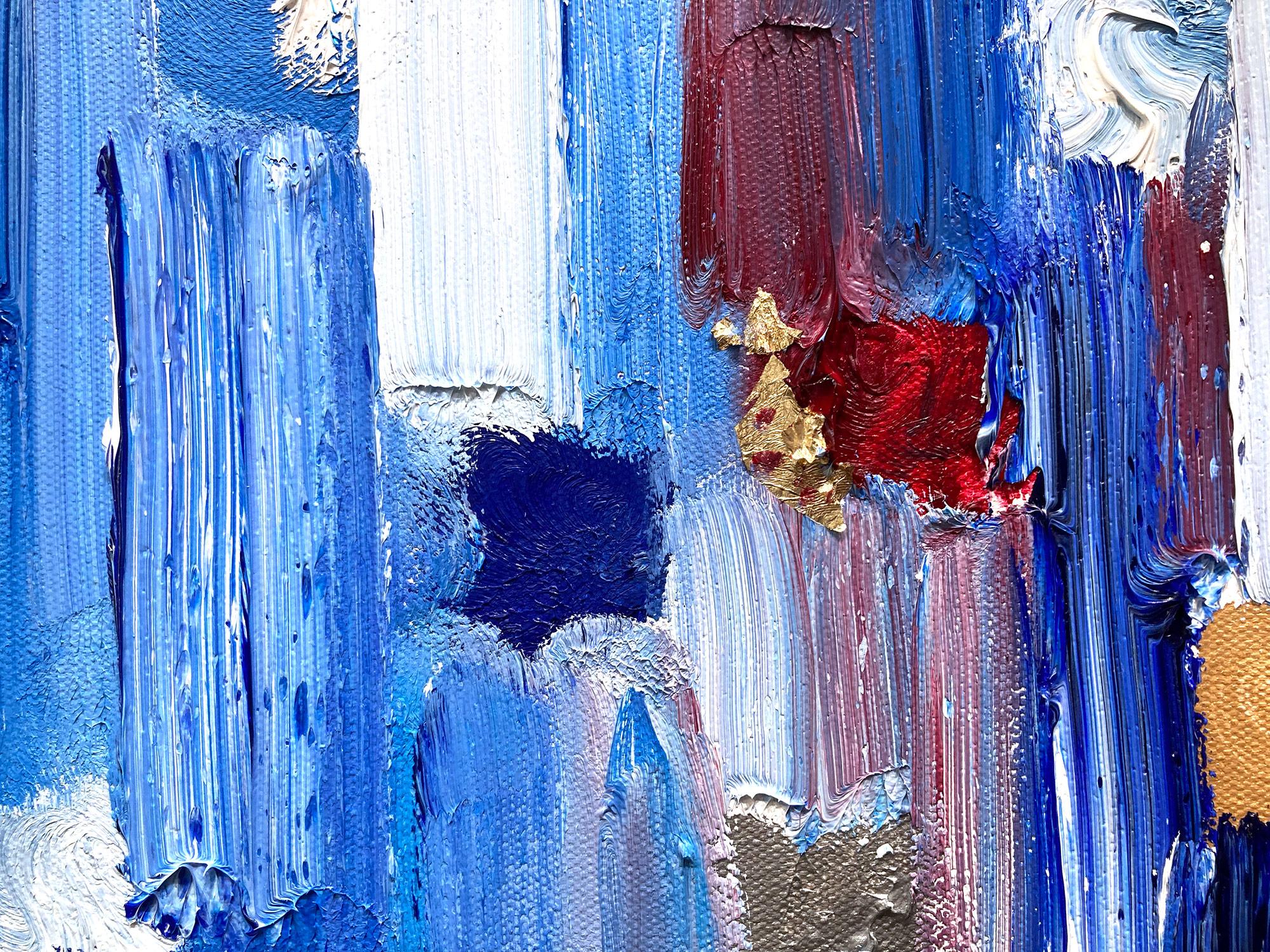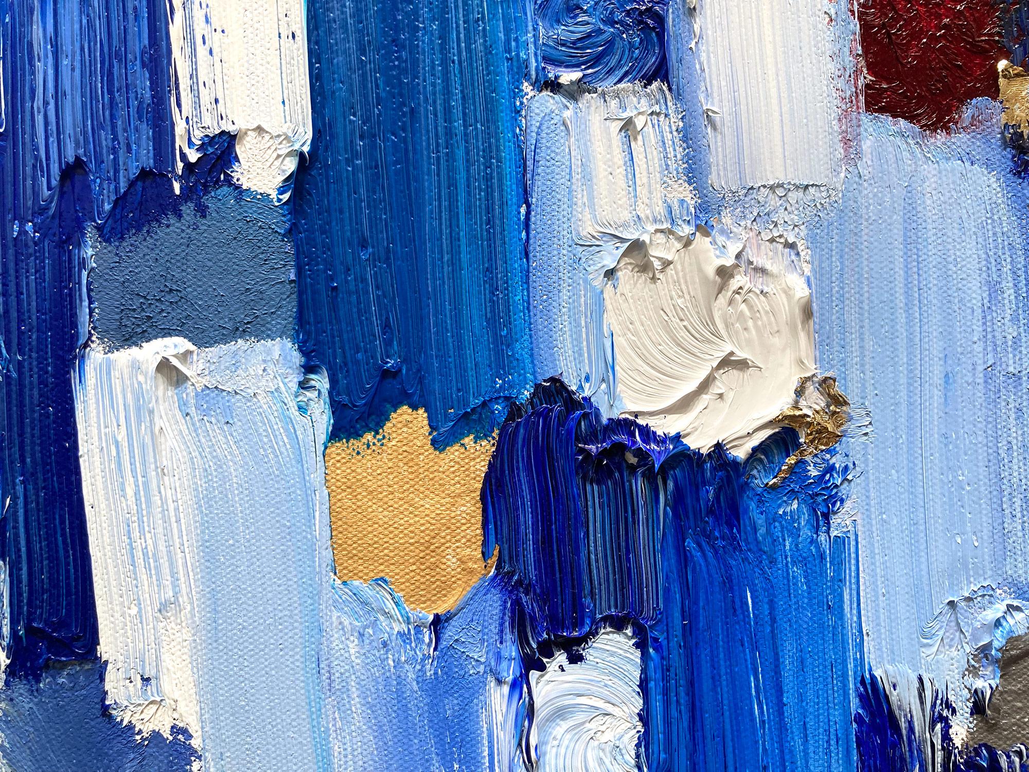 Cindy Shaoul"Dripping Dots - Manhattan" Colorful Abstract Oil Painting on Canvas & Gold Leaf2022