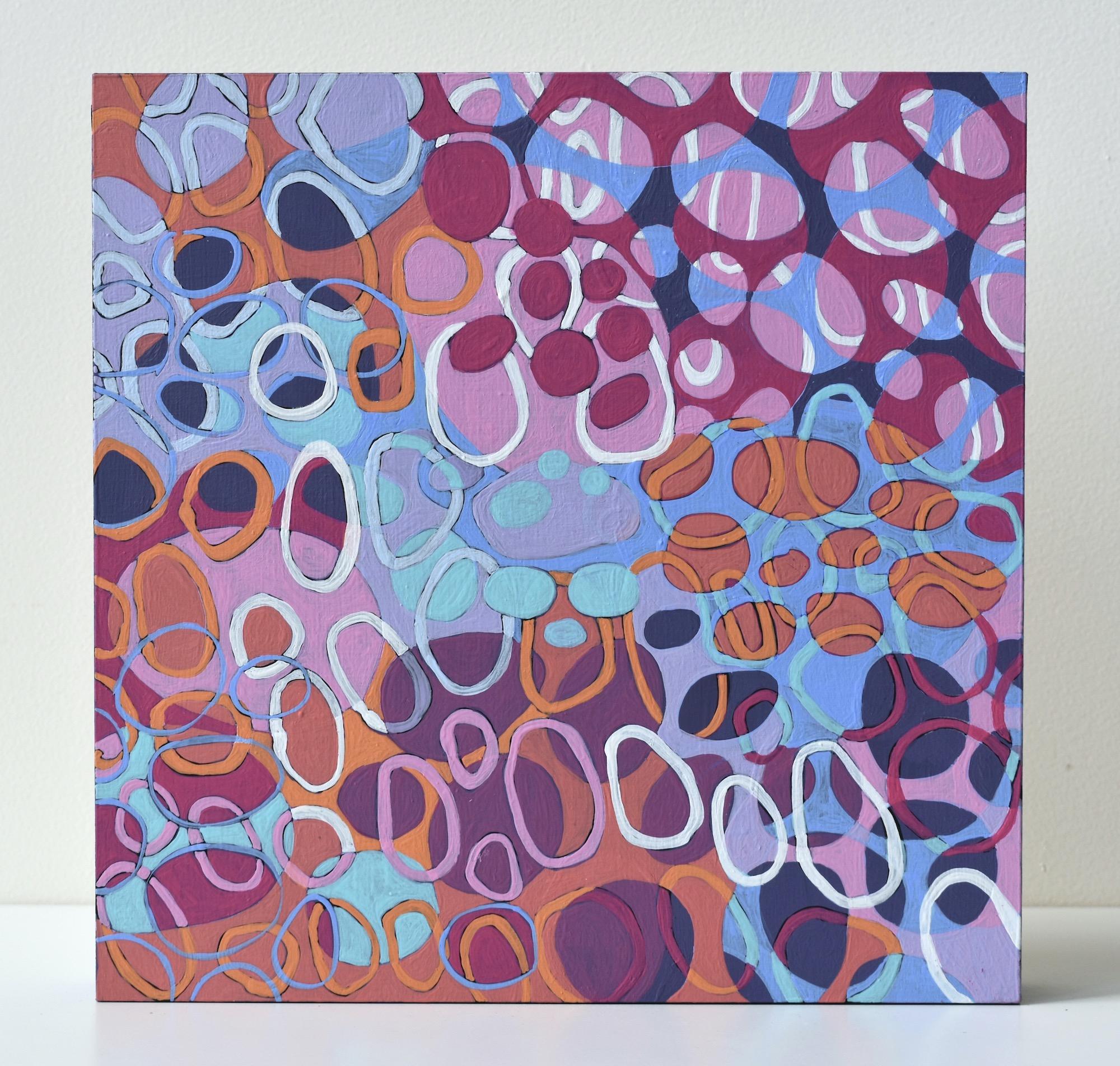 Denise Driscoll"String Theory 1", abstract, pink, orange, blue, acrylic painting2022