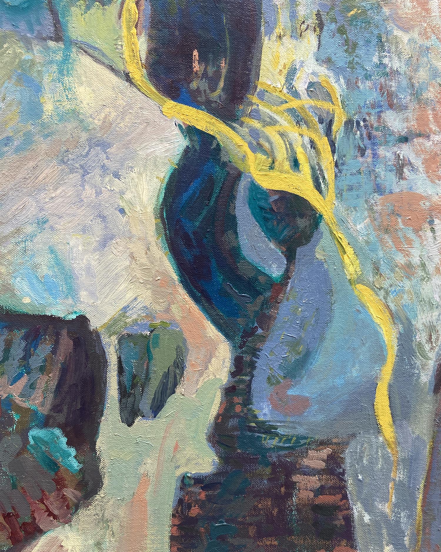 Irish American Artist Eilis Crean’s “Meanderspace” is a series of new abstract paintings influenced by her current environment in Georgia, memories of rural and coastal Ireland, and the interplay of nature and human migration. These abstract works are invented landscapes that allude to both wild and cultivated spaces, such as a backyard, a cliffside path, a north Atlantic headland, or semi-tropical undergrowths and canopies. The painting process involves layered broken mark making to create vibrational color, shifting the viewer's experience from recognition to sensation. “My intent is to dematerialize and rebuild observed and imagined forms, generating hybrid environments that evoke cyclical and metaphoric journeys,” says Eilis.