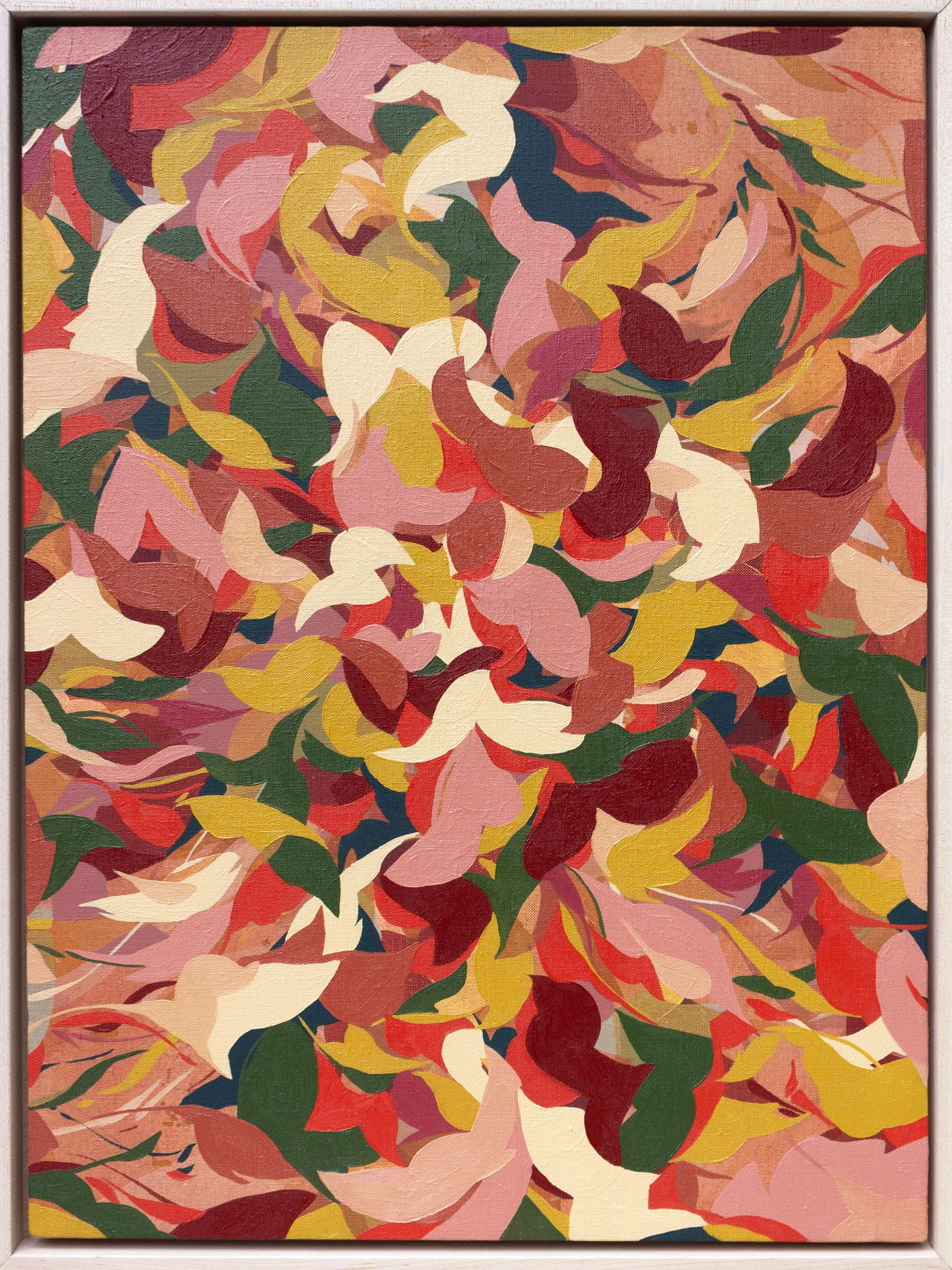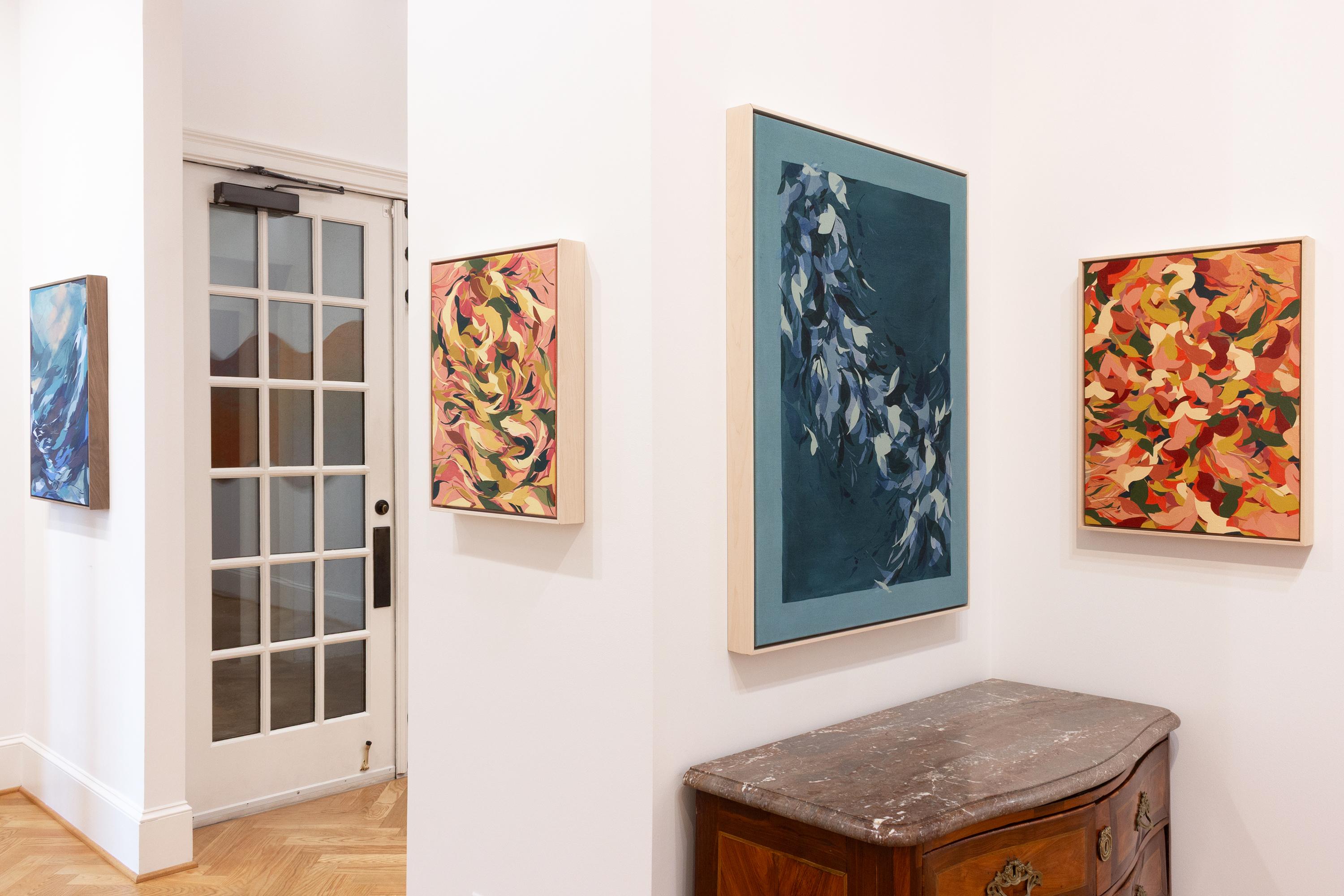 The paintings in this show evoke a sense of constant transformation mimicking light falling across water, rocks on a river bed, garden blooms, or the canopy of a forest composed of forms that are similar but never exactly the same. Many of the works were created utilizing canvases that had been left in various states of completion over the years. Past iterations became the conceptual foundation and physical substrate for the new; further embodying the practice of recollection and reimagination as facets of growth and modes of evolution.