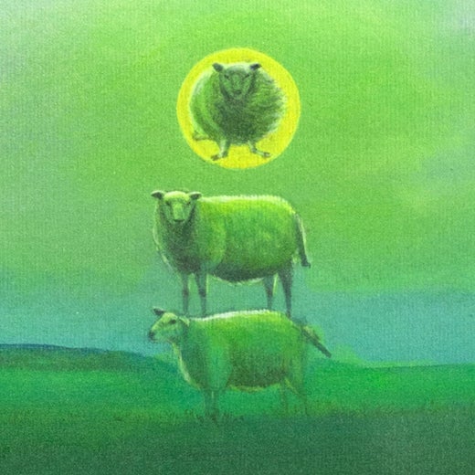 GozoSurrealist Painting on Paper, Figures Walking Under Moonlit Sky with MicKey Ears2024