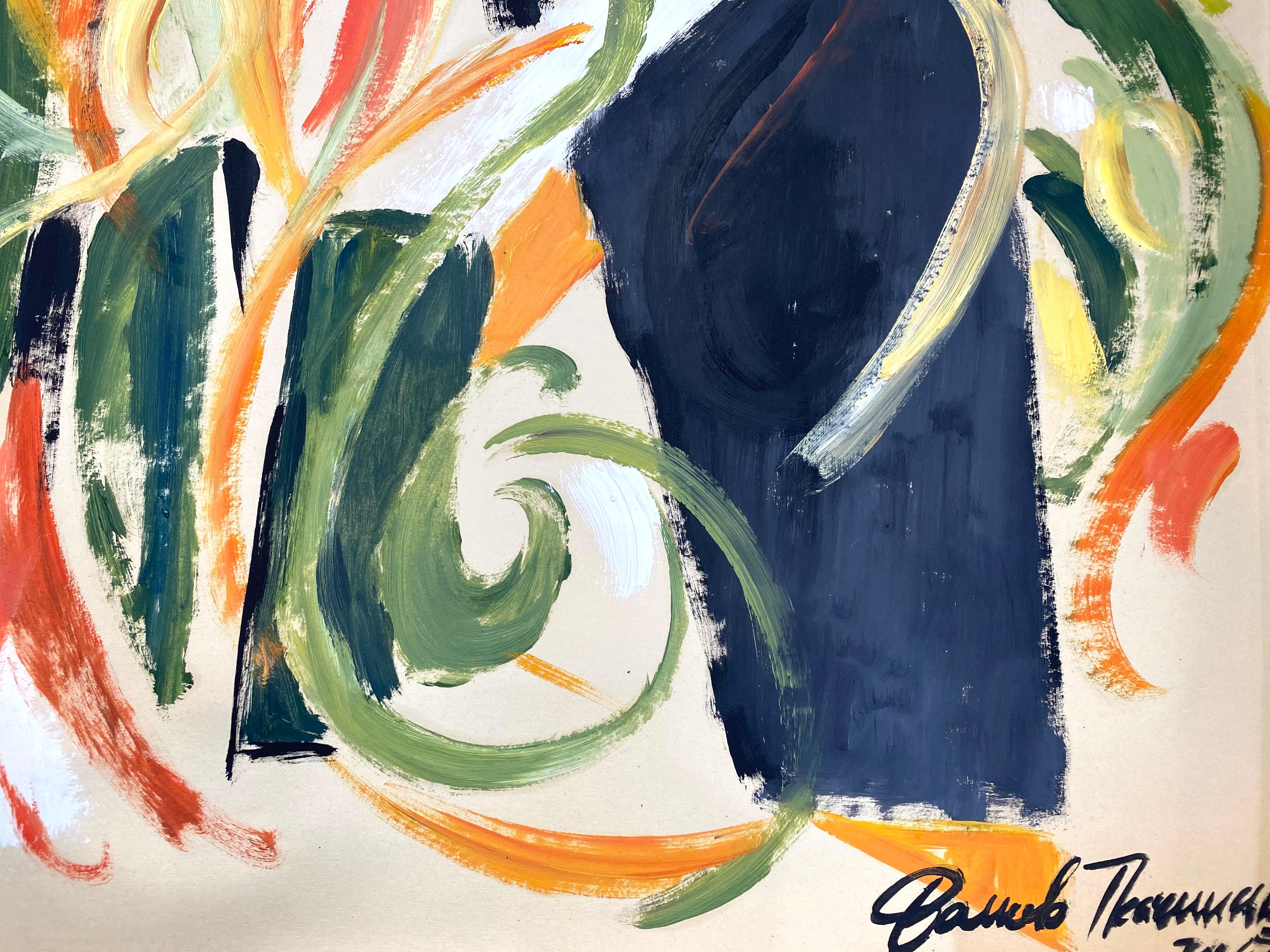 This dynamic composition was created in 2022, before the war, in the artist’s studio in Kyiv, Ukraine, on a linen canvas from the 1960s. The use of this vintage material adds a layer...