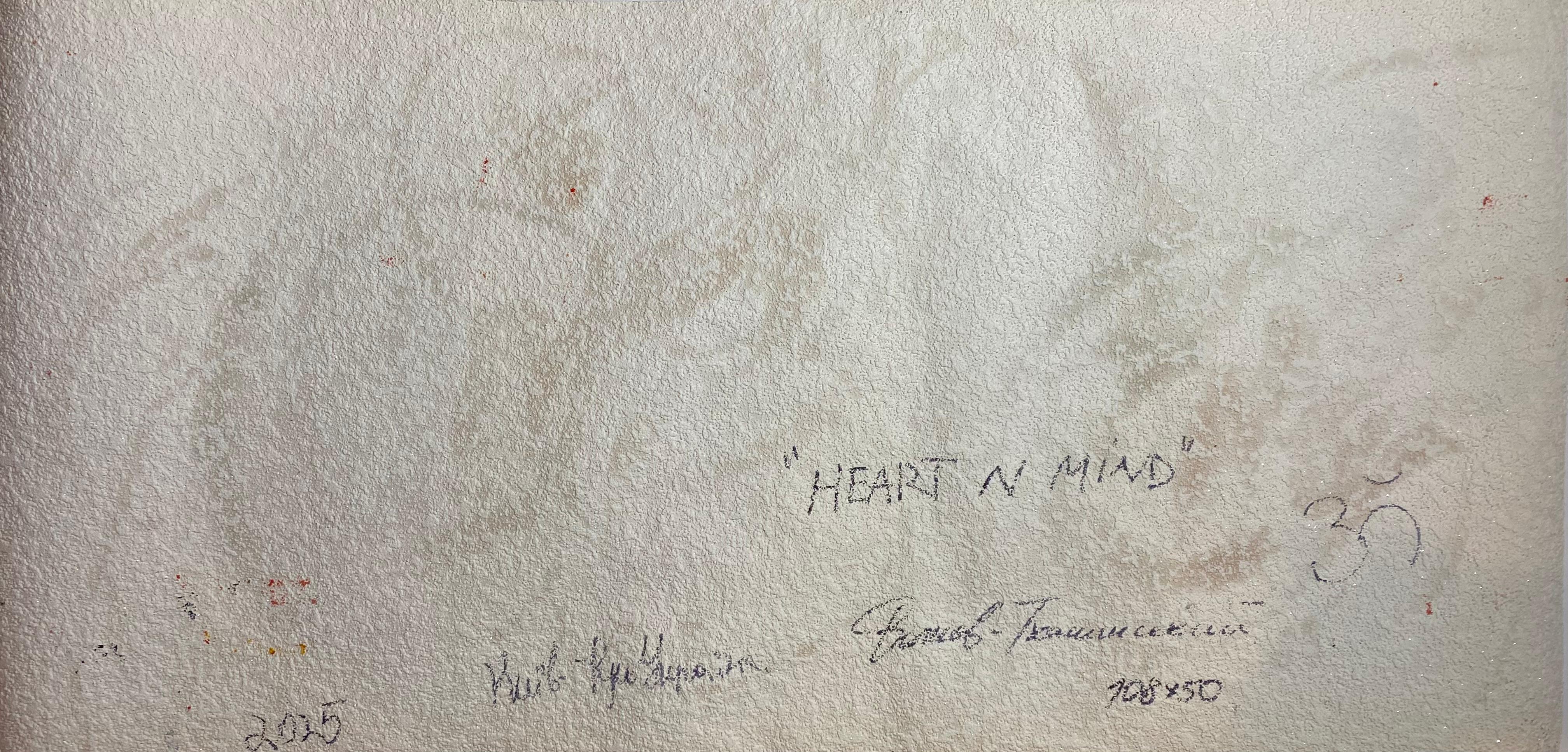 “Heart and mind ” was created during a deeply transformative and challenging stage in the artist’s life — a time of tension between the heart and the mind, and a search for balance amid the pressures of the external world. This painting reflects the process of inner confrontation, where emotions, doubts, and desires collide, yet ultimately find resolution through creativity.