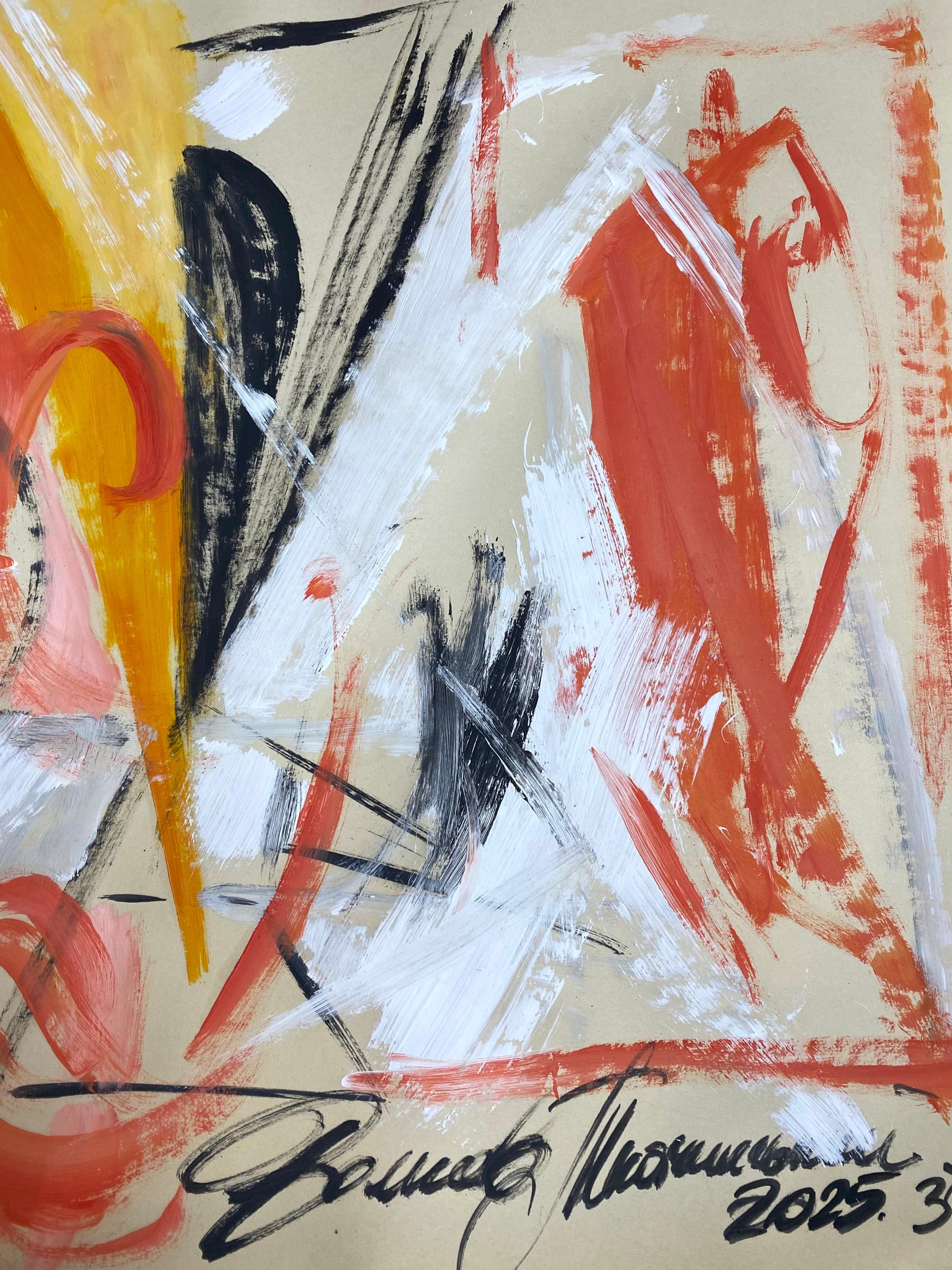 The dynamic abstraction by Ihor Volkov-Tkachynskyi opens a spacious field for contemplation and dialogue between the viewer and the work itself. It unfolds through rhythm, movement, and the living vibration of color — a pulsation that emerges from the tension between light and shadow, silence and explosion, material gesture and transparency.