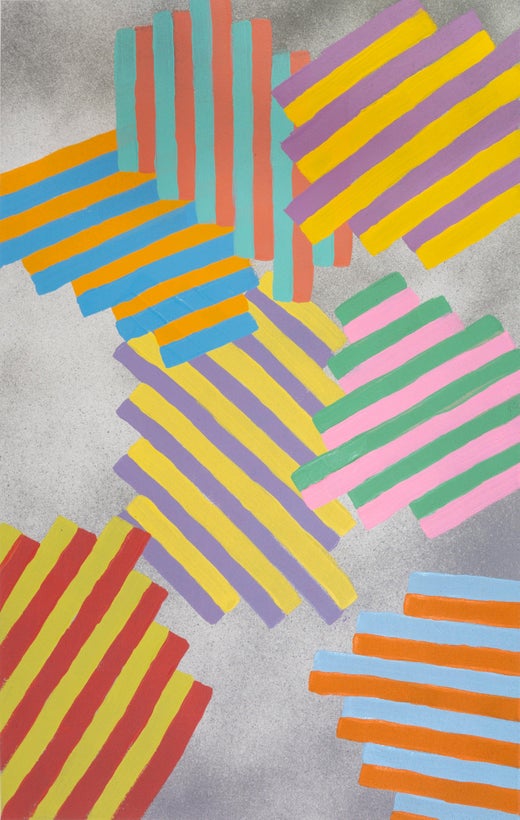 Jay Walker is best known for his large-scale, site-specific installations and collector's pieces created with laser-cut vinyl, colored acrylic sheets, artist-made stencils, tape, and paint. His use of pattern, lines, color, and geometry references the aesthetic traditions of Sol Lewitt and Henri Matisse, applied to the contemporary experience. In Walker's newest series, his prismatic polygons appear to shift color and shape depending on the viewing perspective. Walker's paintings work particularly well in a pair or series -- each sold separately, but could be combined for shipping at no additional charge. All are signed, dated, and titled in the lower margin.