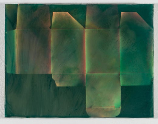Joanne Ungar is originally from Minneapolis. After studies at Oberlin College in Ohio, she moved to New York City and earned a BFA from the School of Visual Arts. Joanne Ungar is a New York Foundation for the Arts NYSCA/NYFA Artist Fellowship program Grant recipient. Ungar has exhibited extensively in New York and nationally. The poured wax paintings by Ungar are composed with the geometric forms of recycled packaging and layered and infused with pigmented wax. Ungar is an alchemist and her studio is a science lab. Her father was a scientist. When she was growing up, he talked about how art and science were really one and the same thing, a methodical exploration of ideas crossed with joyous creativity and some random surprises. Built on these origins and continuing into an intense studio practice, Ungar states, “I often set up experiments with variables and a control group in order to solve a problem of opacity or pigmentation, for example. I also like to push my materials beyond my understanding of them, seeing what happens when they melt, seeing what will stick to what and for how long, what happens to them at stupidly high temperatures. I am ridiculously methodically organized and in addition to cataloging each piece, I sometimes catalog it through its various versions or changes.” This highly dedicated and rigorous studio practice creates astounding results that have transformed modest materials into gold. The pain relievers themselves have been removed, yet the implication is present in the title of the works. Ungar is an expert in misdirection and illusion and the barrier between the illusionary space and physical becomes blurred into a wholly new modality. She currently lives and works in Brooklyn, New York.