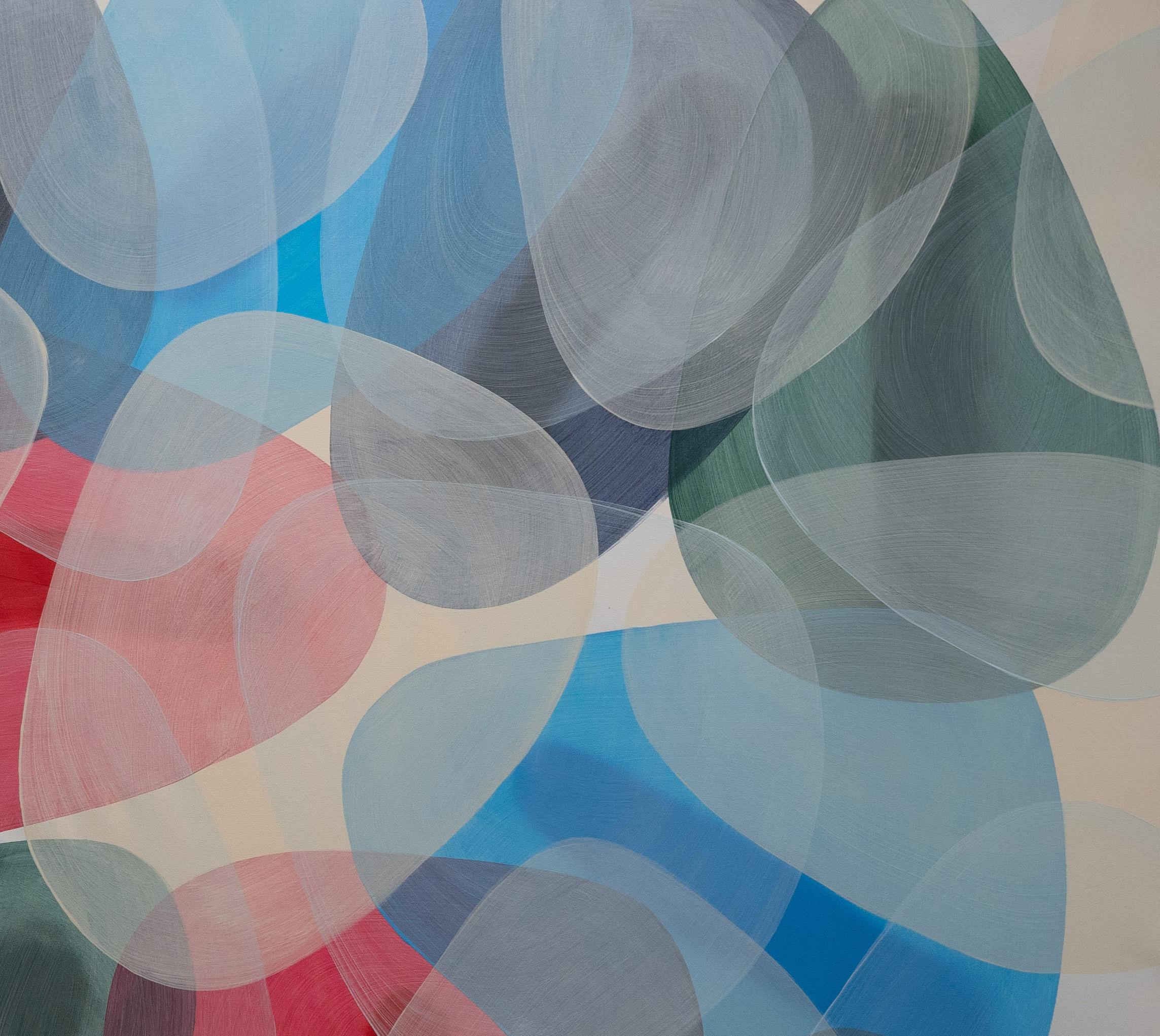 His recent abstractions display a unique style and focus on optical color combinations, ranging from the fragmented application of pure pigmentation to extensive, oval shapes of semi-opaque pigments. Amador superimposes these translucent color patches with the intention of filling the plane with an assortment of hues frozen in a process of transformation. Free from the burden of a specific narrative or message, the meaning of these works depends on the appreciation of each viewer—on their individual and biological capacity to instantly perceive, comprehend, and interpret color introspectively.
