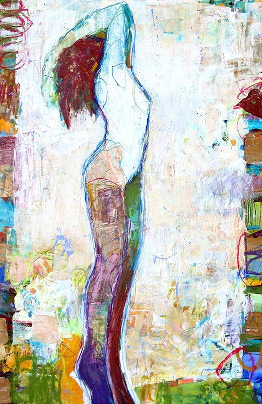 Gustlin draws on the legendary decades-long Bay Area Figurative Movement and creates abstract and representational art that explores Fibonacci mathematical theories. She works with acrylic paints, epoxy resins, wax, charcoal, graphite and more to create provocative mixed-media paintings that feature complex, dazzling patterns and rich swathes of color.