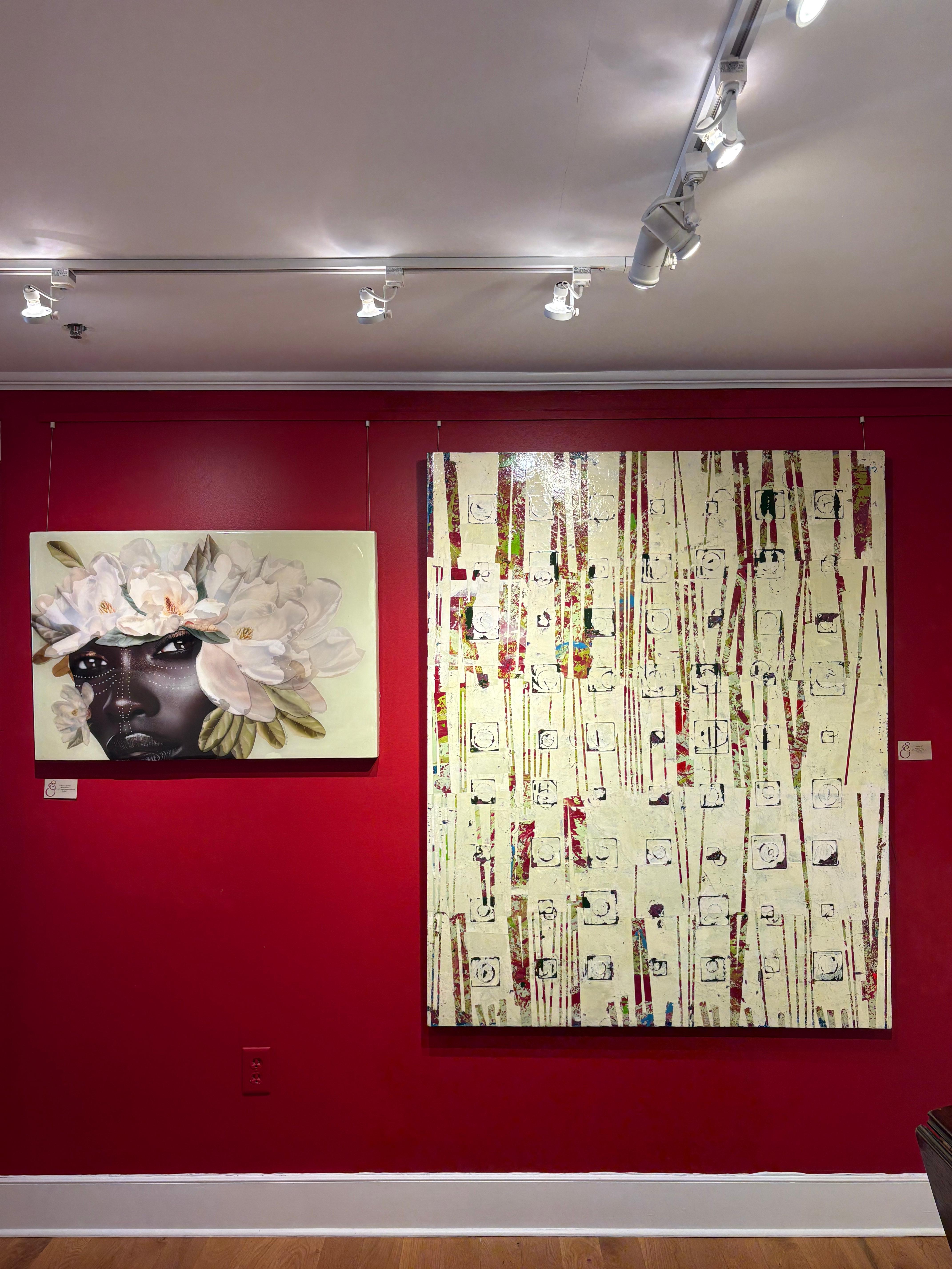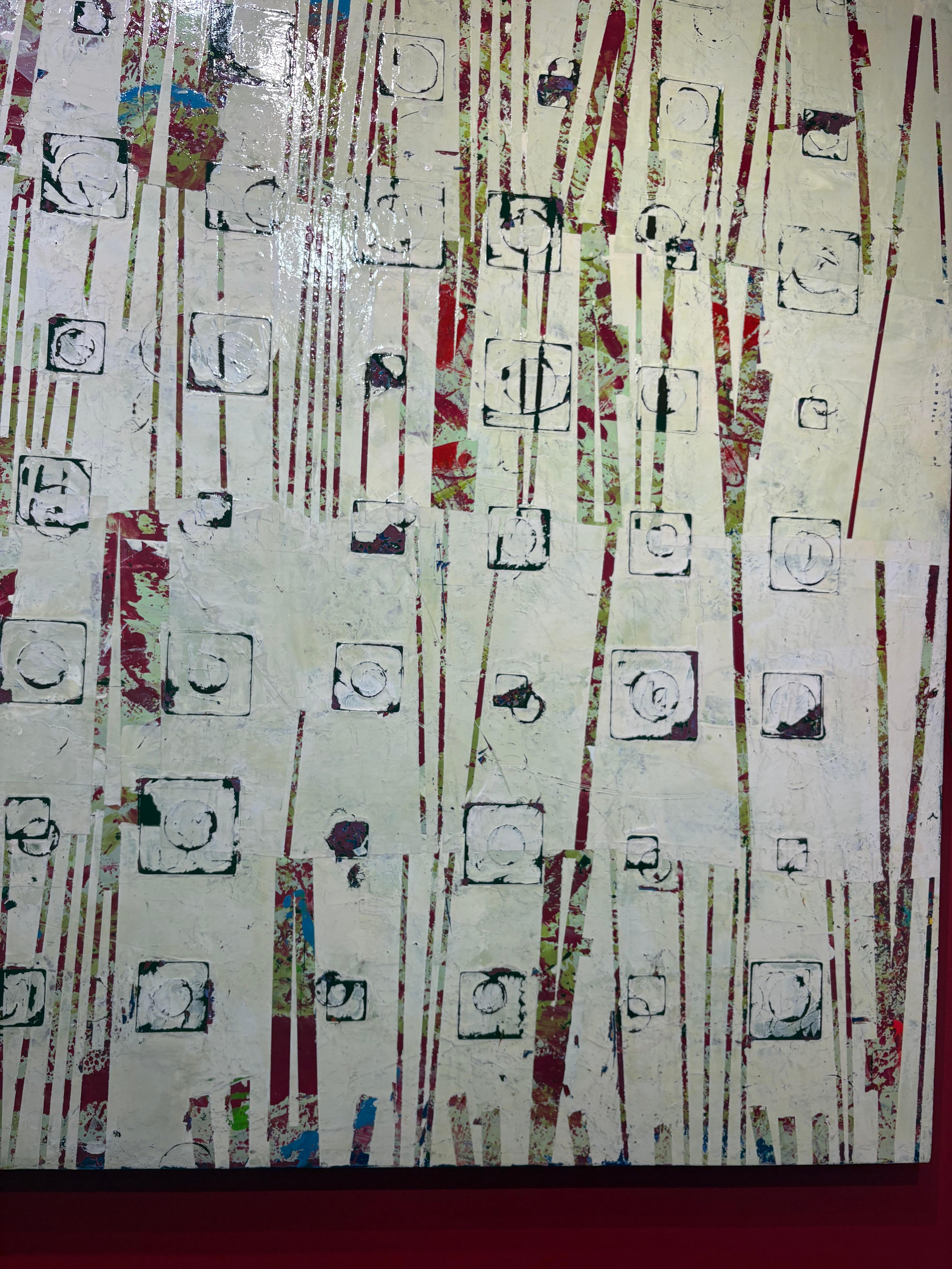 Gustlin draws on the legendary decades-long Bay Area Figurative Movement and creates abstract and representational art that explores Fibonacci mathematical theories. She works with acrylic paints, epoxy resins, wax, charcoal, graphite and more to create provocative mixed-media paintings that feature complex, dazzling patterns and rich swathes of color.