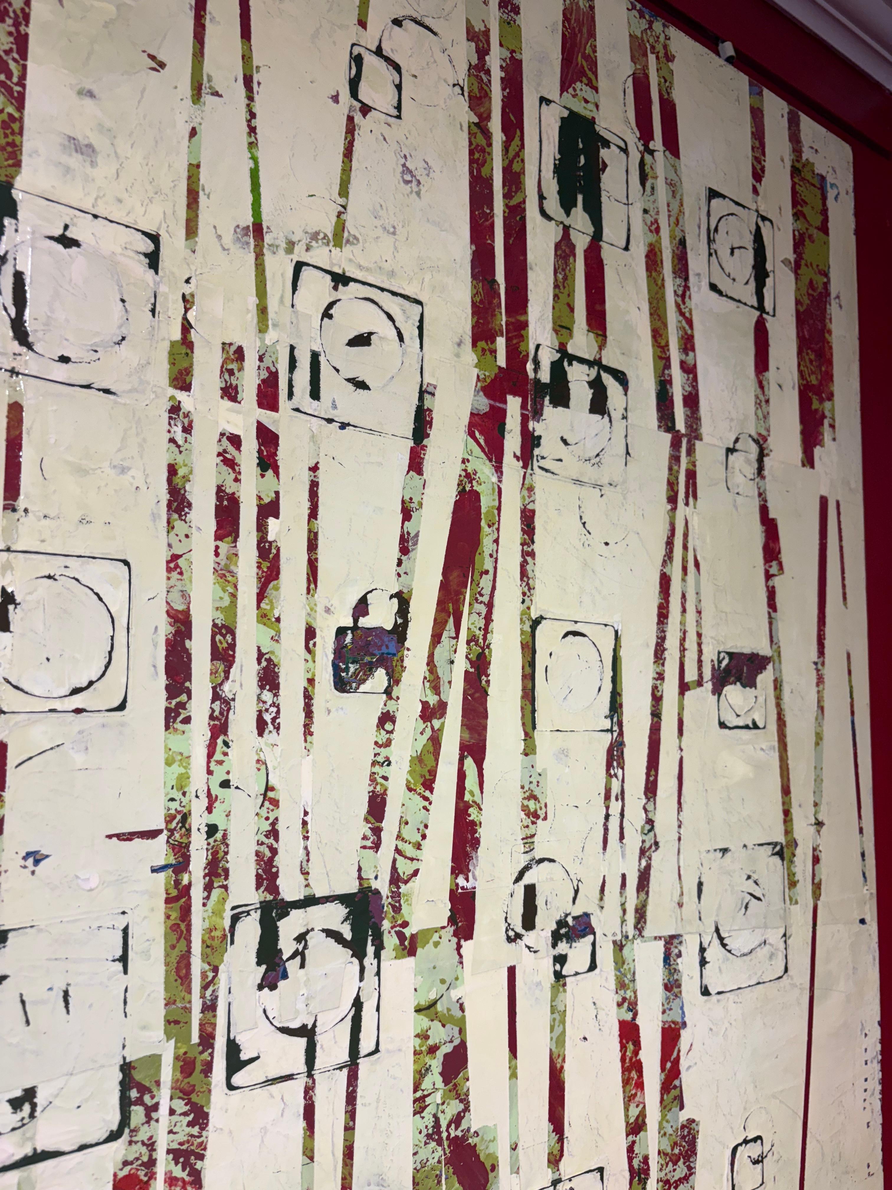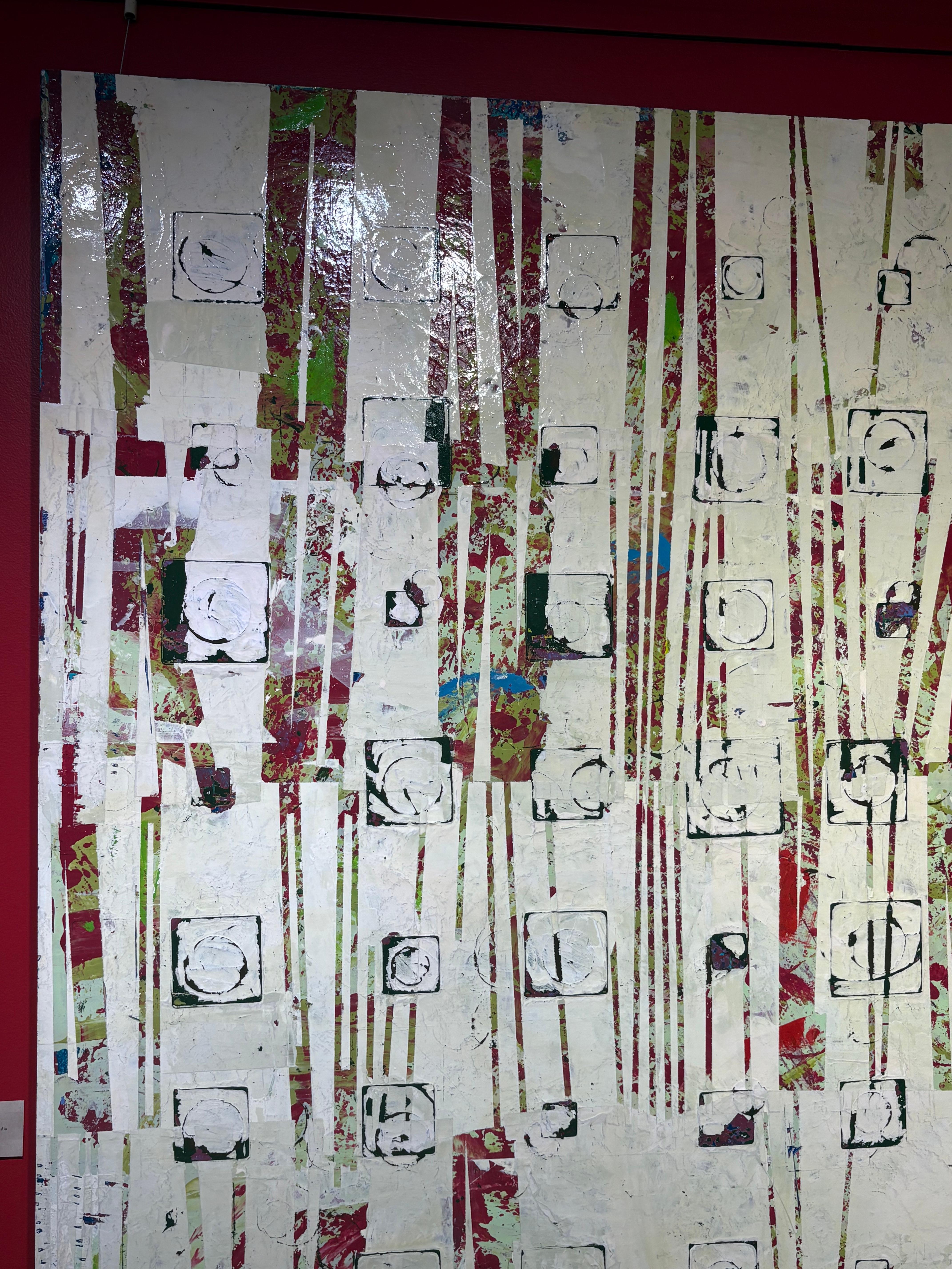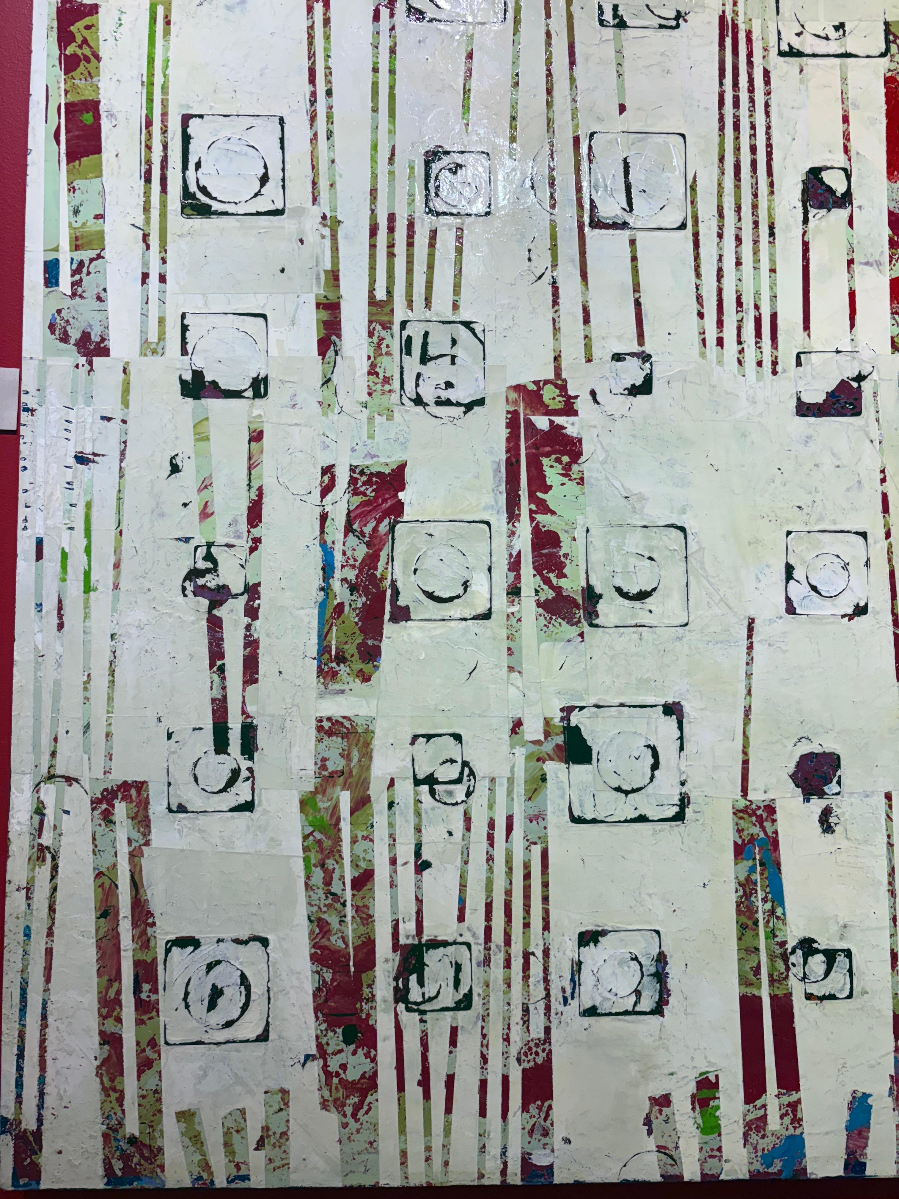 Jylian Gustlin"Entropy 39" Abstract mixed media painting in red, white and light green2019