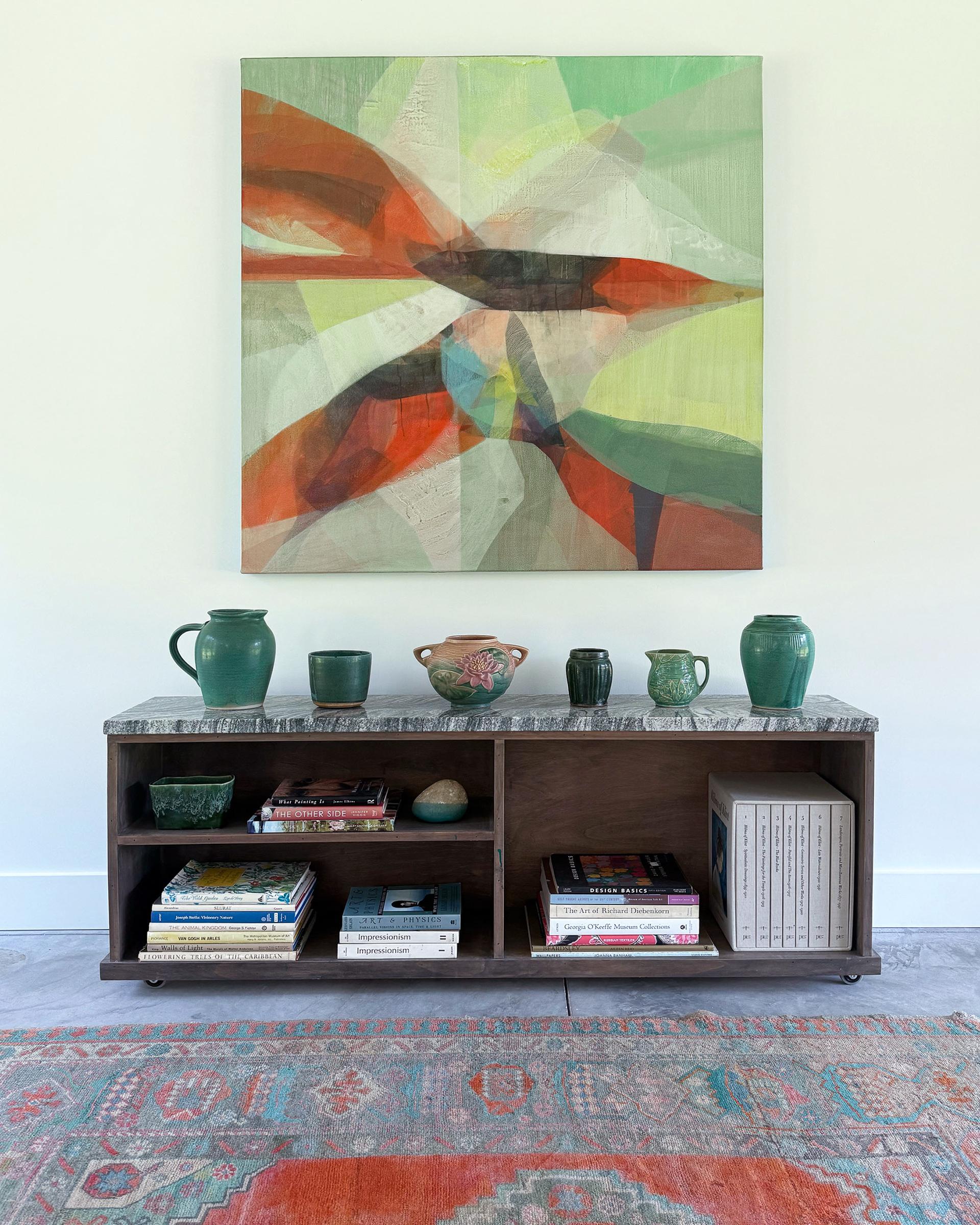 Katherine Sandoz is inspired by the work of Helen Frankenthaler, Richard Diebenkorn, Morris Louis Bernstein, Vincent Van Gogh, Willem de Kooning, Robert Motherwell and Neil Welliver. In recent years, she has created four-year-long projects of which a series called JUBILEE is the last. While painting both indoors and out, from life and photographs, with the JUBILEE series, Sandoz revisits favorite subjects and locations painting them again and again.
