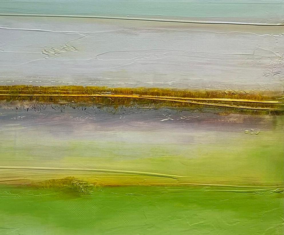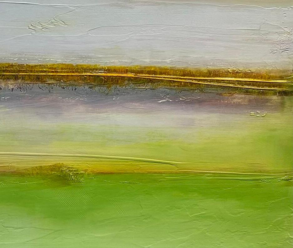 This painting, called Green Haze draws the viewer in, evoking a sense of calm and peace. The soothing textures, soft mounds of pale greens and hazy blues are reminiscent of hills in ...