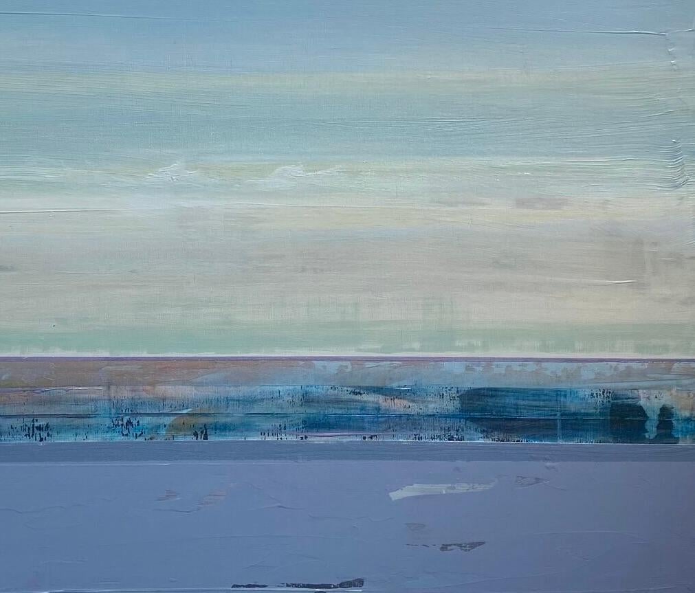 "Pacific Ocean Park" evokes the soft expanse of sea and sky through gentle transitions of blue, lavender, and pale sand. Horizontal layers flow seamlessly across the canvas, suggesting horizon, mist, and reflection in a meditative rhythm. The surface is subtly textured, with blended hues that dissolve into one another, creating an atmosphere of quiet openness. This work captures the serene essence of coastal light—calm yet deeply luminous. With its refined abstraction and tranquil palette, it brings an elegant sense of stillness and space to any setting.