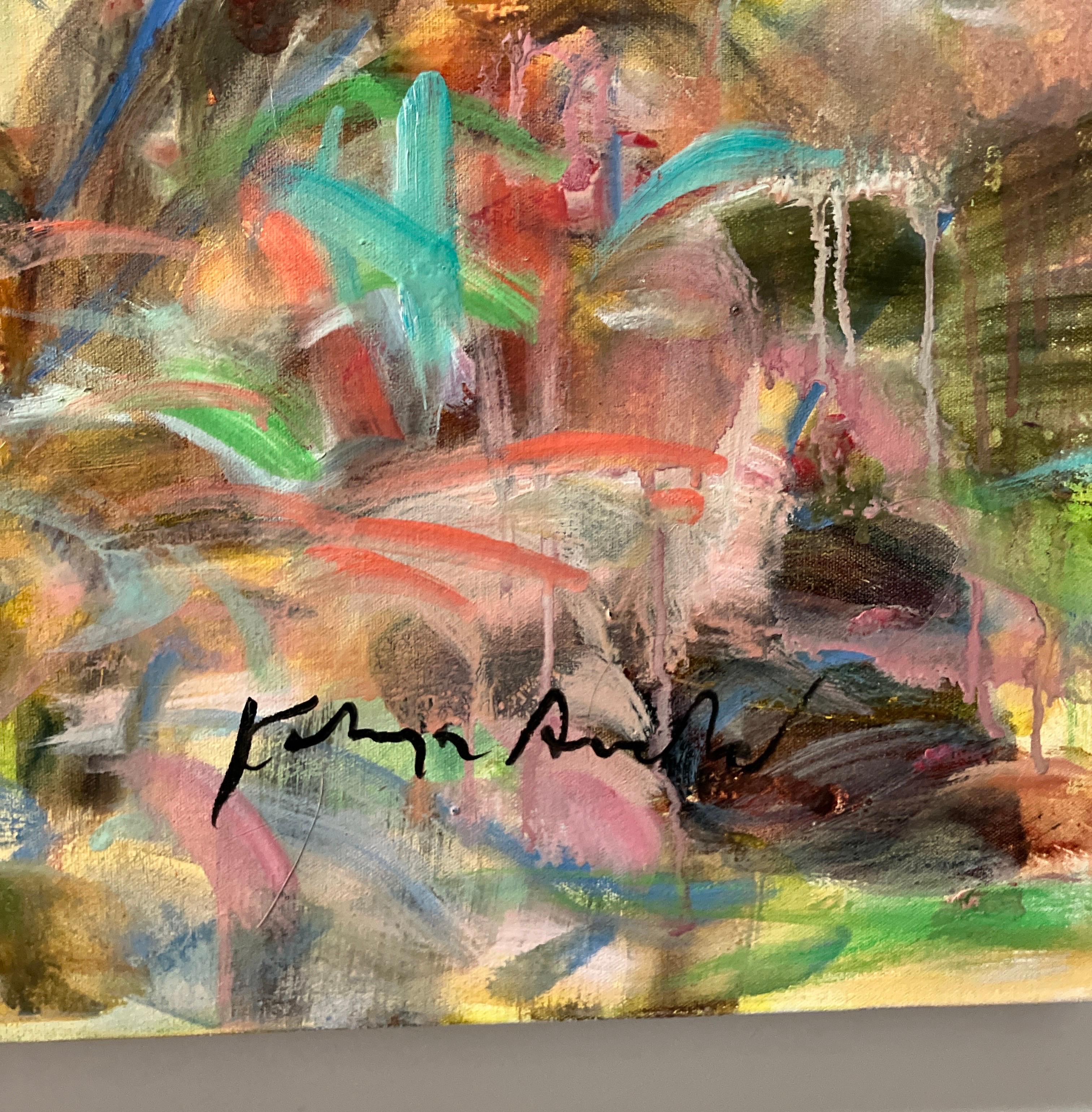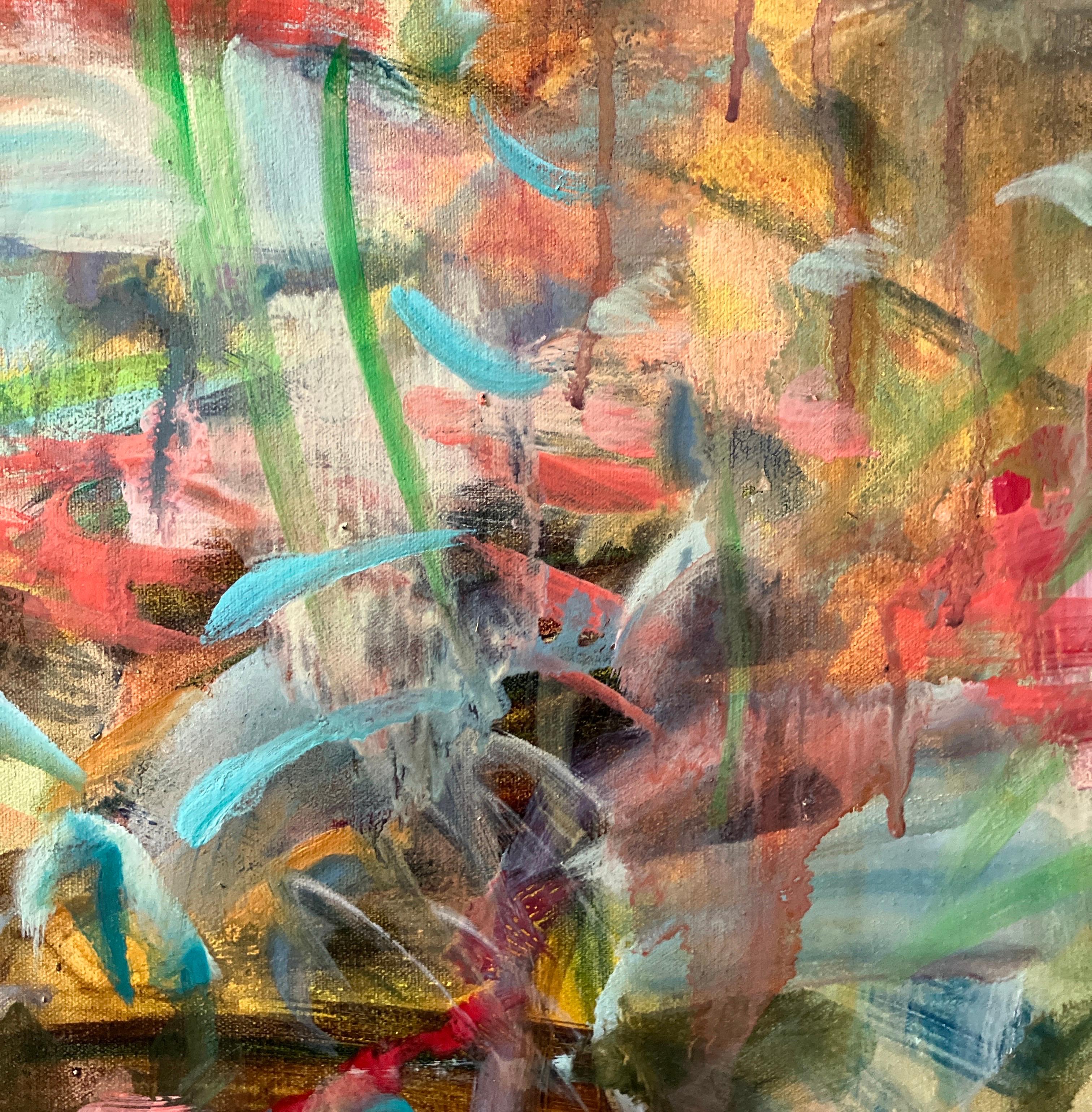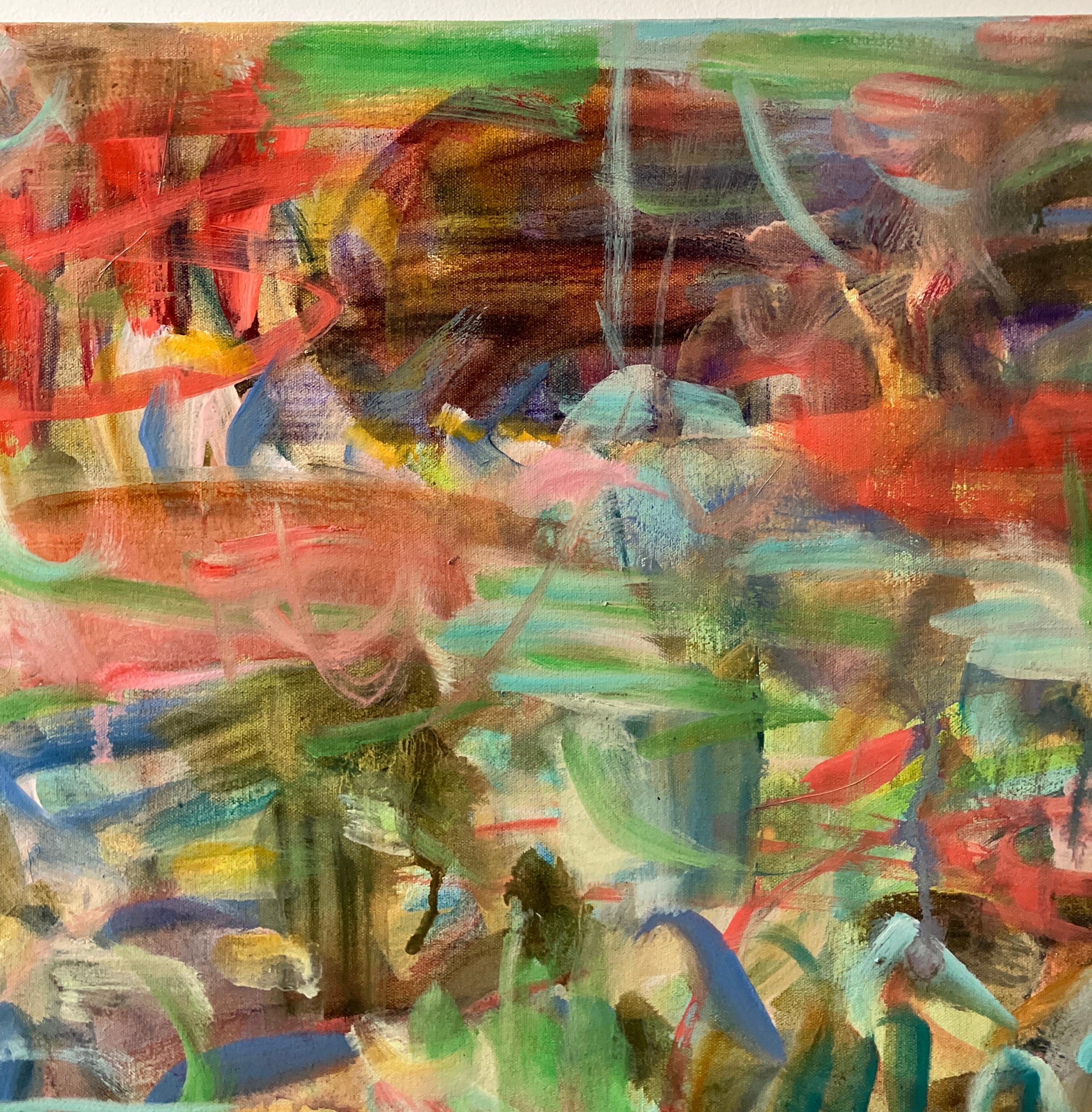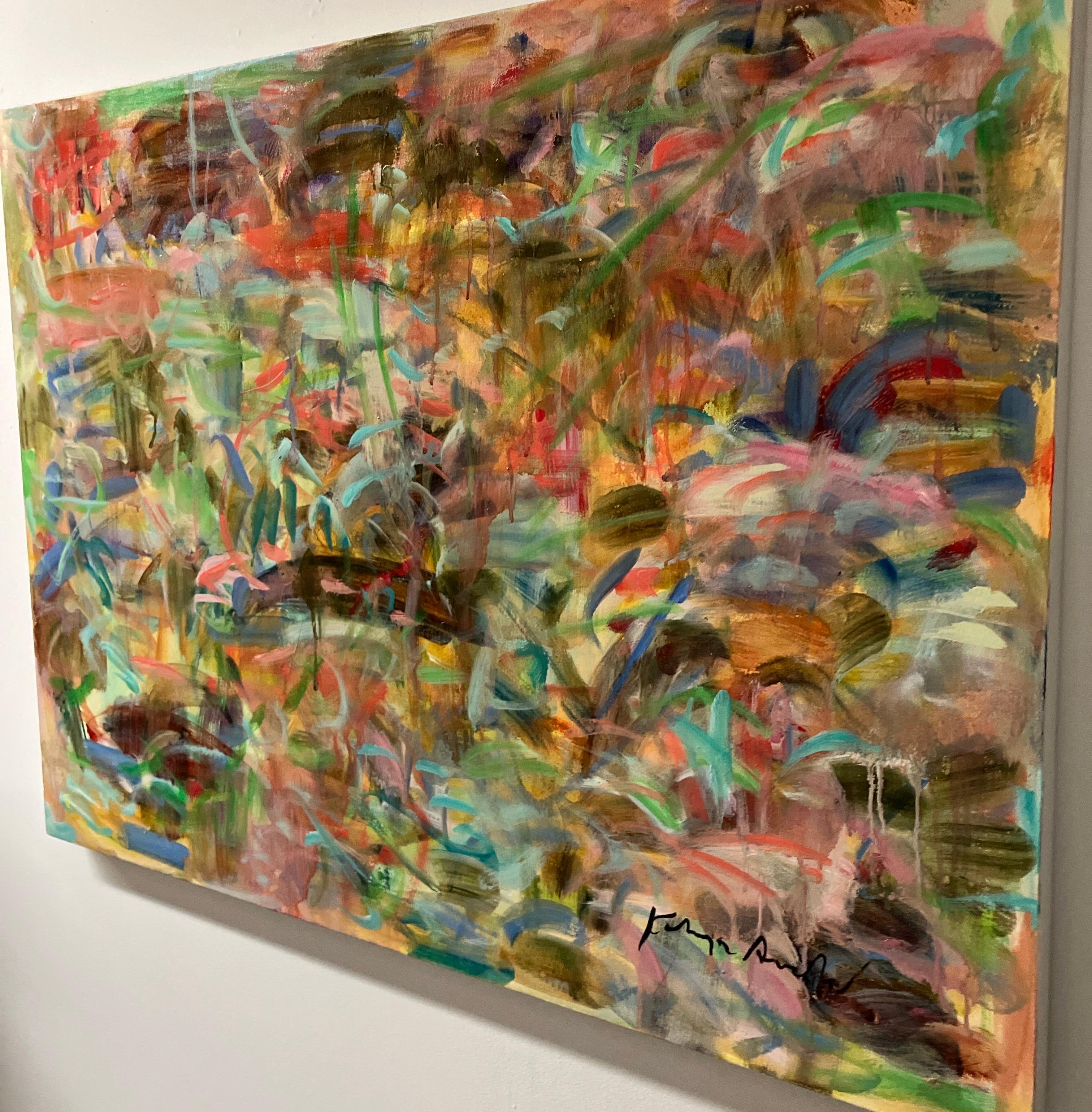 "After Urbana #3", brightly colored abstract oil painting on canvas