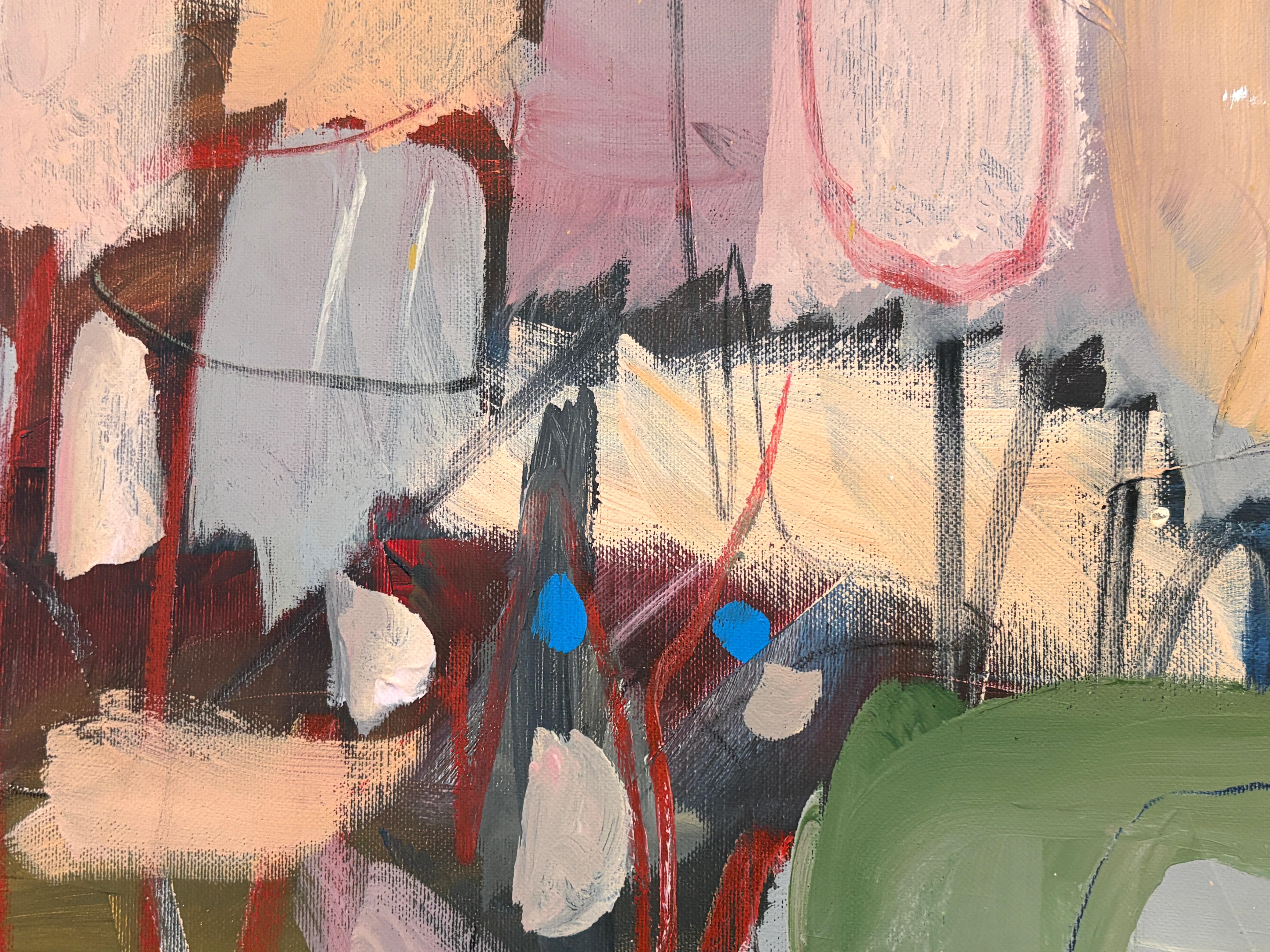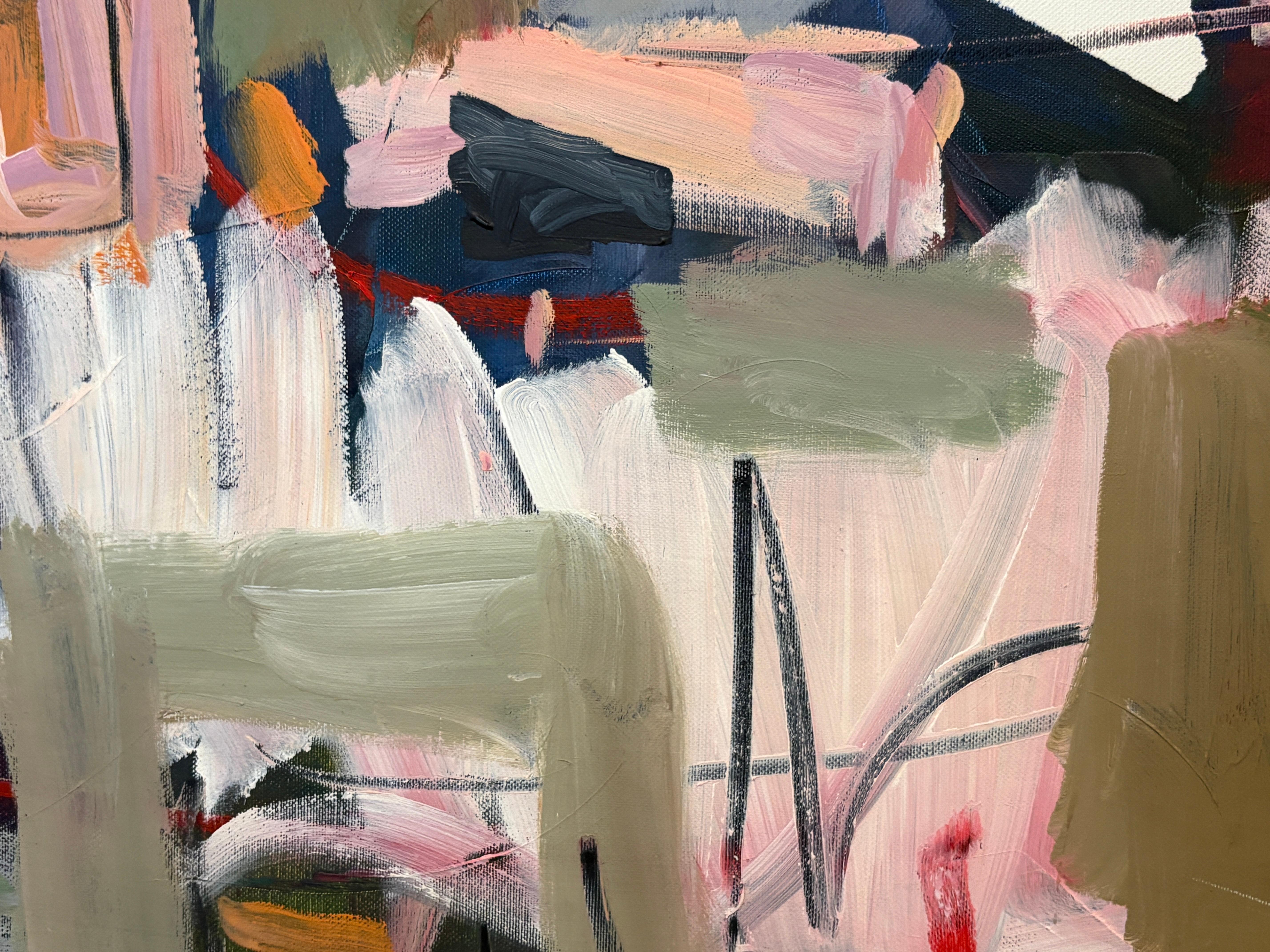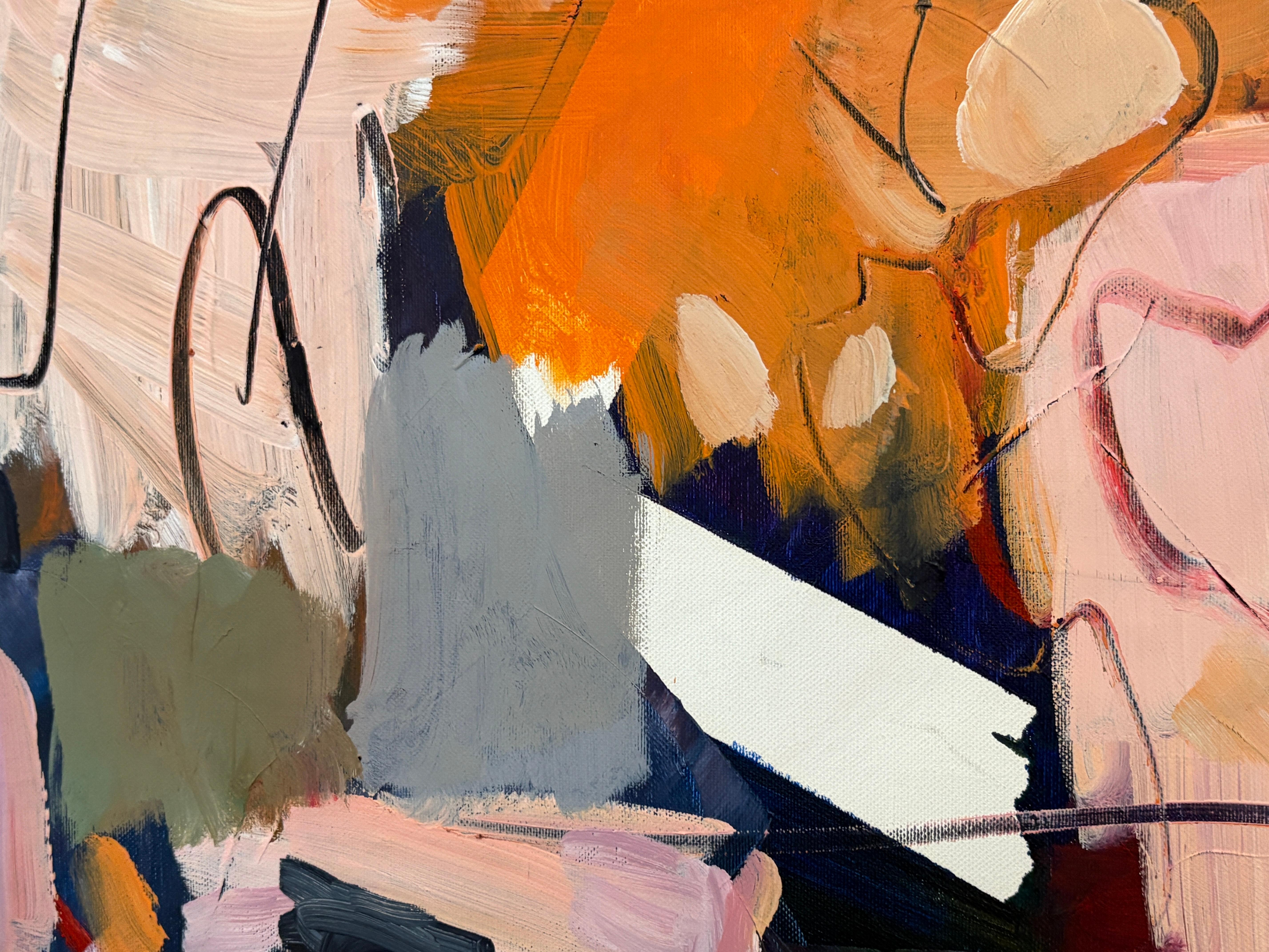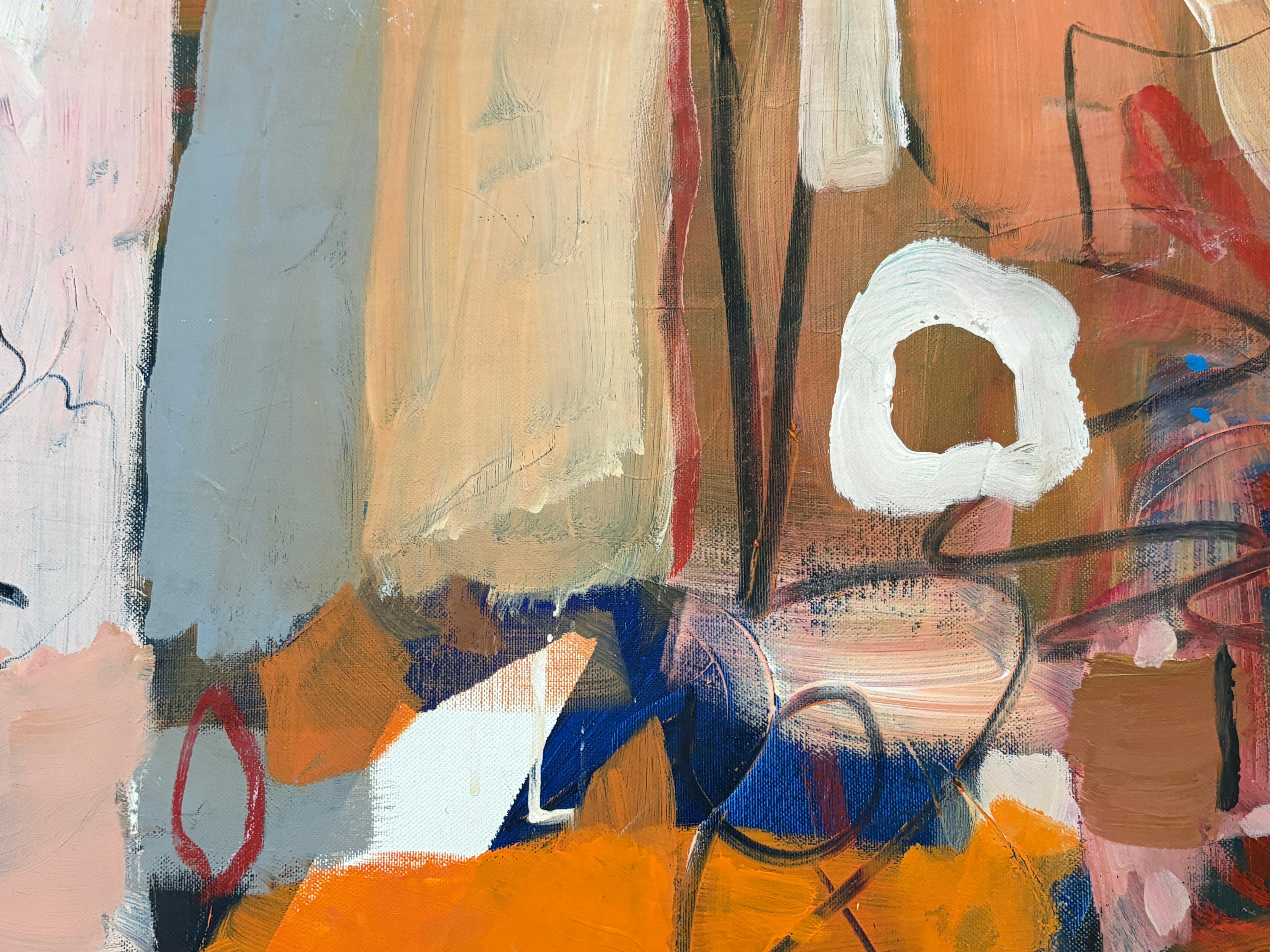 “Autumn Rhythm,” by contemporary artist Kobi Raz, captures the poetic energy of seasonal change through a vibrant, layered abstract composition. Warm tones of ochre, blush, and terracotta mingle with soft neutrals, sage greens, and touches of blue to create a visual symphony that feels alive with rhythm and emotion.