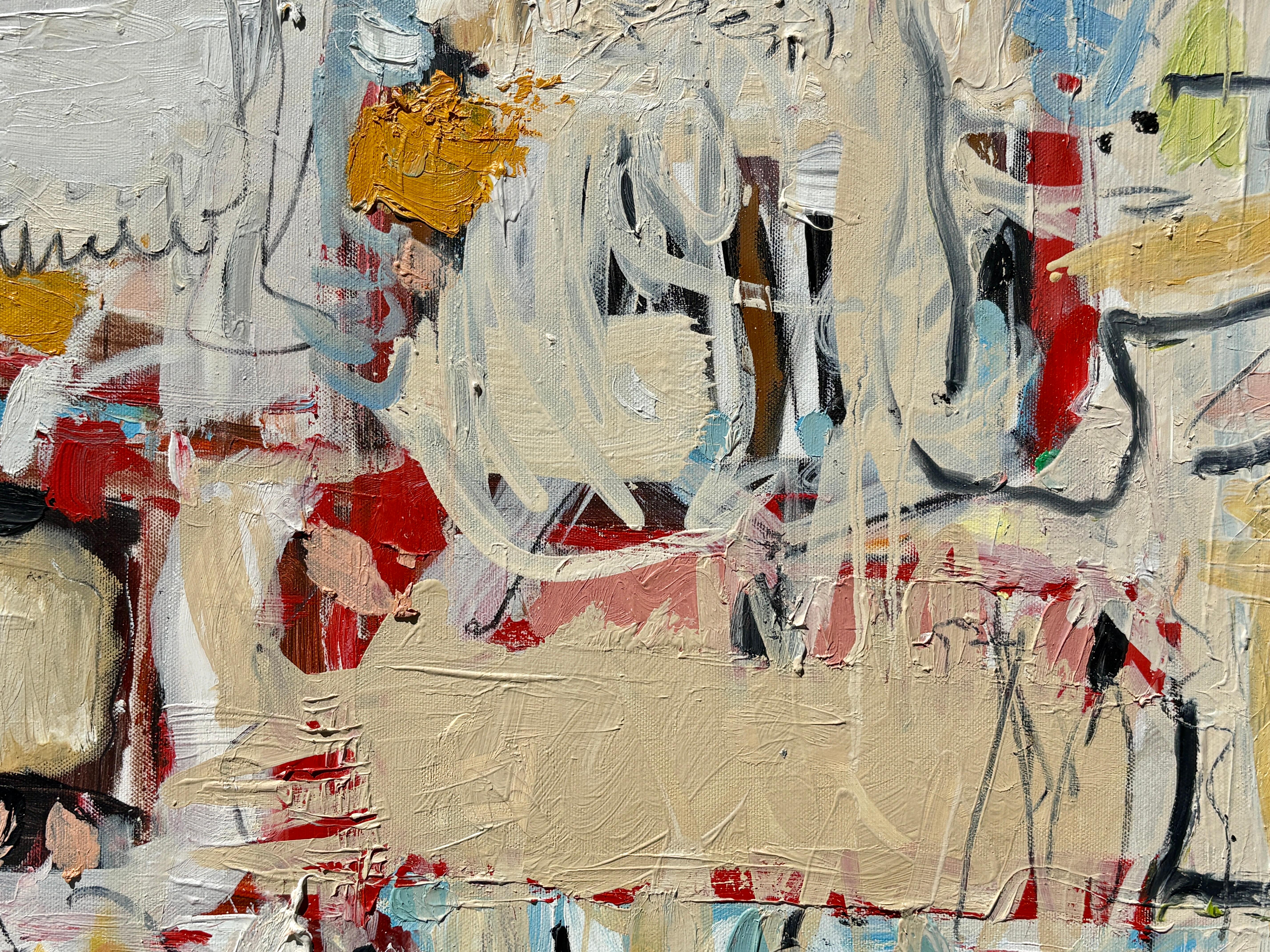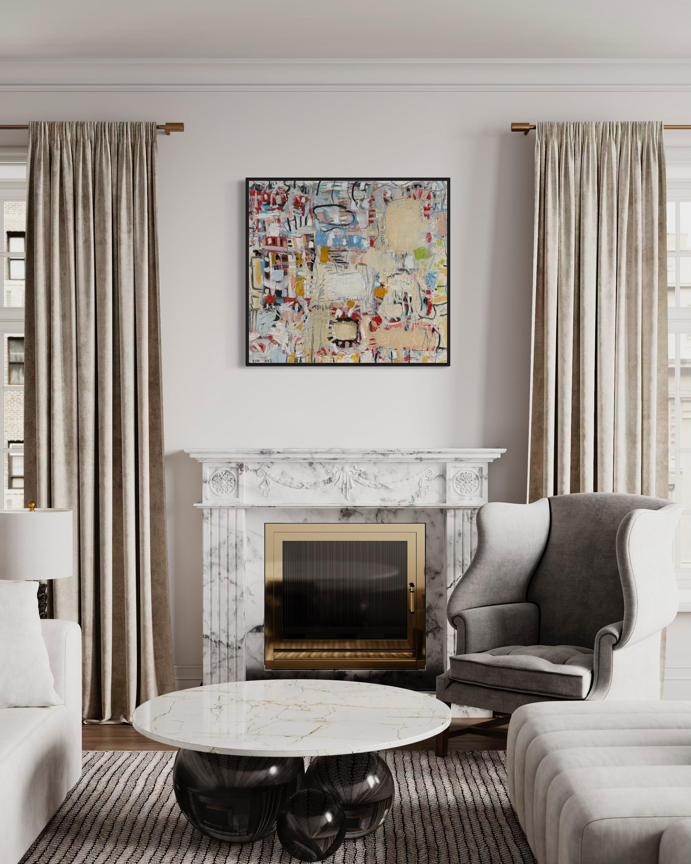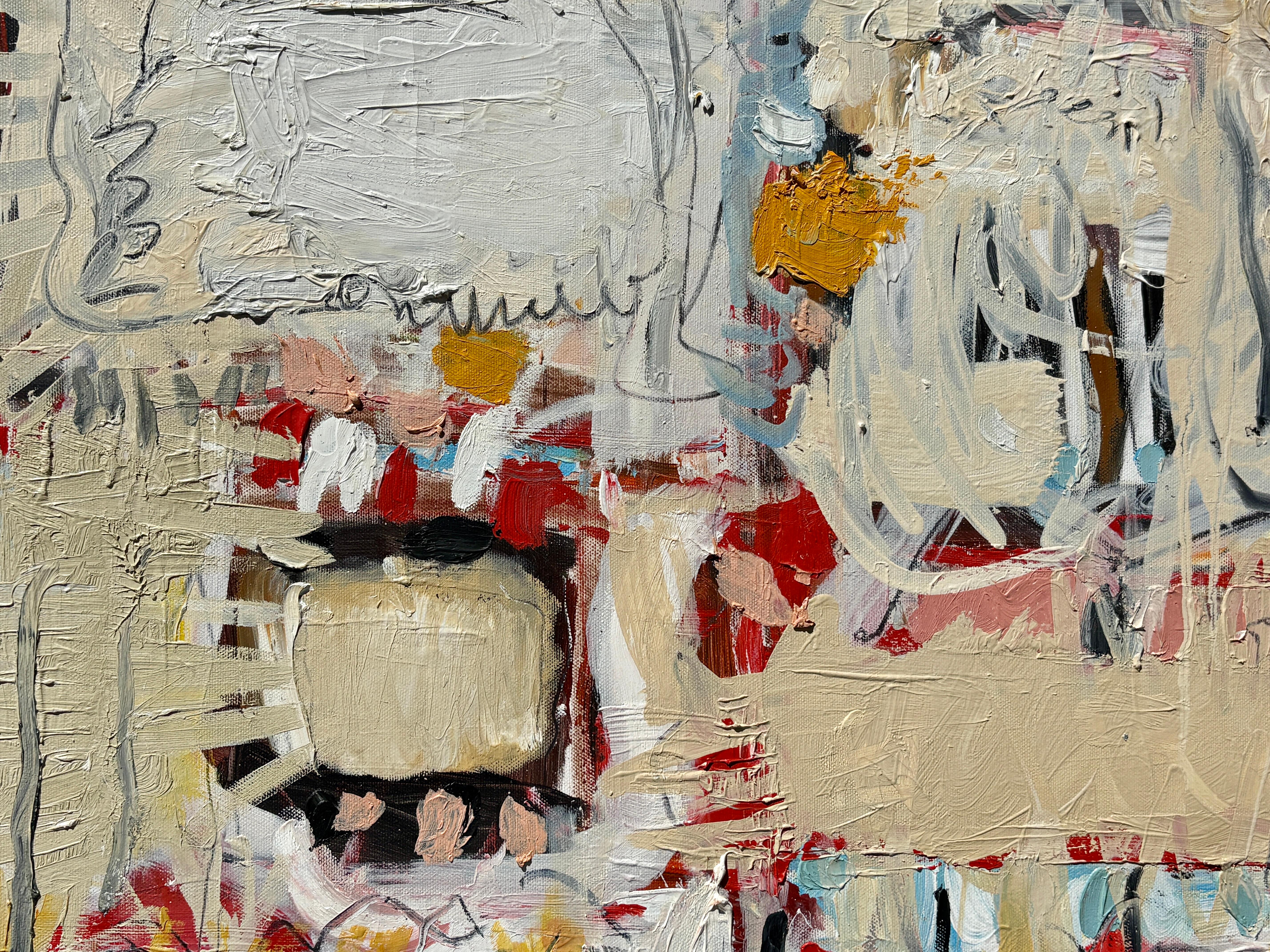 This original abstract painting by Kobi Raz evokes the layered beauty and mystery of a desert landscape. Through a masterful interplay of texture, gesture, and color, Raz builds a visual language that feels both spontaneous and deeply rooted in place. Earthy tones of sand, clay, and sunbaked ochre mingle with touches of red, black, and soft blue, like remnants of wind, stone, and distant horizons. The surface is richly worked, its layered brushstrokes and scrawled lines suggesting weathered textures, shifting light, and the quiet rhythm of nature meeting human expression.