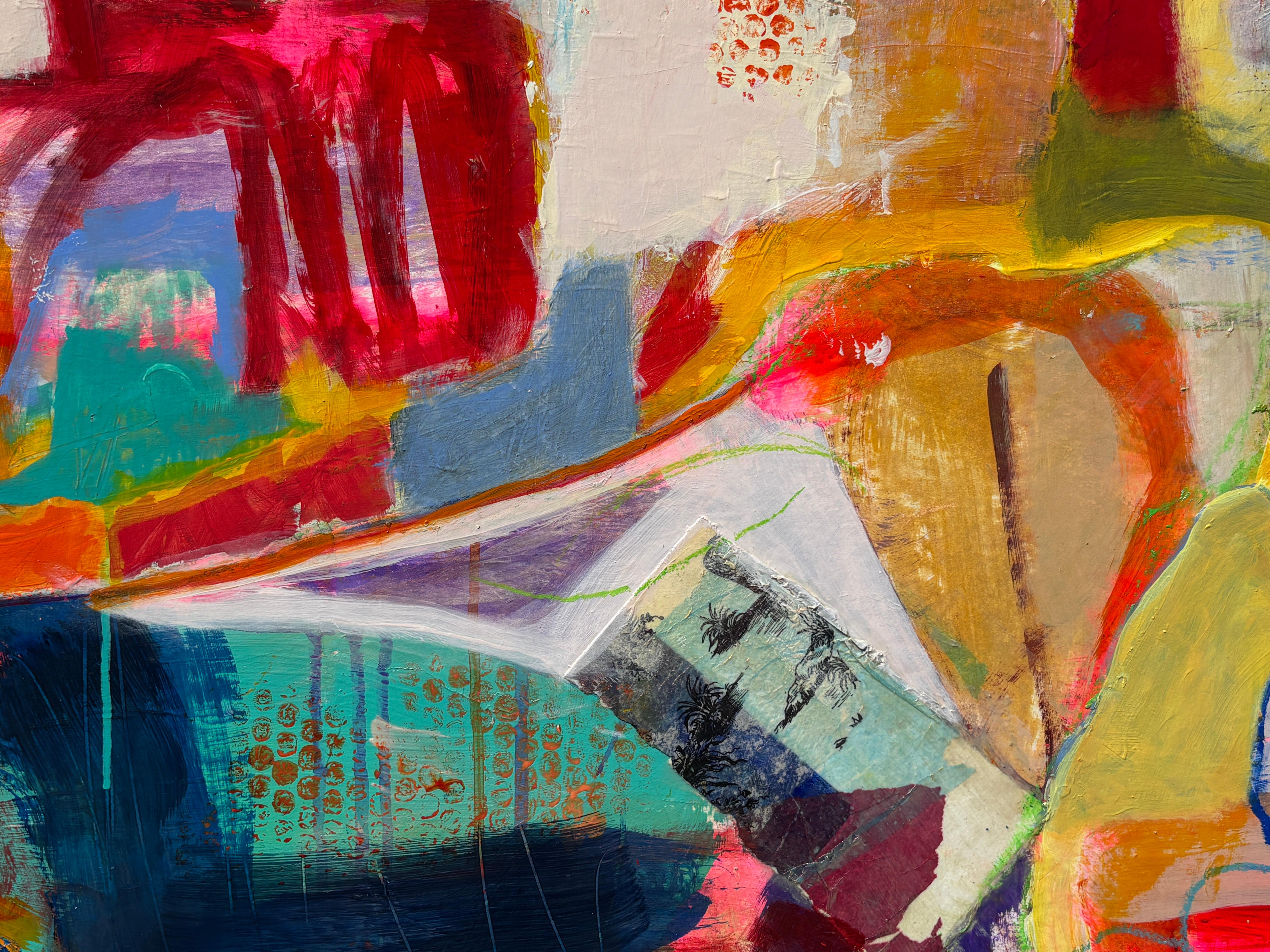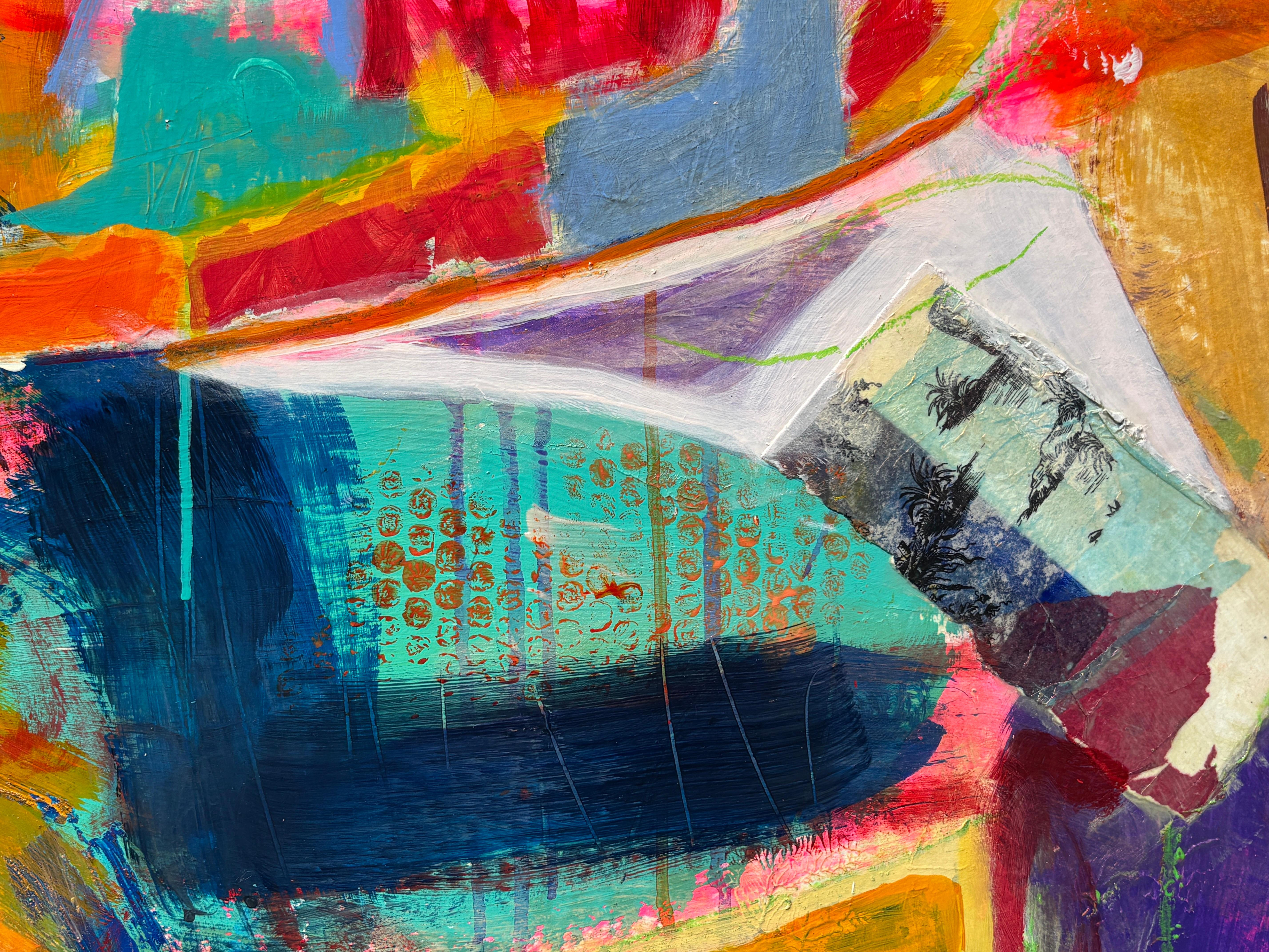 Acrylic paint, Glue, Paper, Collage, Mixed Media, Wood Panel