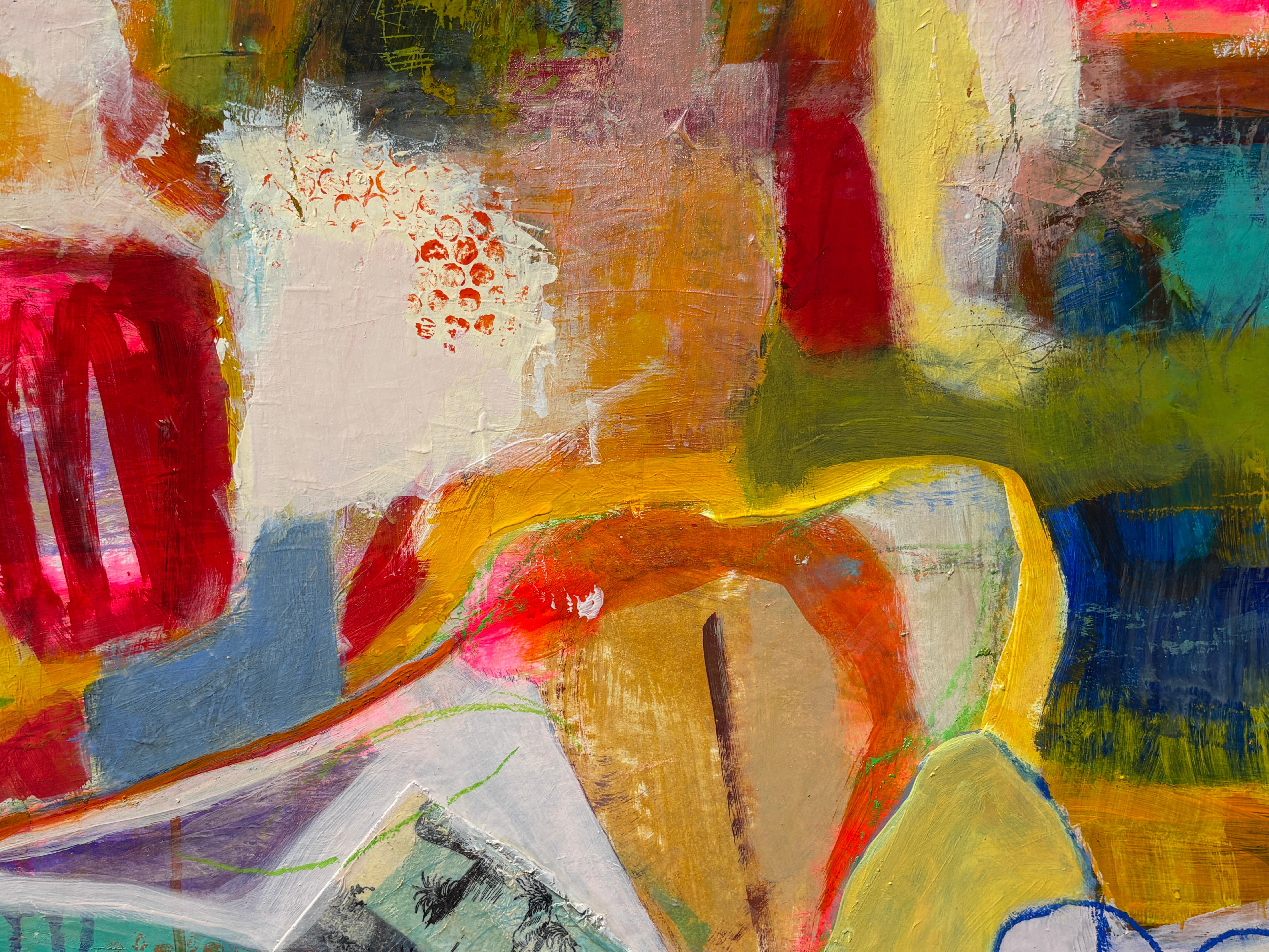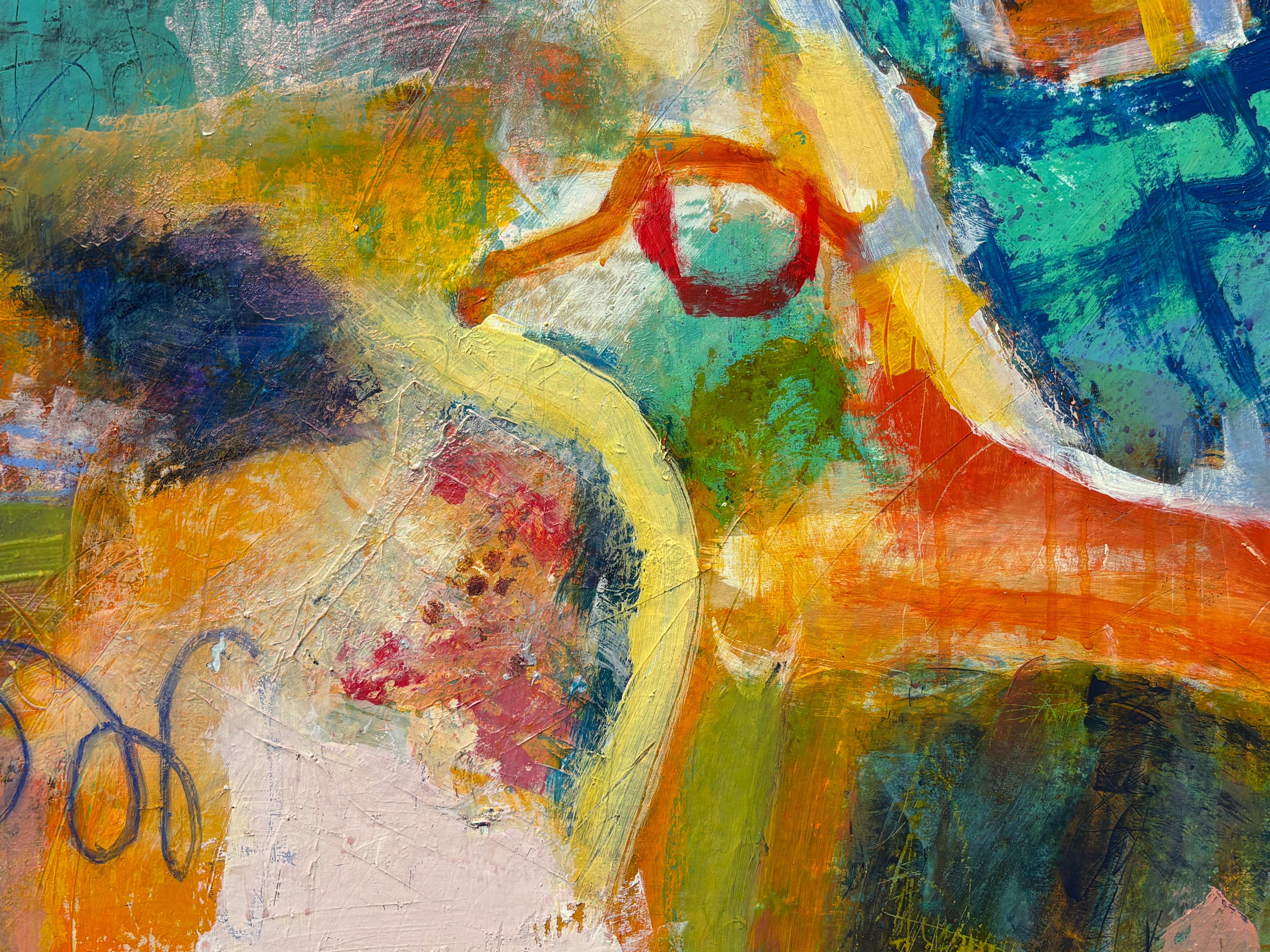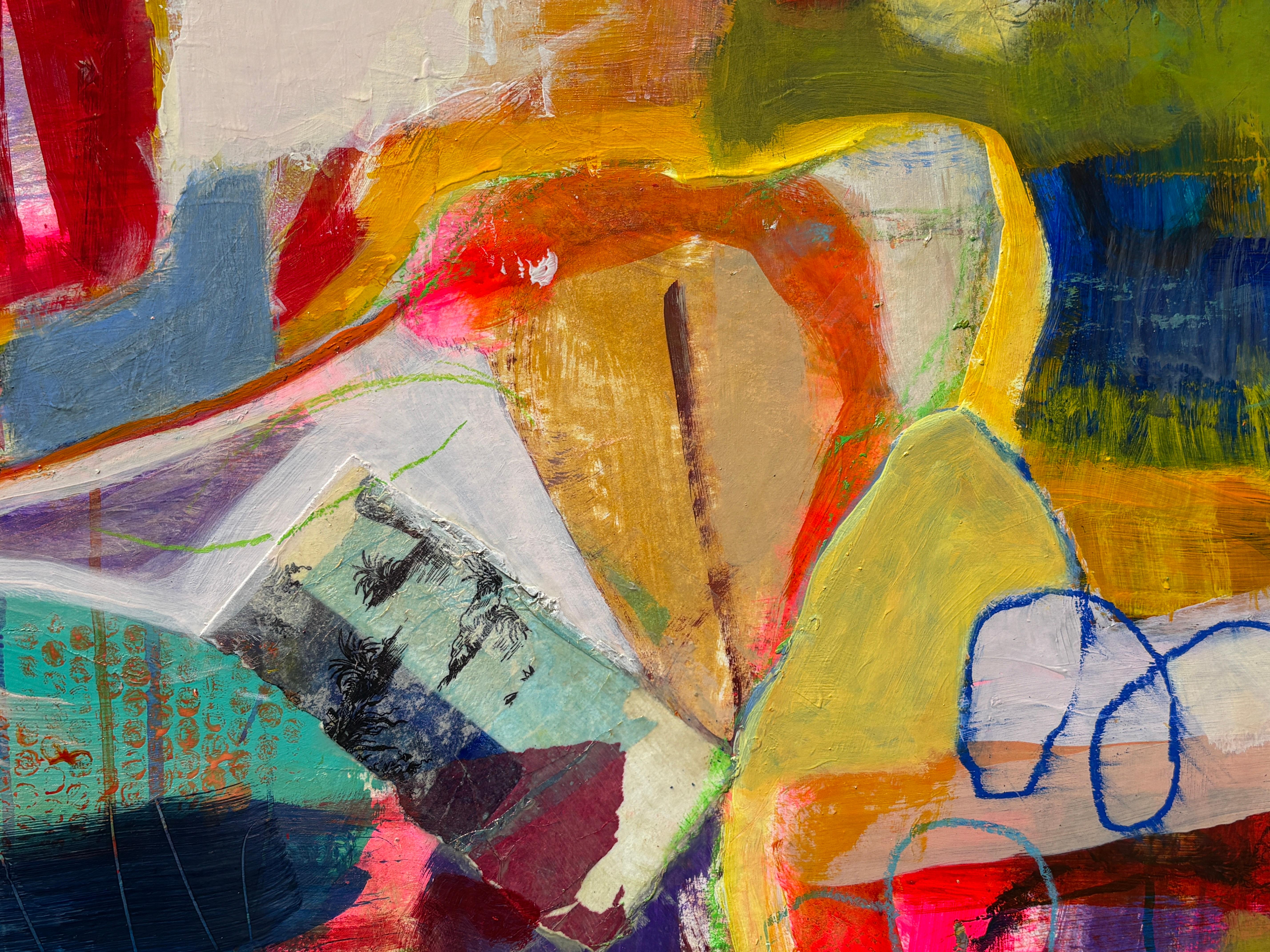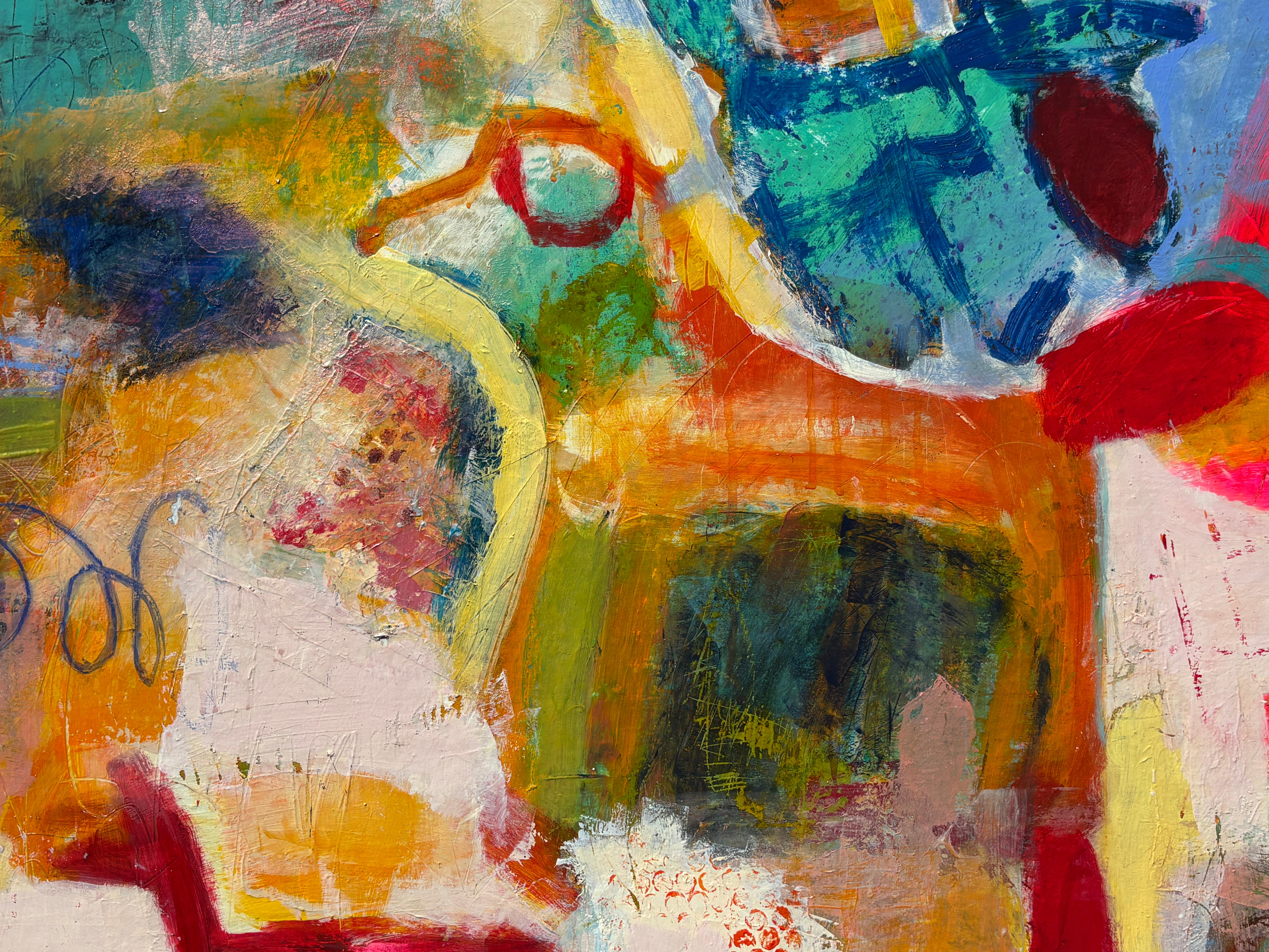 colorful contemporary abstract pastel mixed media expressionist busy signed