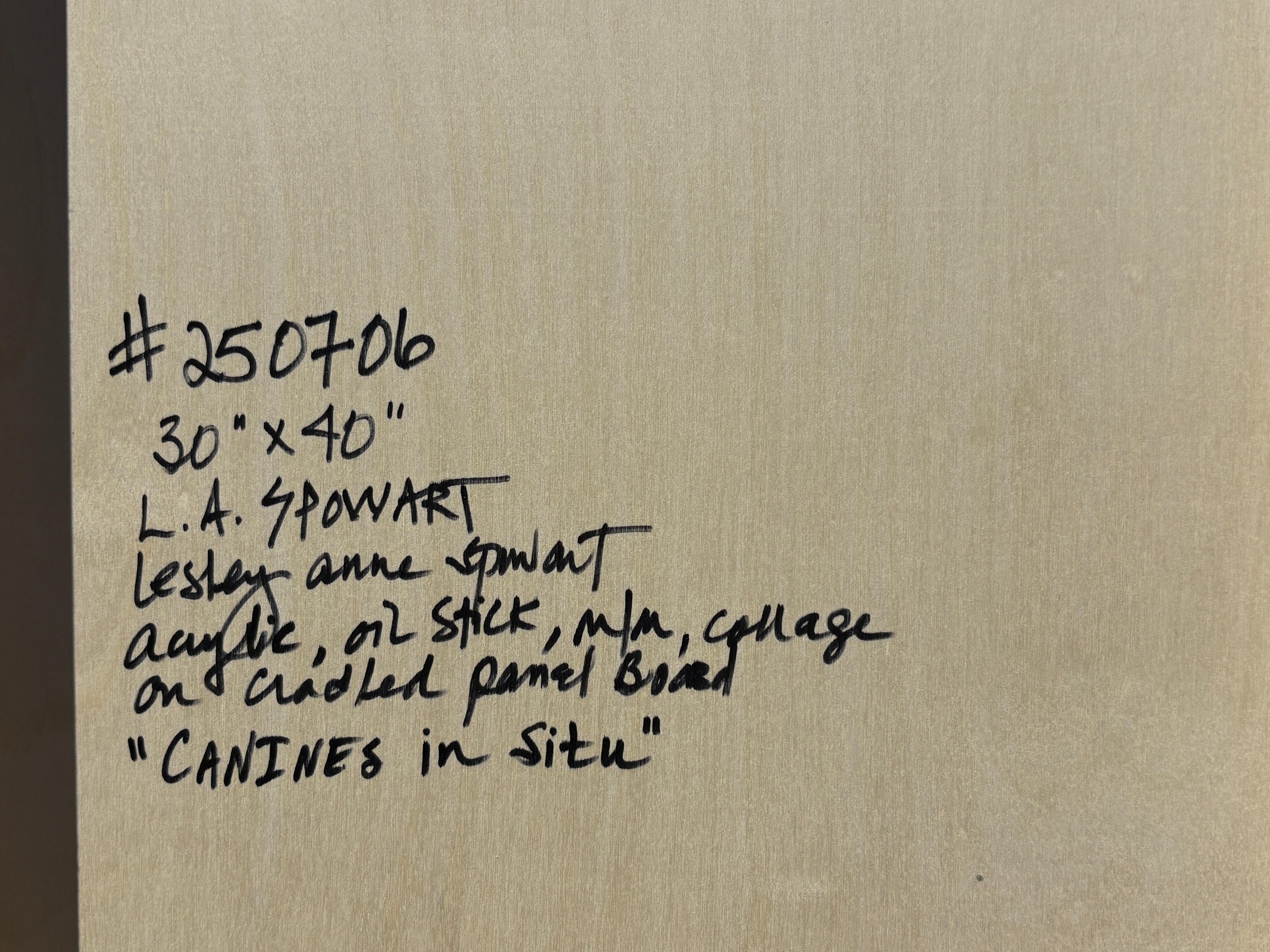 Lesley Anne Spowart"Canines in Situ" - Bright Colorful Contemporary Mixed Media Dog Abstract Art2025