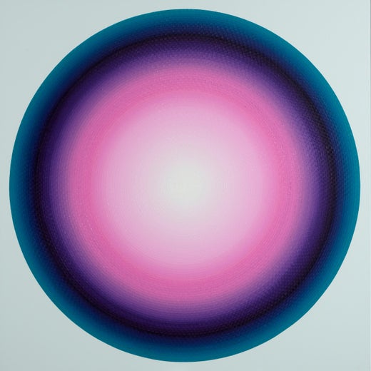 Piffeteau’s abstract practice explores the diffusion of light and the creation of optical effects by combining simple, universal geometric forms (circles, squares, triangles, etc.) with carefully modulated colour transitions in oil paint. The outcome is a work of compelling vibrancy, immersing the viewer in pure aesthetic contemplation and offering a singular, subjective sensory experience.