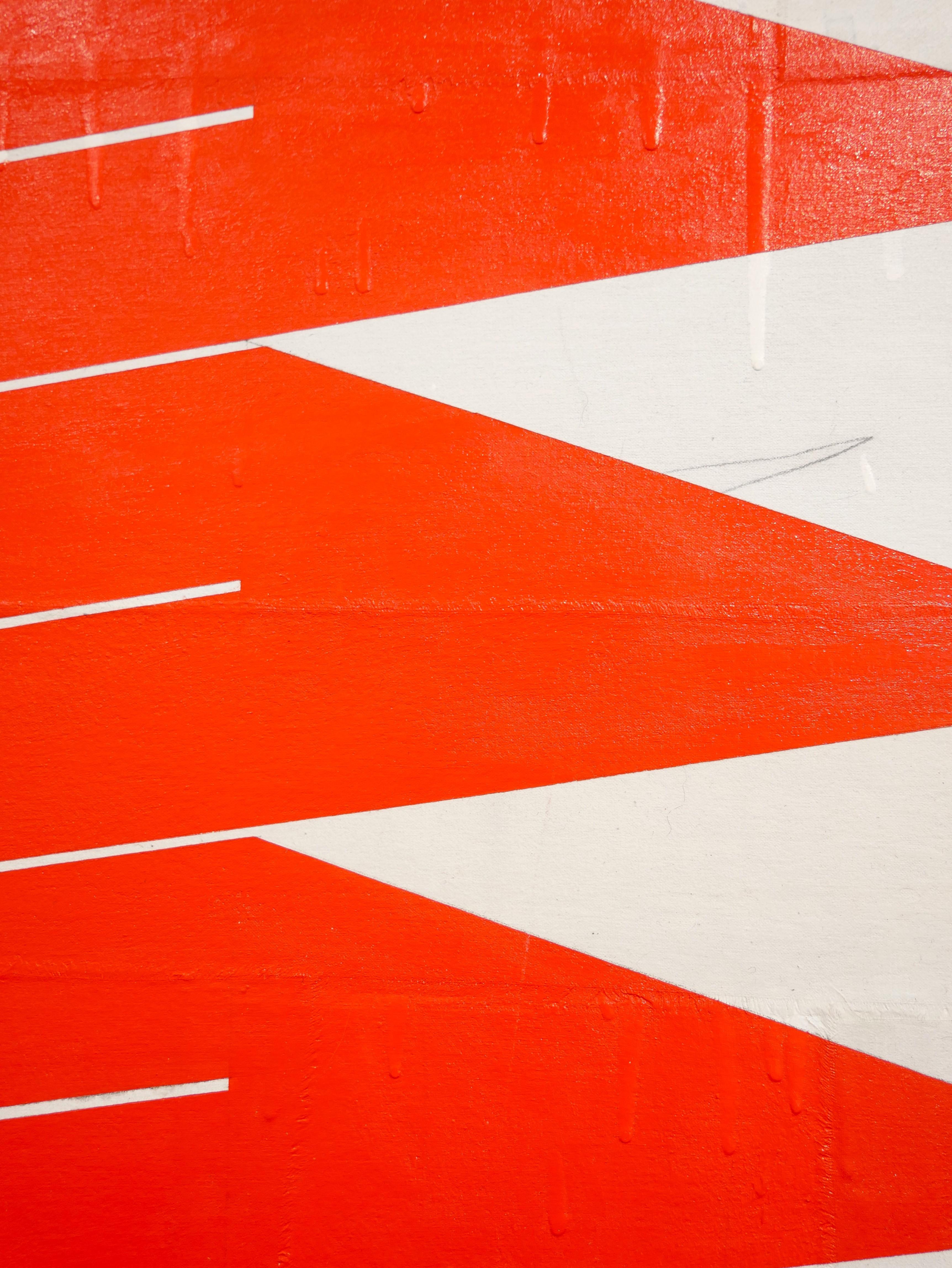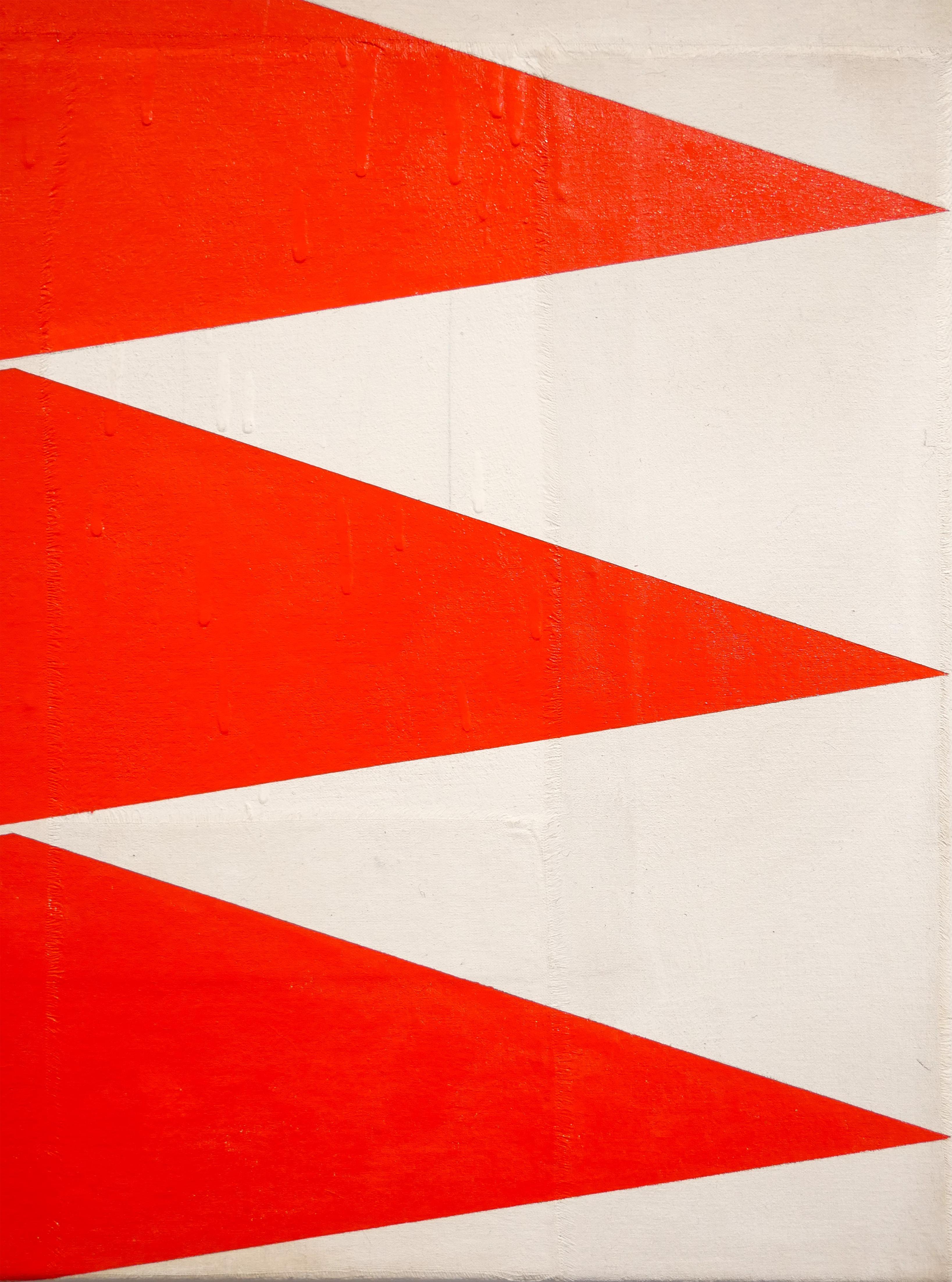 "Spark" Contemporary Colorful Yellow & Red Geometric Hard-Edge Abstract Painting