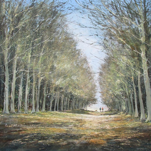 An original mixed-media painting by Michael Sanders. 90 x 90 cm deep edge canvas painted around the edges and ready to hang. "This painting shows the promise of bright blue sky as the heavy clouds part after a storm. I aimed to capture the light and freshness in the air coupled with the joy of getting out and about after rain".