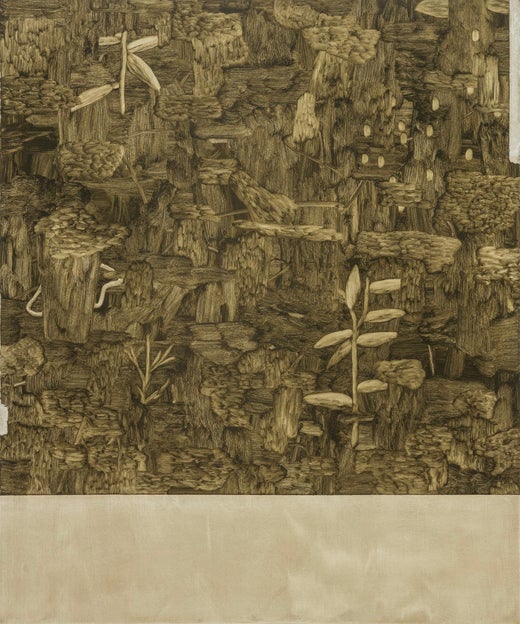Organic landscape painting, natural pigment with abstract shapes, conceptual art