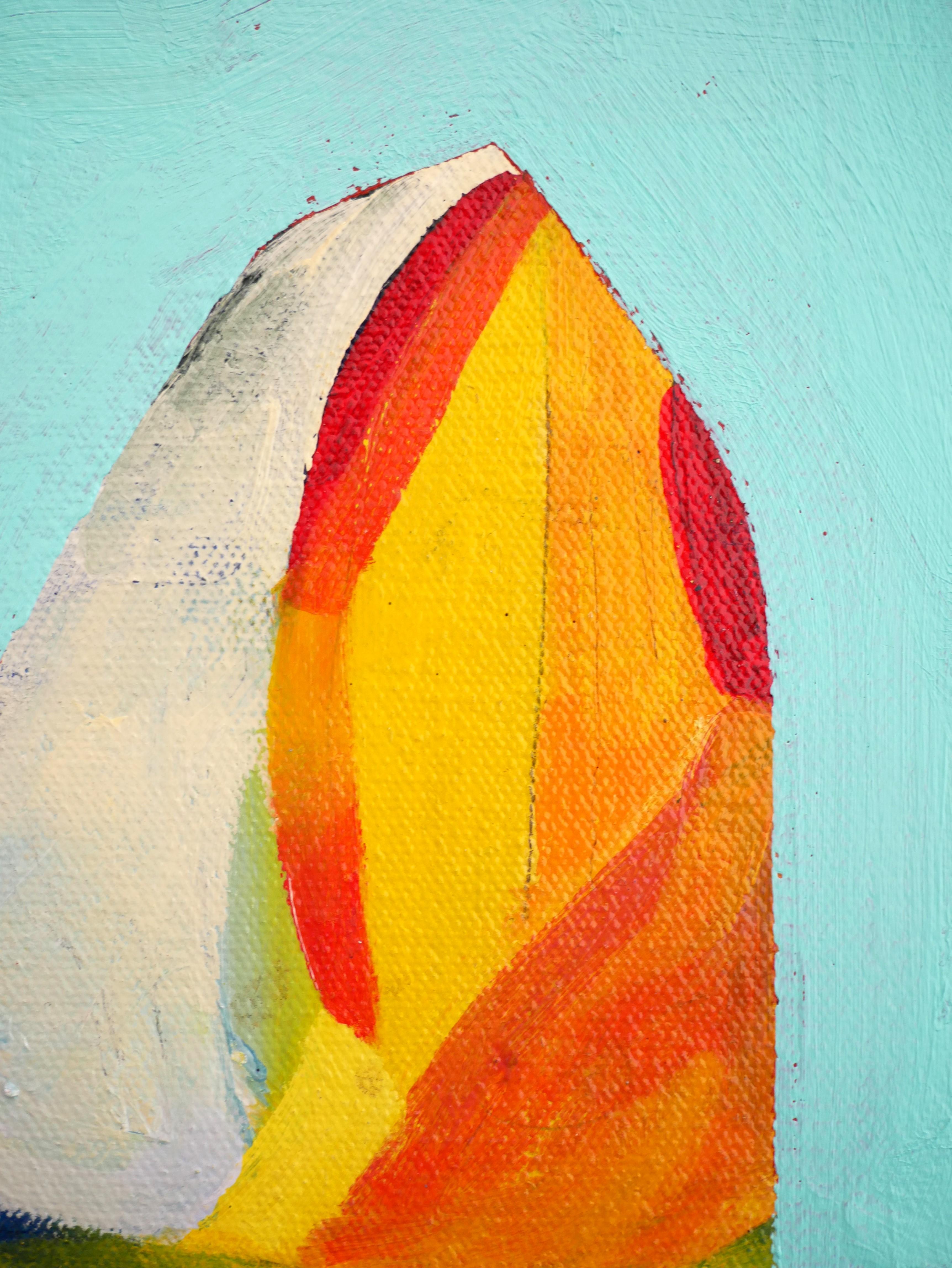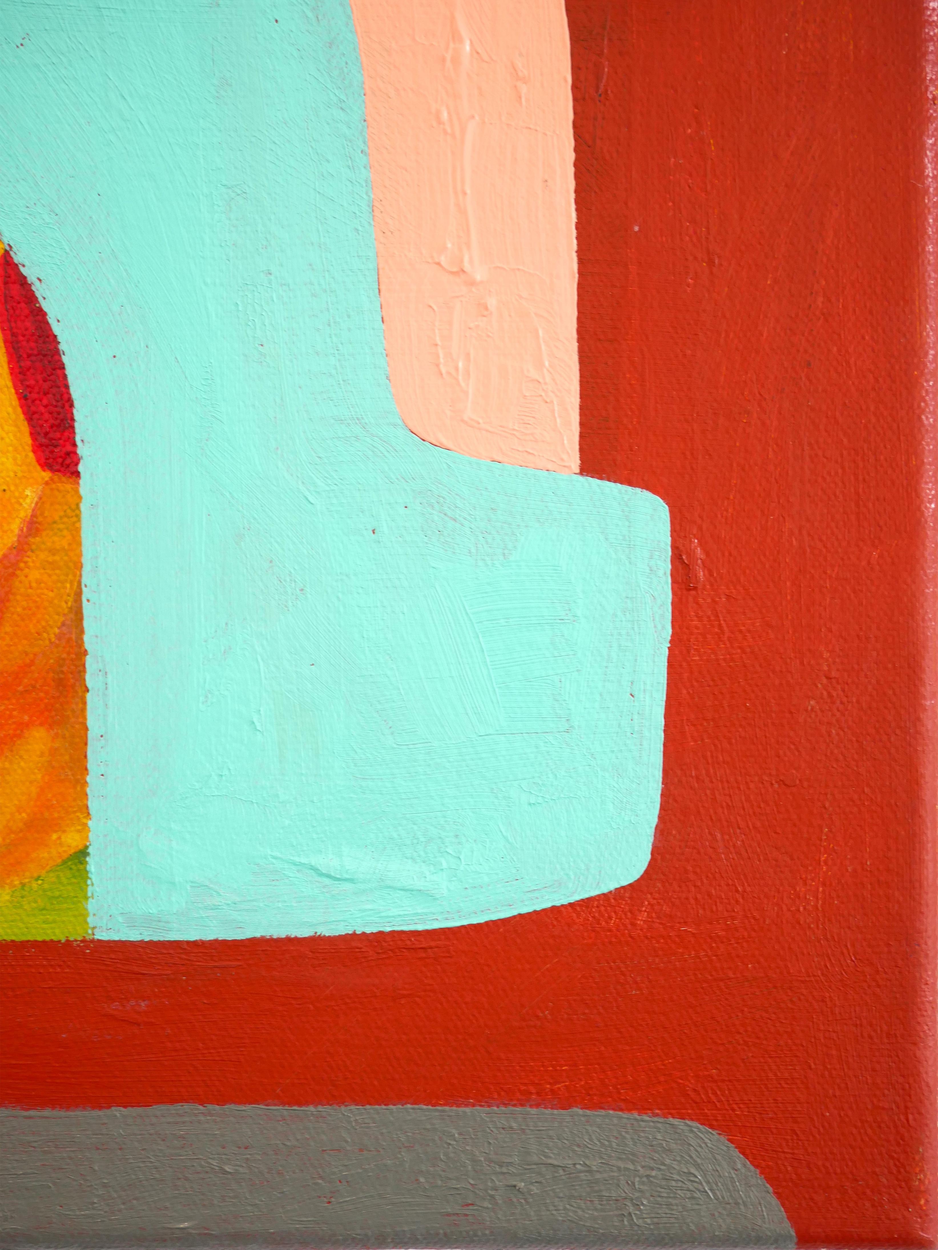 Peter Healy"Pool" Contemporary Colorful Red and Aqua Toned Abstract Geometric Painting2020