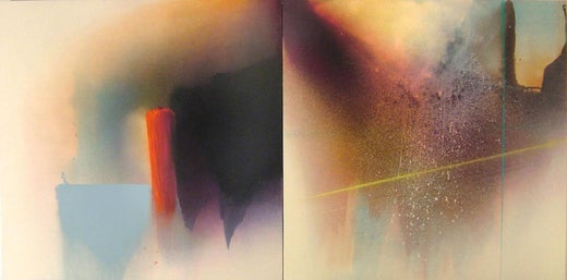 Spray paint, pencil, ink, watercolor on paper. Unframed.
