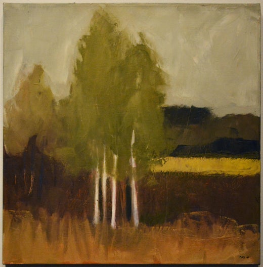Russell Sharon was born in 1948 in Randall, Minnesota. He later studied at the Universidad de las Americas in Mexico City from 1968-1972 and at the Massachusetts Institute of Technology (MIT) from 1973 to 1975. Sharon's paintings are most often horizontal works layered in two, three or four colors. They focus on the abstraction of natural landscapes, inspired by his iconic personal terrain, Minnesota's lake country: "I live on a farm, and my work is a reflection of that", says Sharon of his life-time home, located on the same family farm in Morrison County, where he grew up. Due to the artist's blocky deconstruction of the composition, a constant fixation on the horizon is the viewer's only clue to the subject matter. "In the fine line between abstraction and representation lies the possibility of capturing the response one feels". He sometimes includes hazy figural elements in his compositions- barely indicating the outlines of a field of grasses or a clump of trees- but that's about it. He has done many portraits of people in the various places where he has lived and worked, like the series 101 Faces, one hundred paintings exhibited as a group to reflect the spirit of his community. His work also includes abstract sculptures with metal and wood. Since the mid 1980's, Sharon has had work shown and celebrated in many solo and group exhibitions in the United States, Europe, and South America. He shares his life between Minnesota and the South Beach section of Miami, where he has an apartment, as well as a studio in the South Florida.