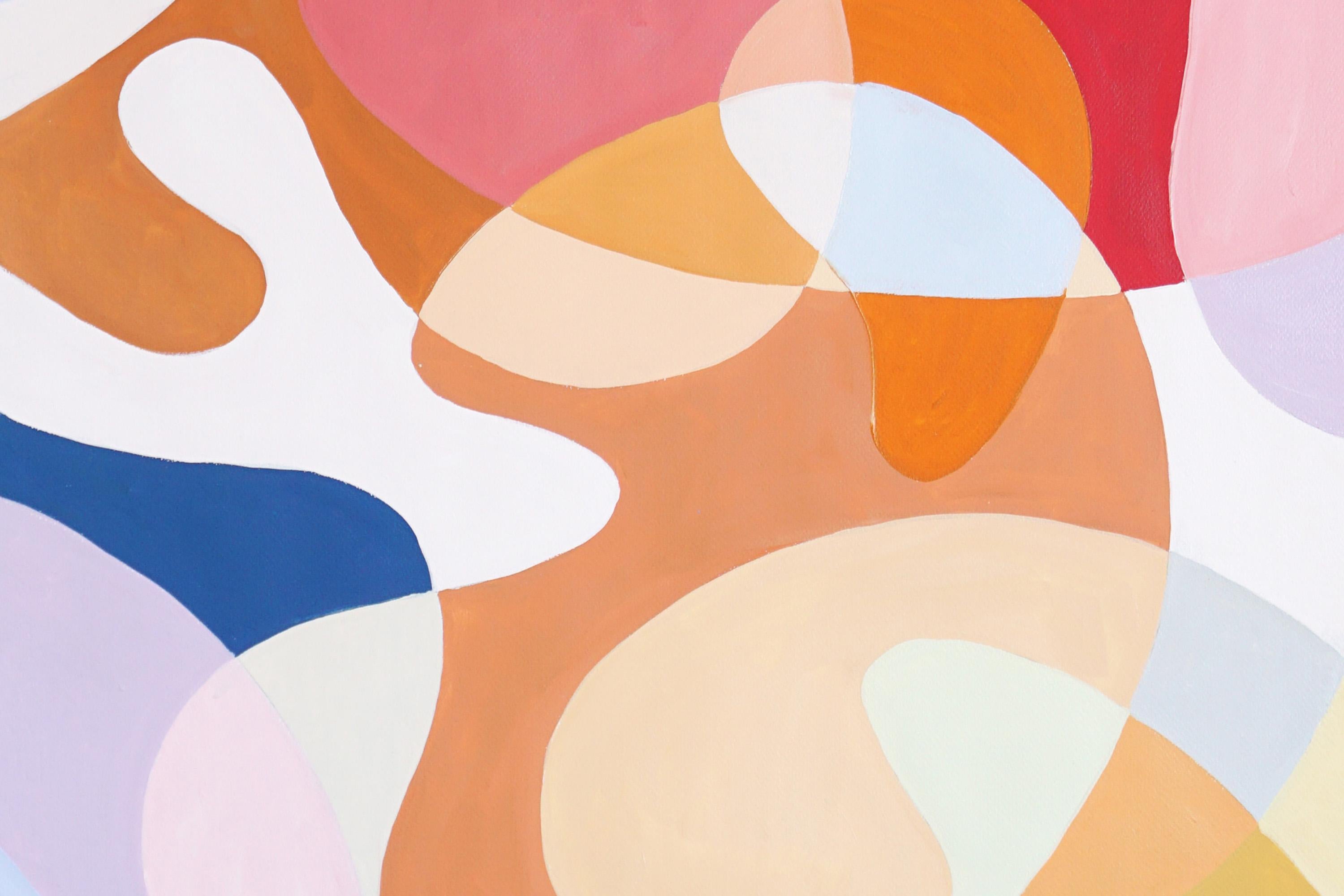 This abstract geometric acrylic painting is a vibrant and playful composition that draws inspiration from vintage Italian parasols. With a focus on bold, bright colors and clean line...