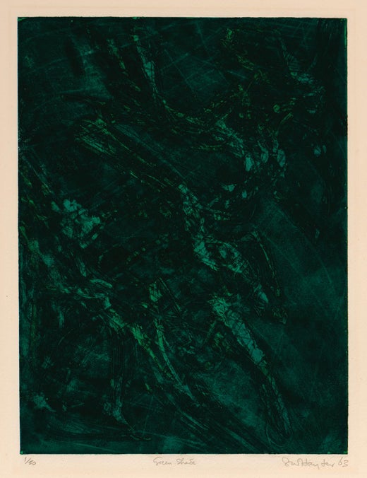 Hayter founded Atelier 17, a highly important printmaking workshop and school, which he started in 1927 in Paris. In 1940, due to the ongoing war in Europe, Hayter moved the studio to New York City, where he was fully engrained in the budding abstract expressionist movement. In 1950, Hayter moved the studio back to Paris. This work was created a short time later, in 1953.