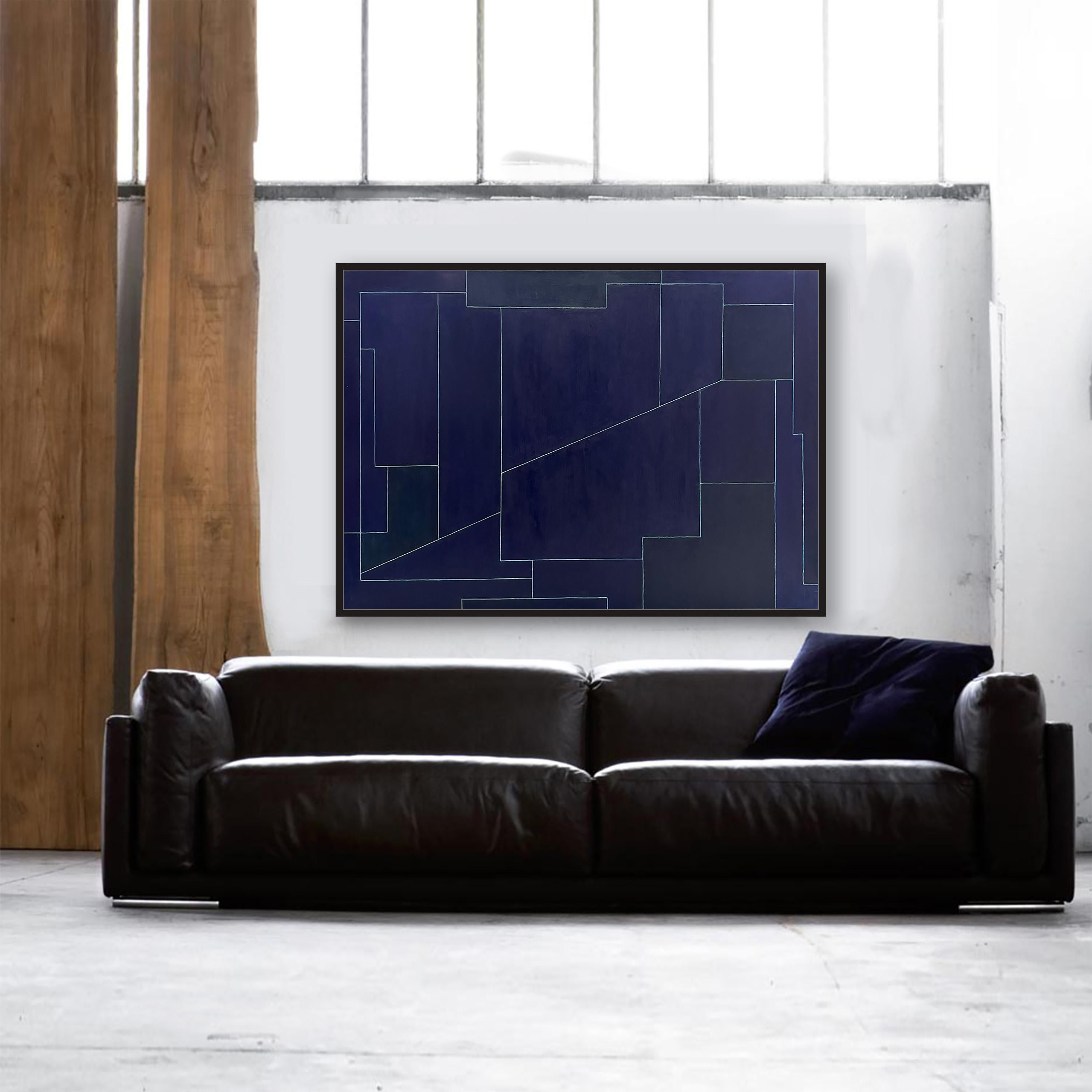 Indigo Line- Abstract Geometric Contemporary Modern Oil Painting on Canvas
