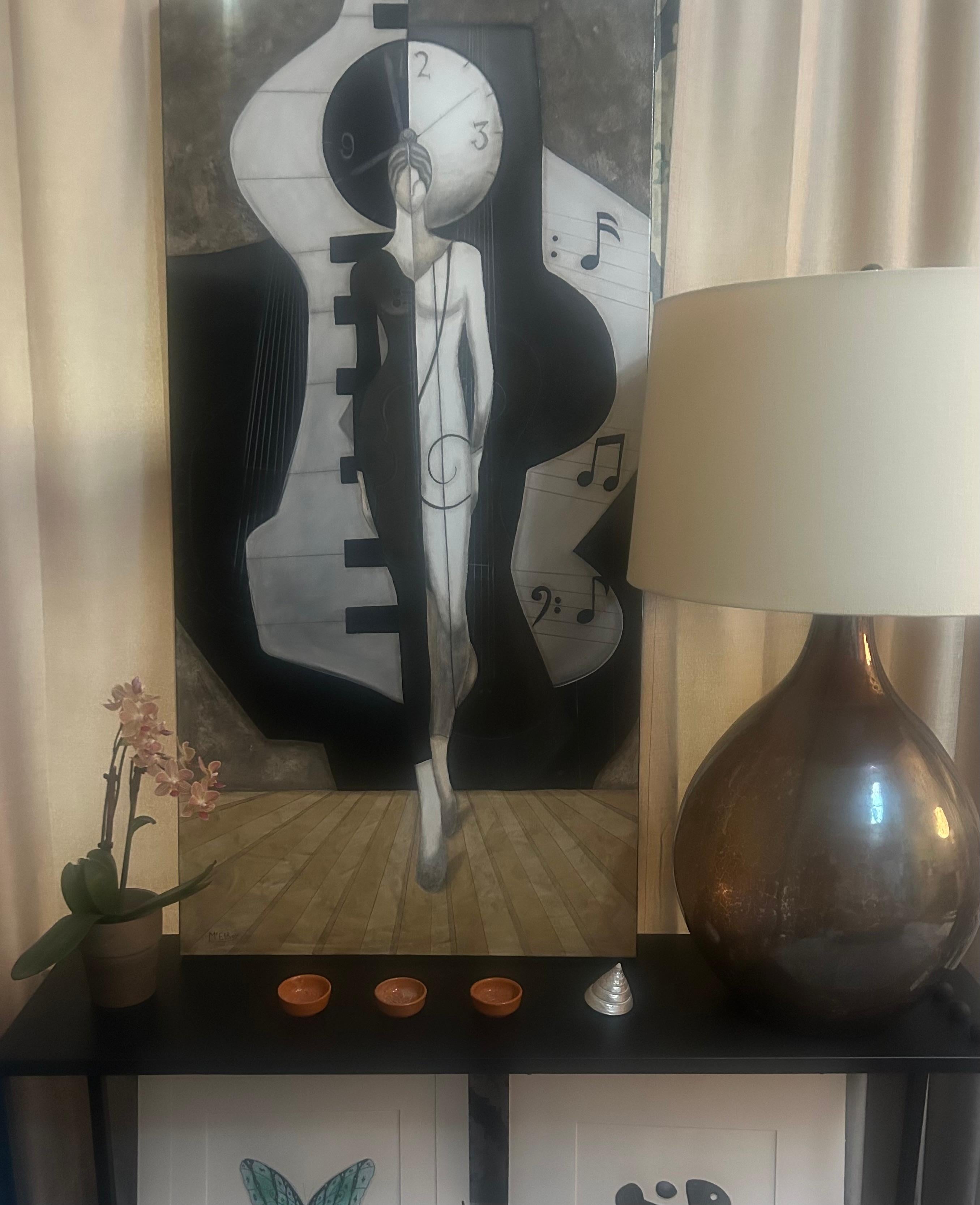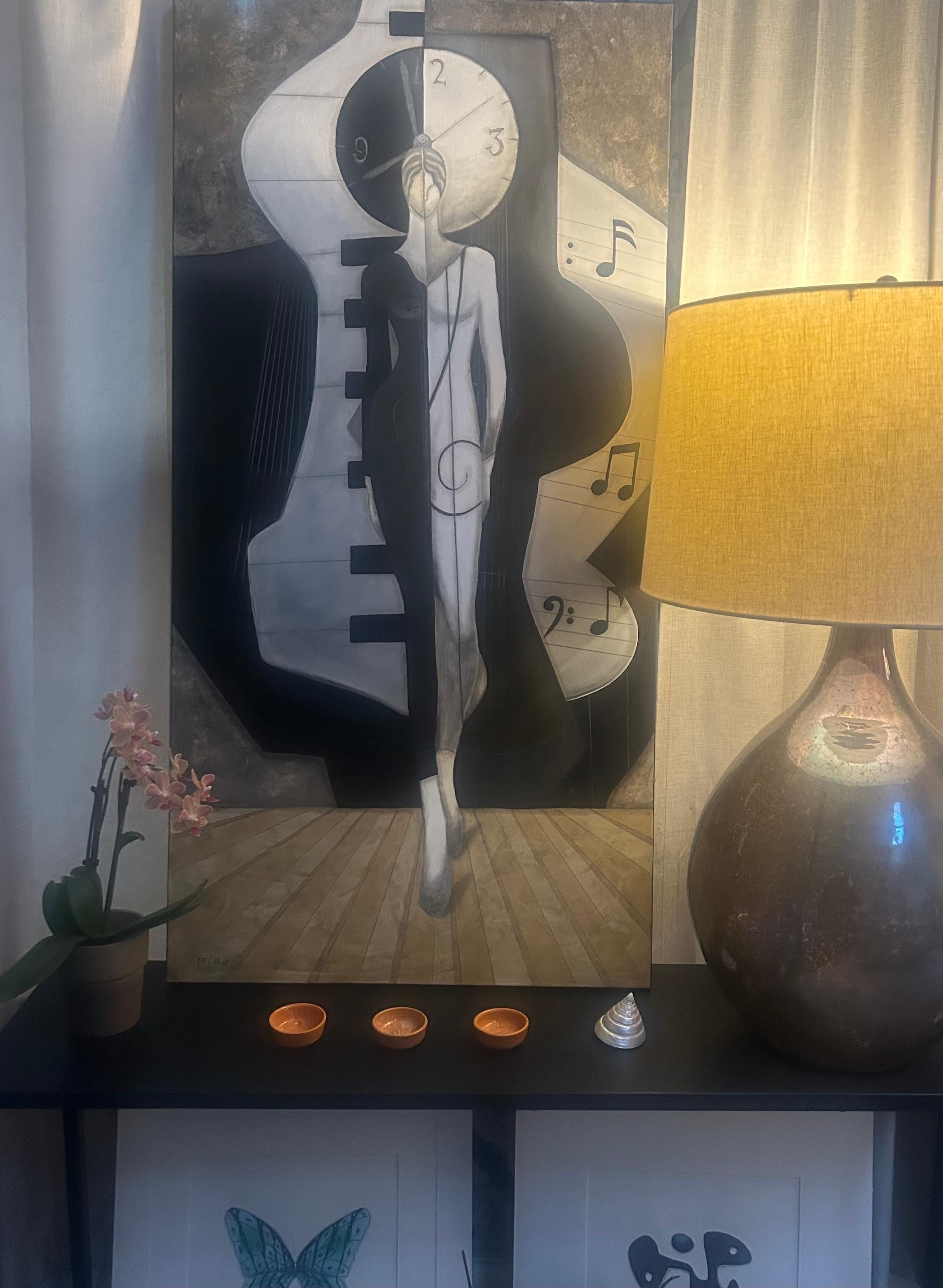 This original oil painting celebrates the beauty music and the human experience. An original drawing on French paper is included complimentary when purchasing an oil painting by this artist.