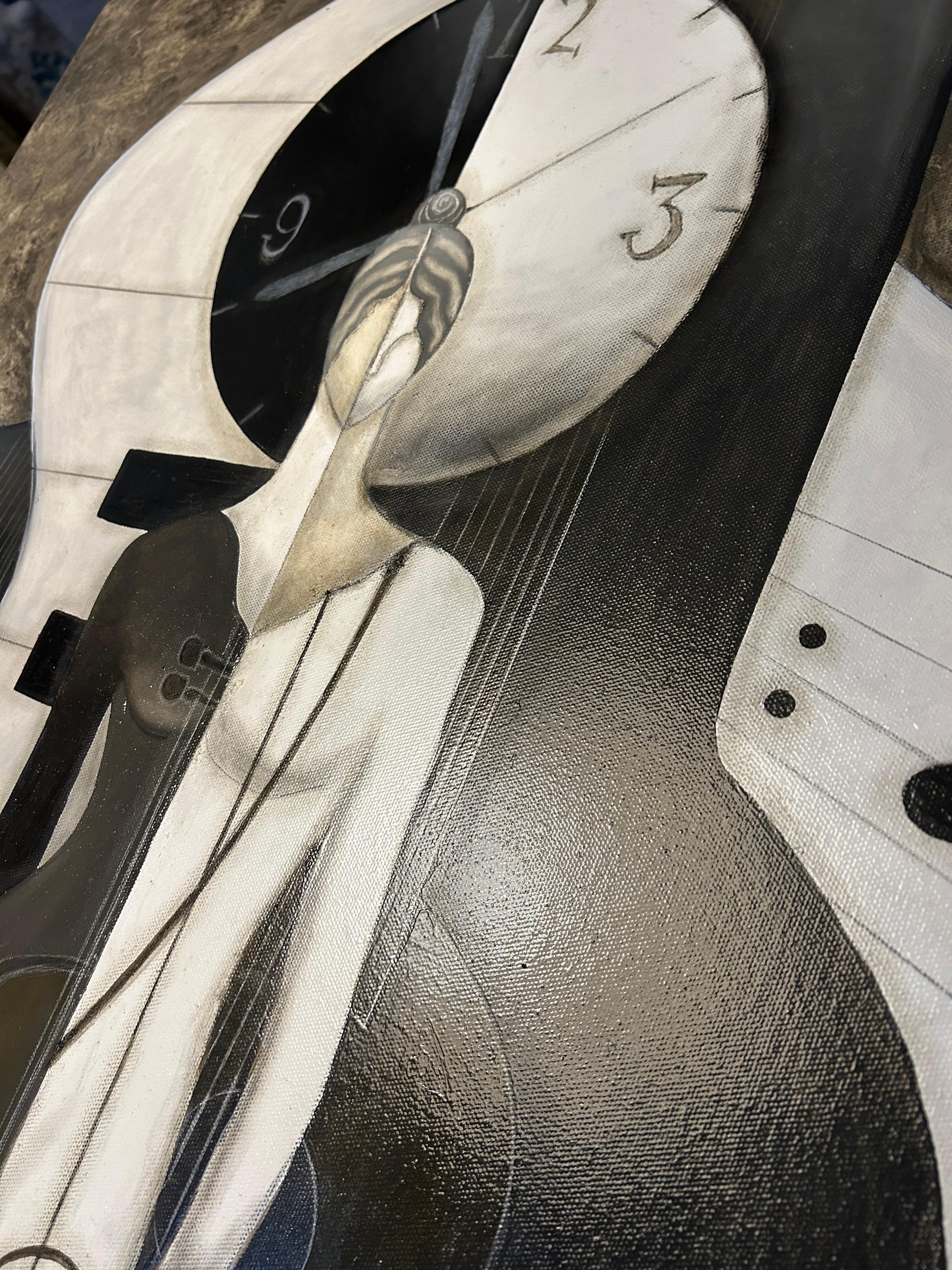 The intense blue and gray in this painting reflect the deep sound of the cello , that sound which penetrates to the deep depths of the soul. :: Painting :: Abstract :: This piece c...