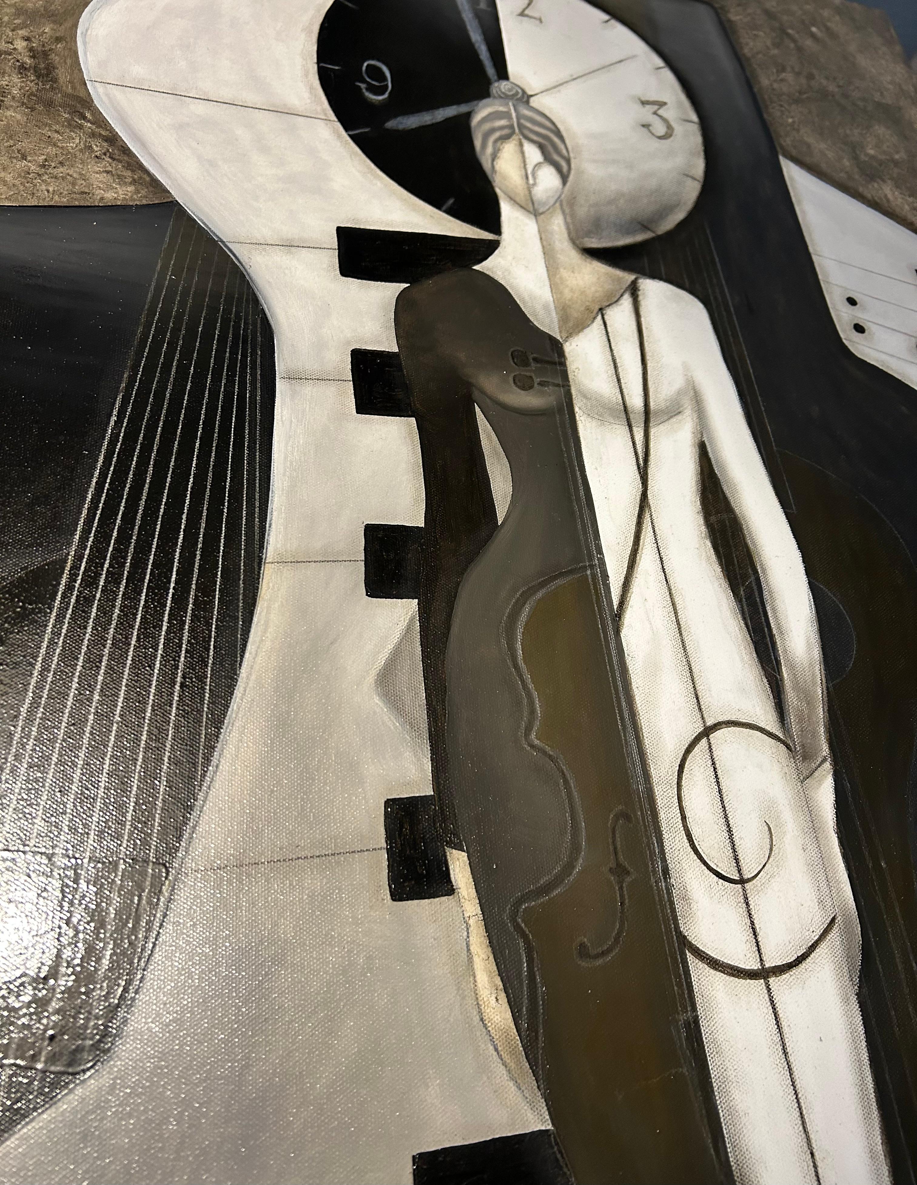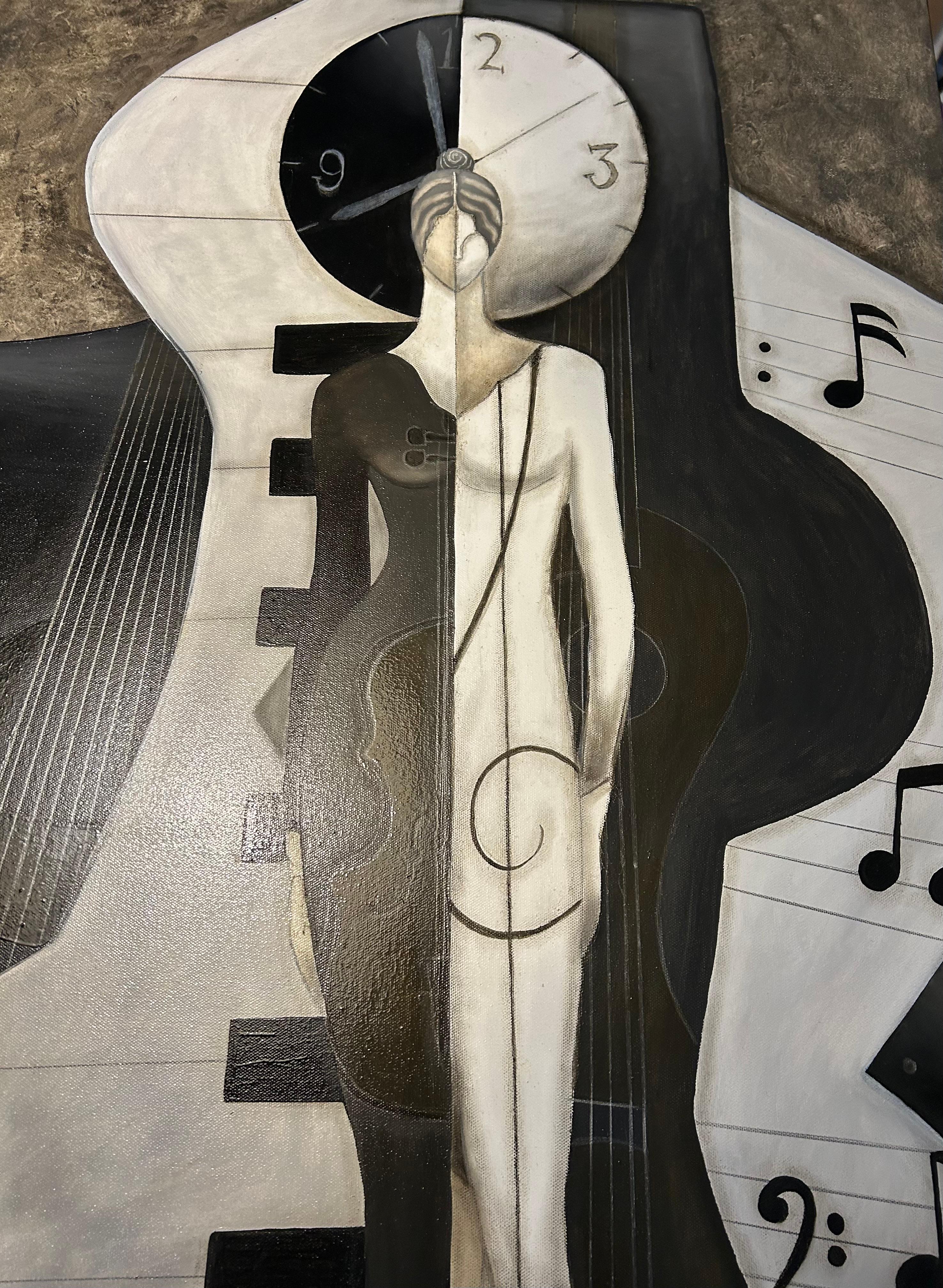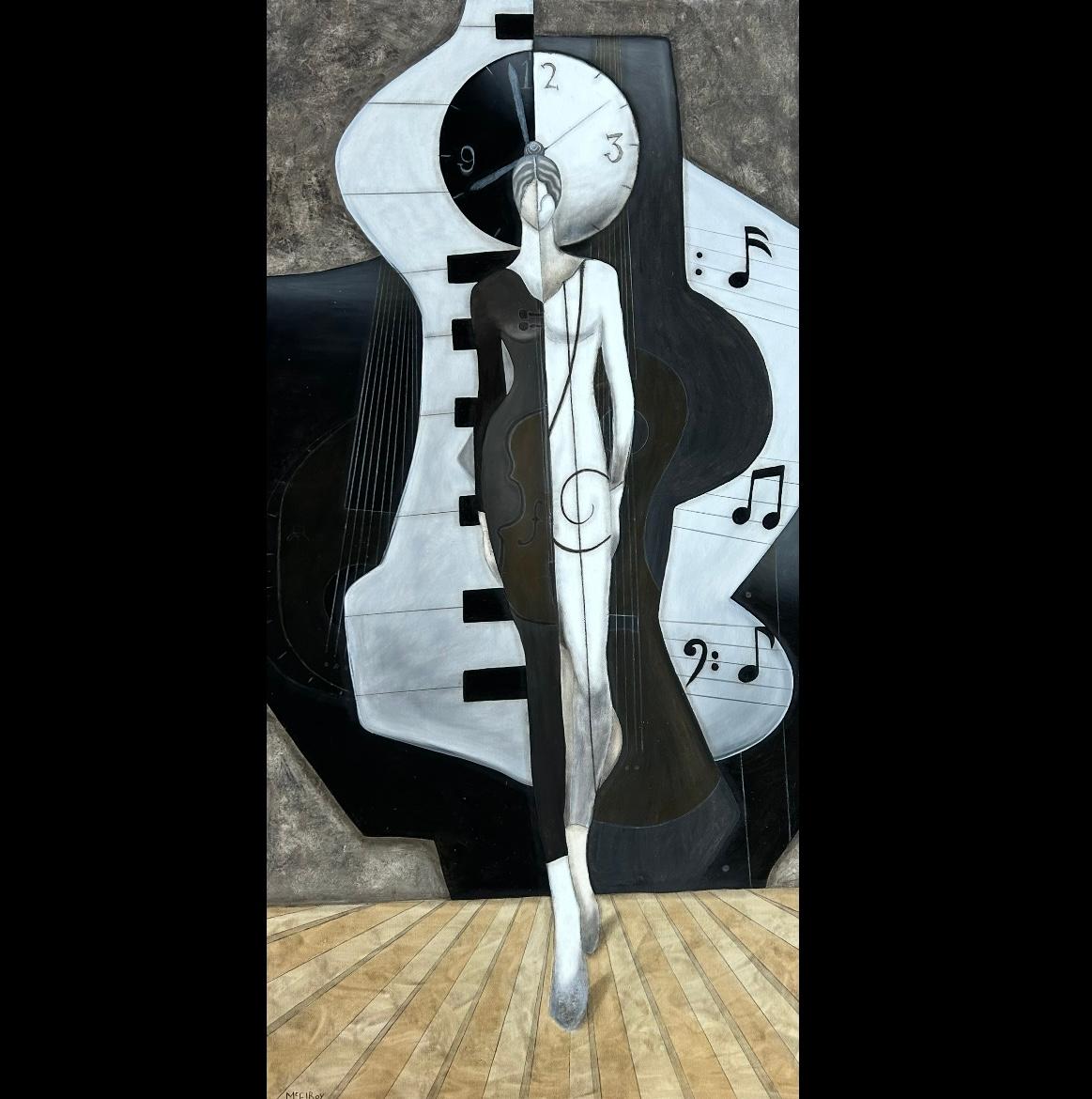 In this vibrant tapestry of shapes and melody, I've married oil and wax to craft a rhythmic complexity that resonates like a visual symphony. The cubist influences and figurative ele...