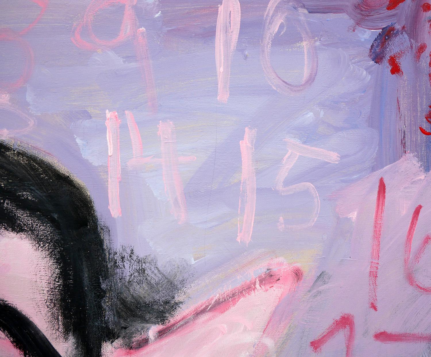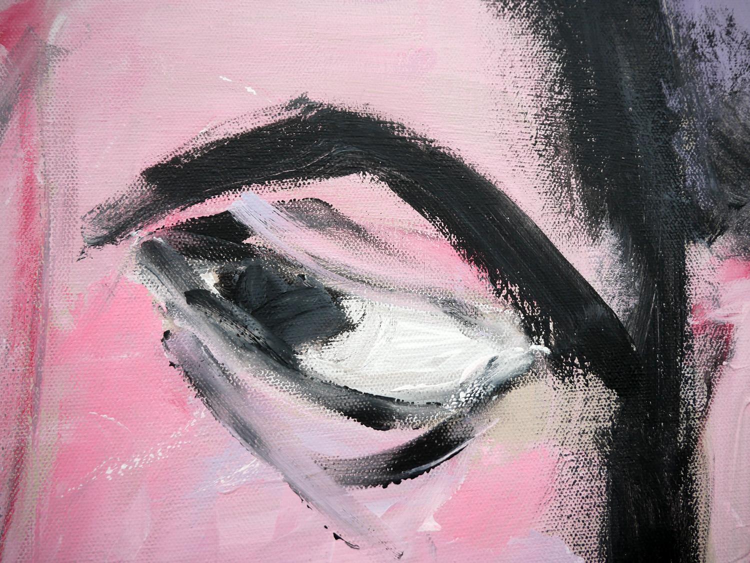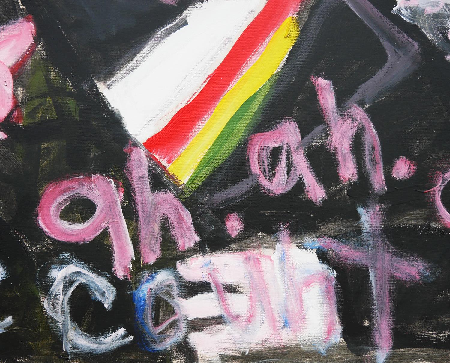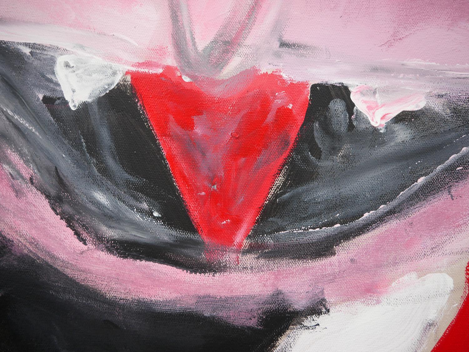 Coulombe-Bégin’s work portrays from colorful hearts to specific parts of the human body, especially large close-up portrayals of the mouth and eyes, which are depicted with great contrasts of color and chiaroscuro. These symbols are constructed with specific gestures and drippings in which Coulombe-Bégin expresses an abstract universe full of movement, symbolism, and eroticism.