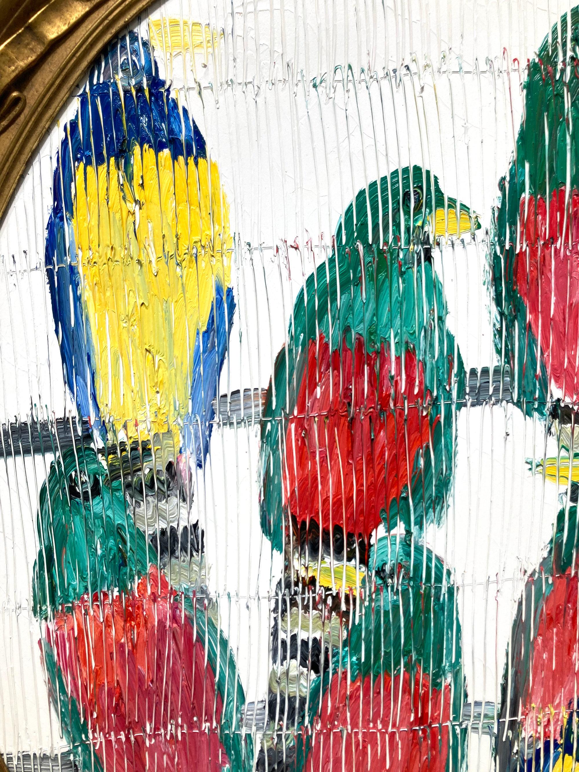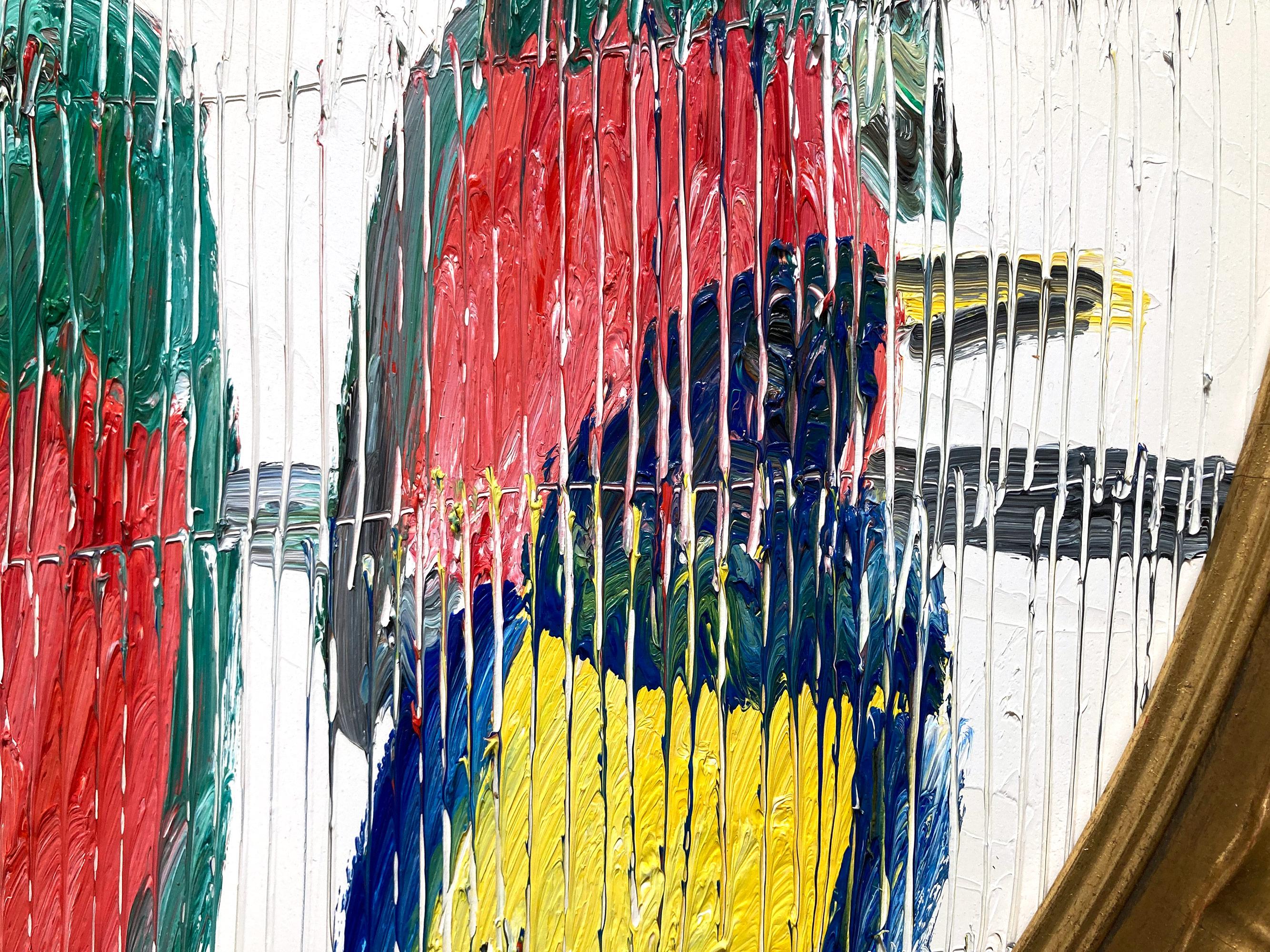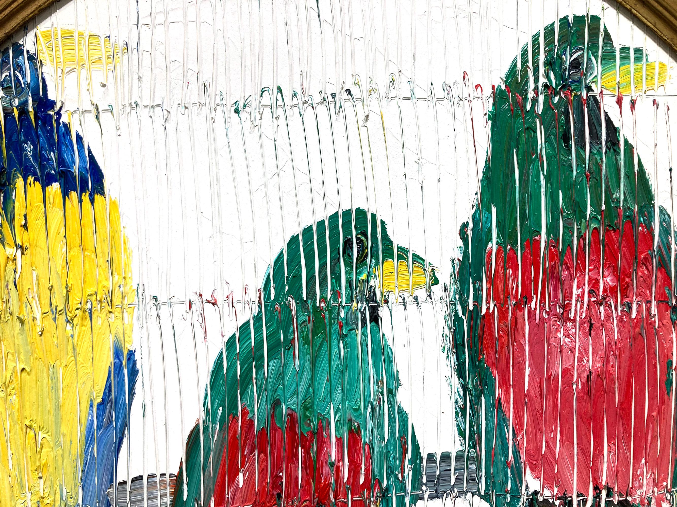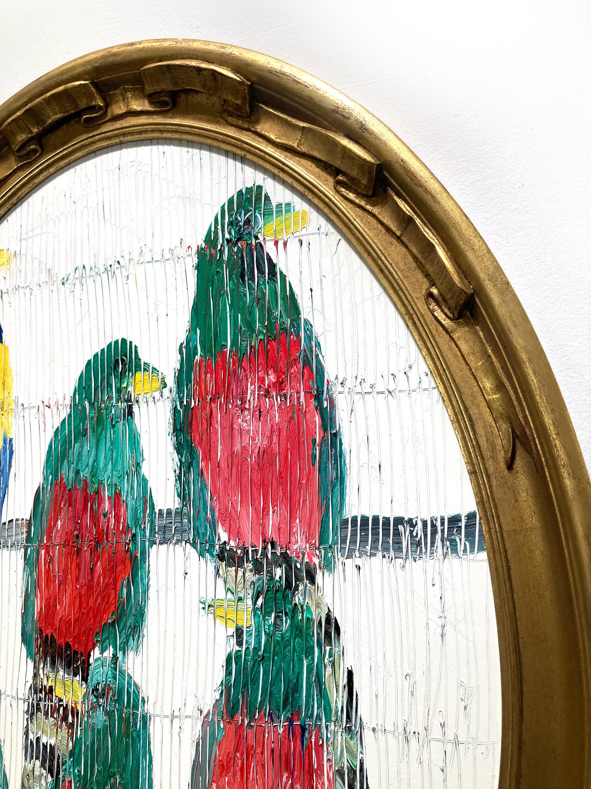 Hunt Slonem"Grand Mott Mott" Multicolored Birds with Background Oil Painting on Wood Framed2025