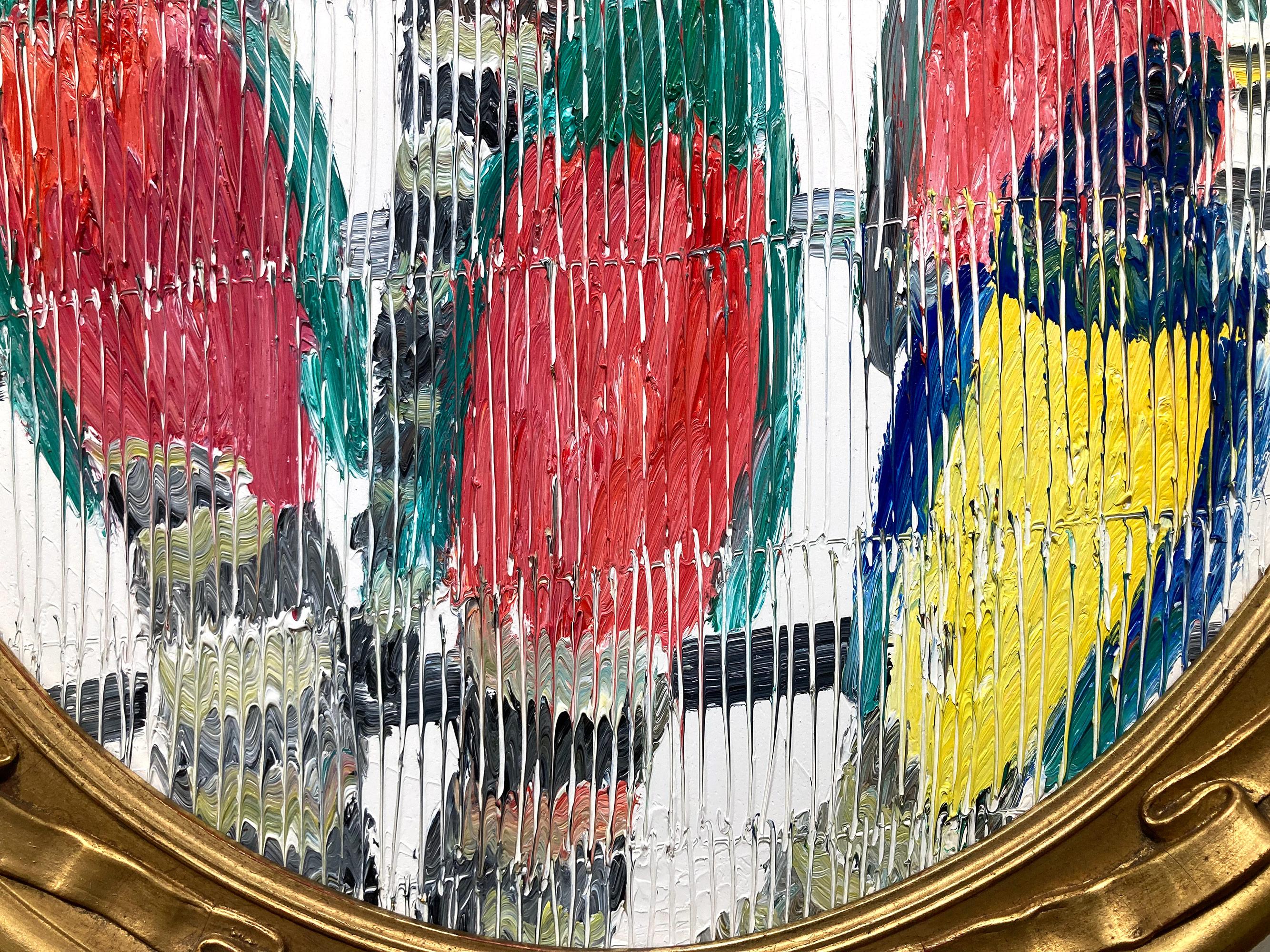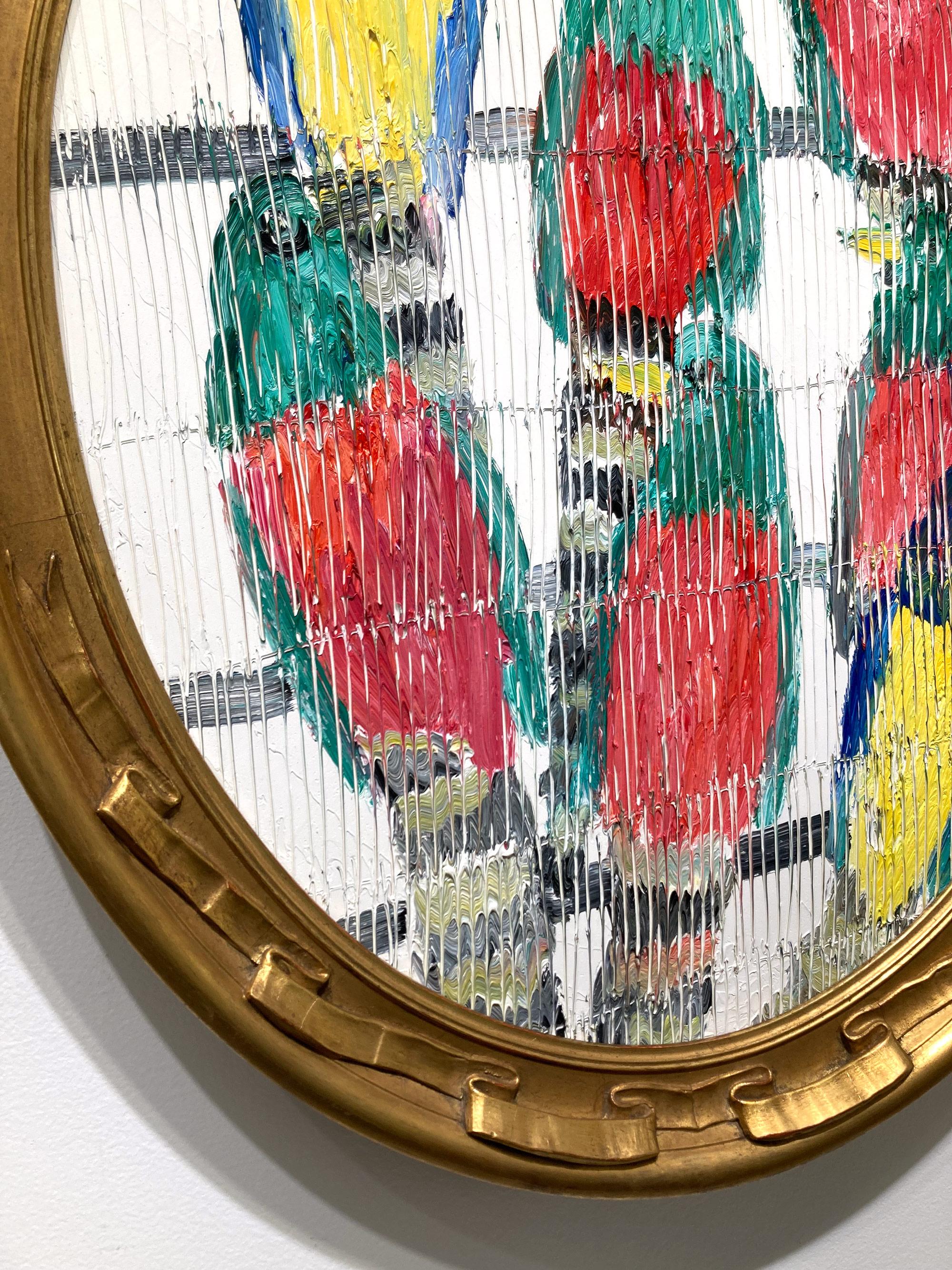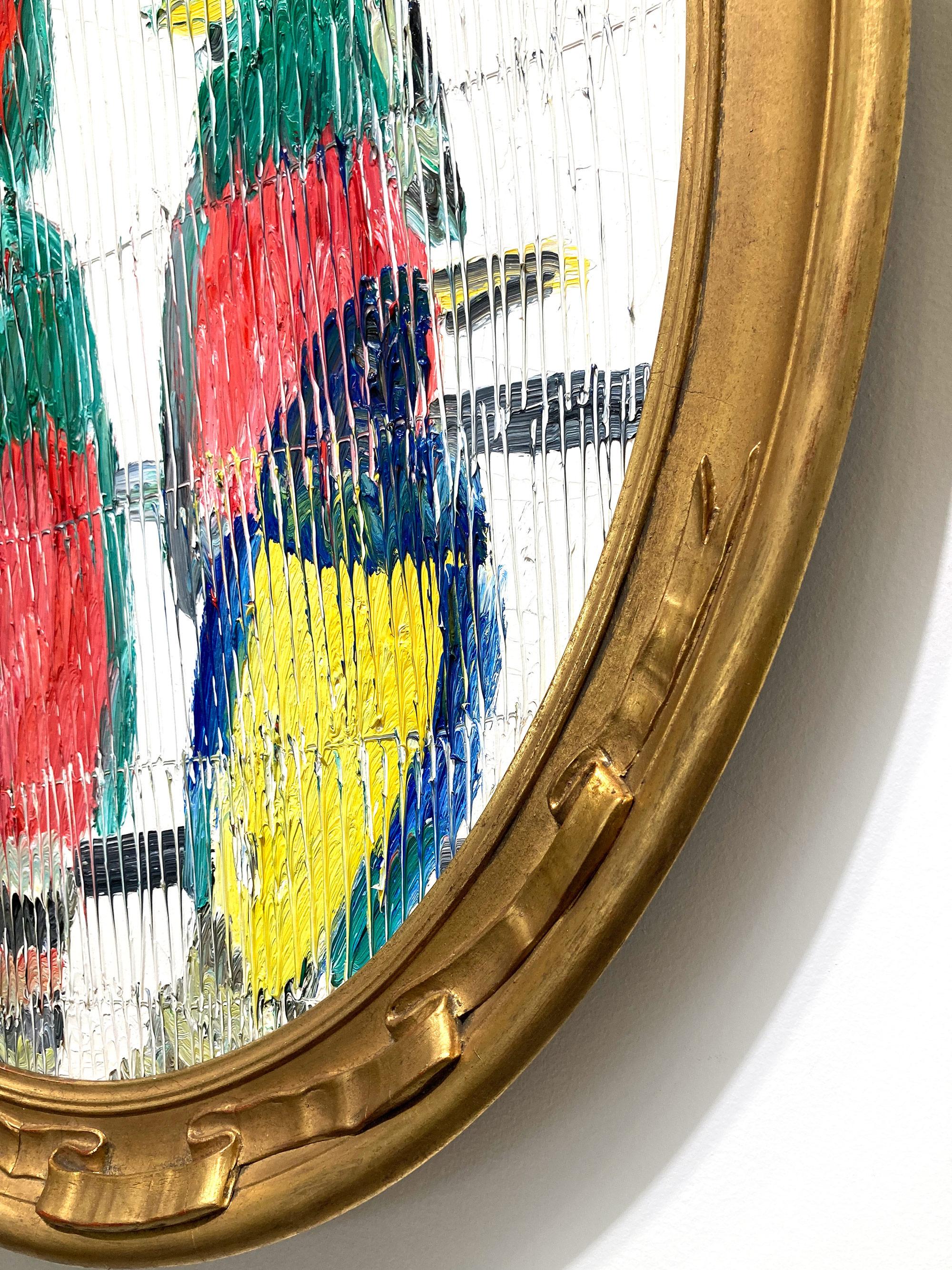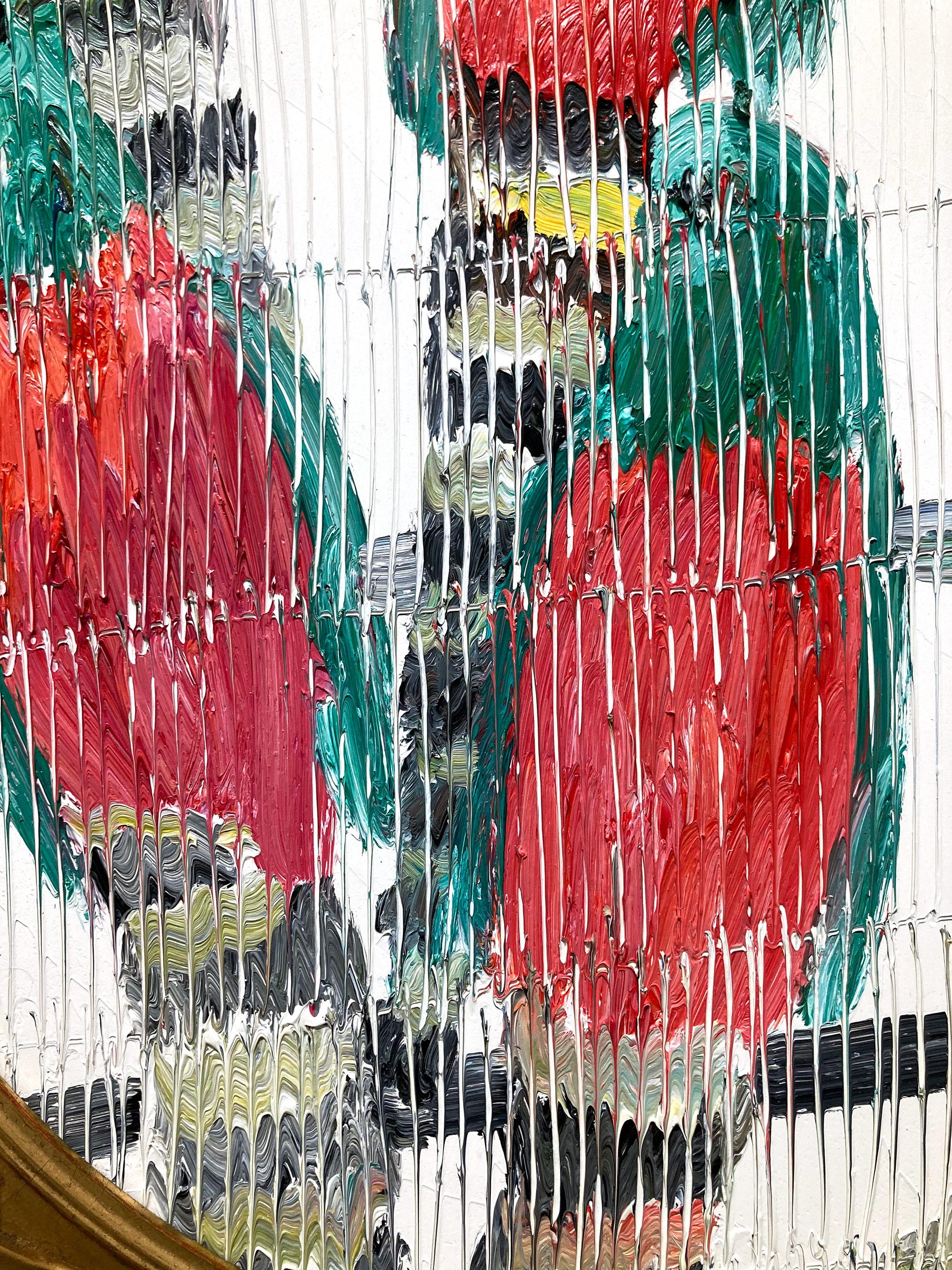 Hunt Slonem"Grand Mott Mott" Multicolored Birds with Background Oil Painting on Wood Framed2025