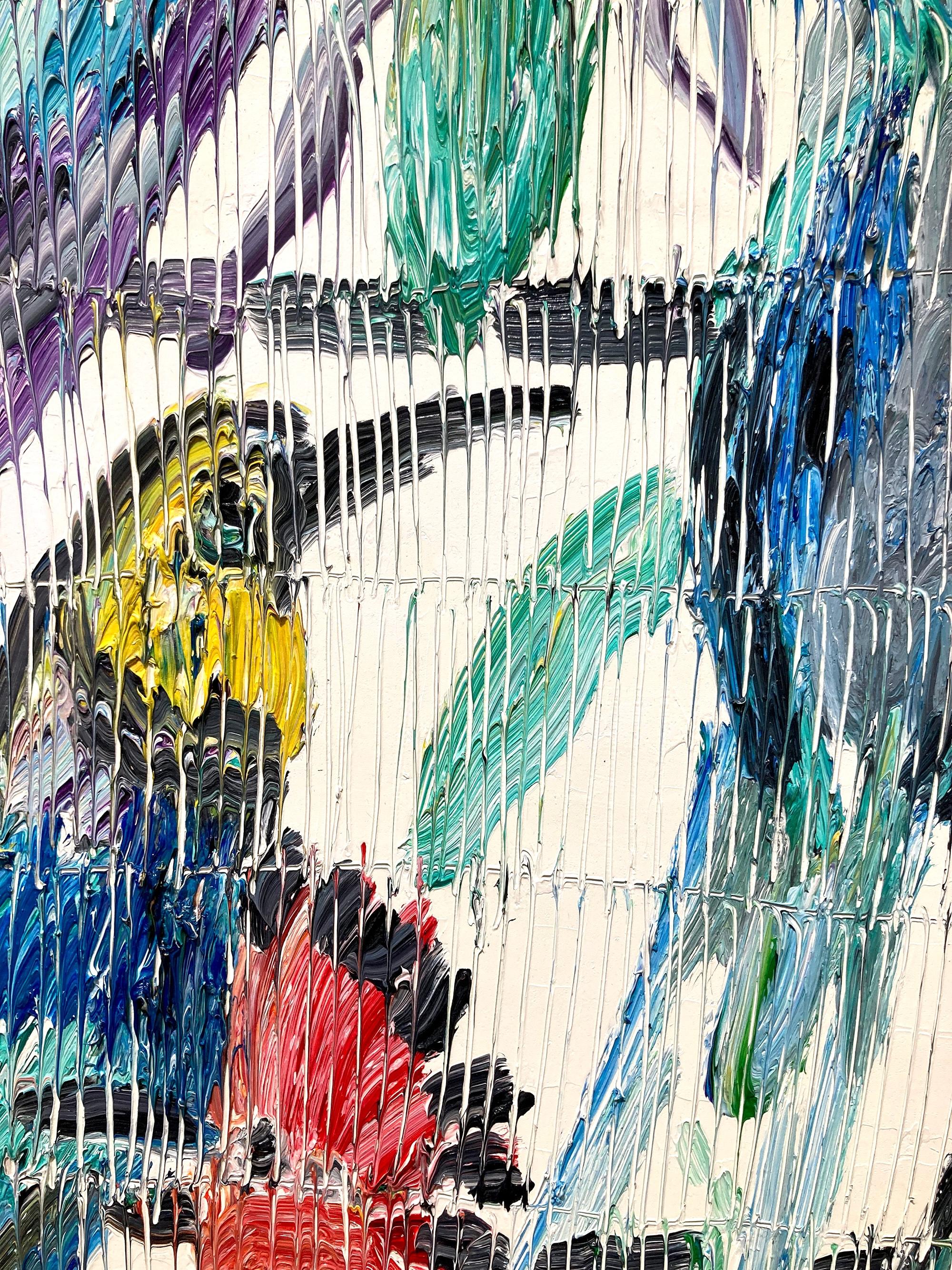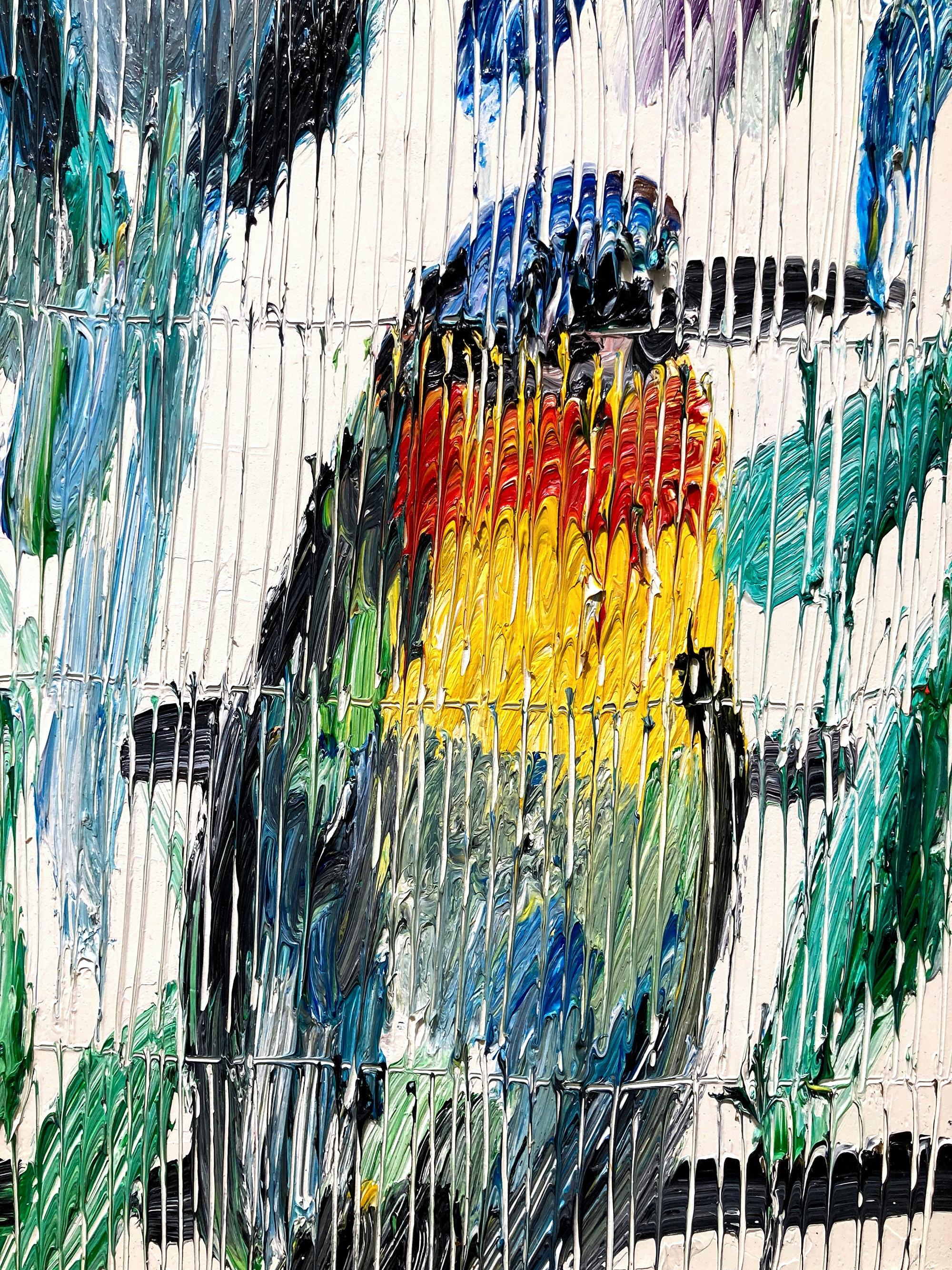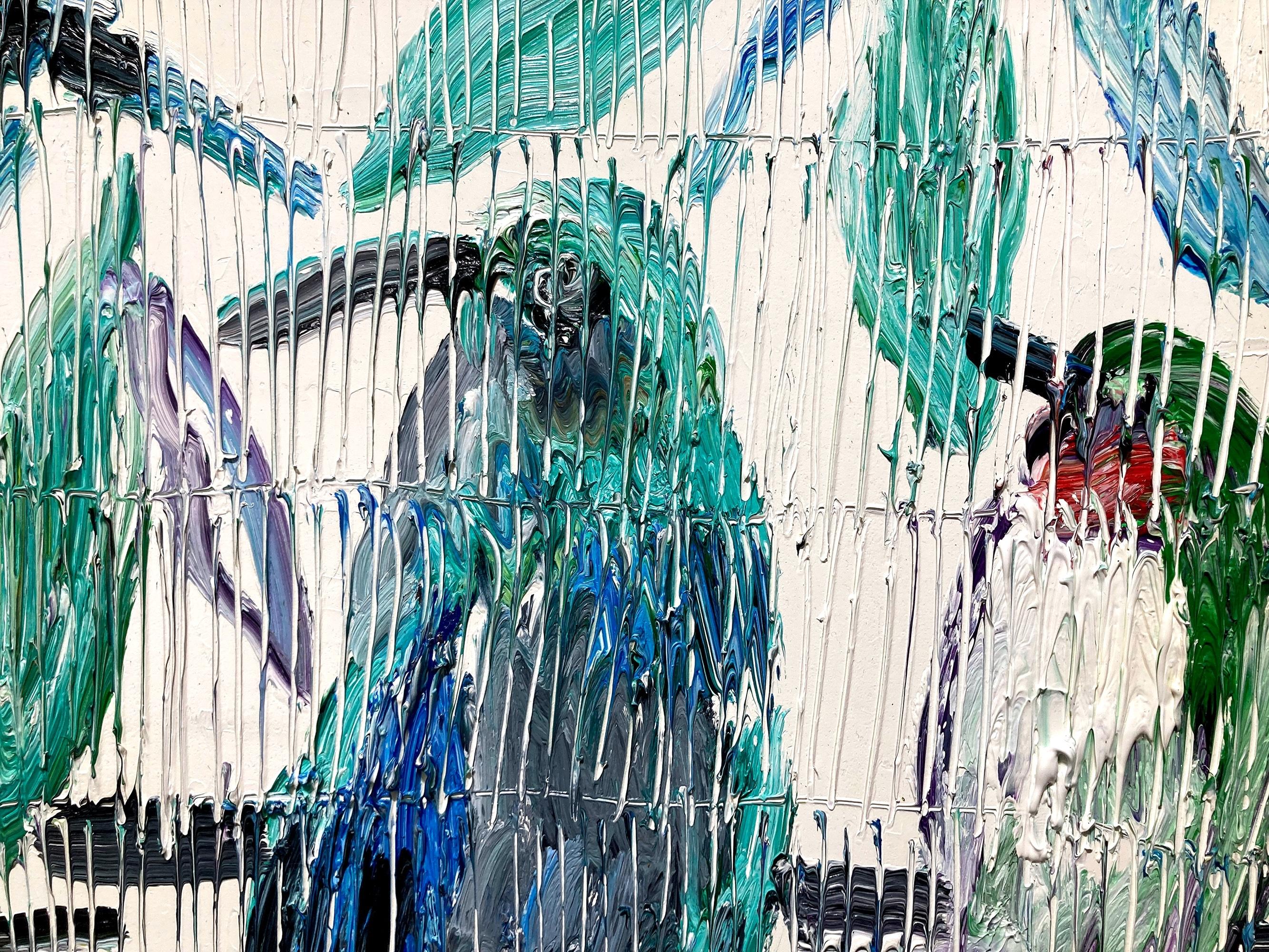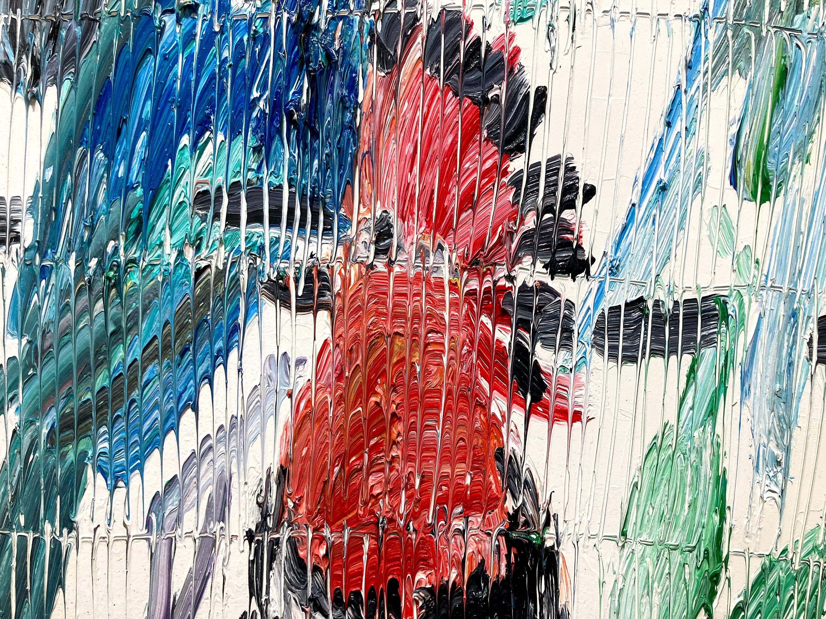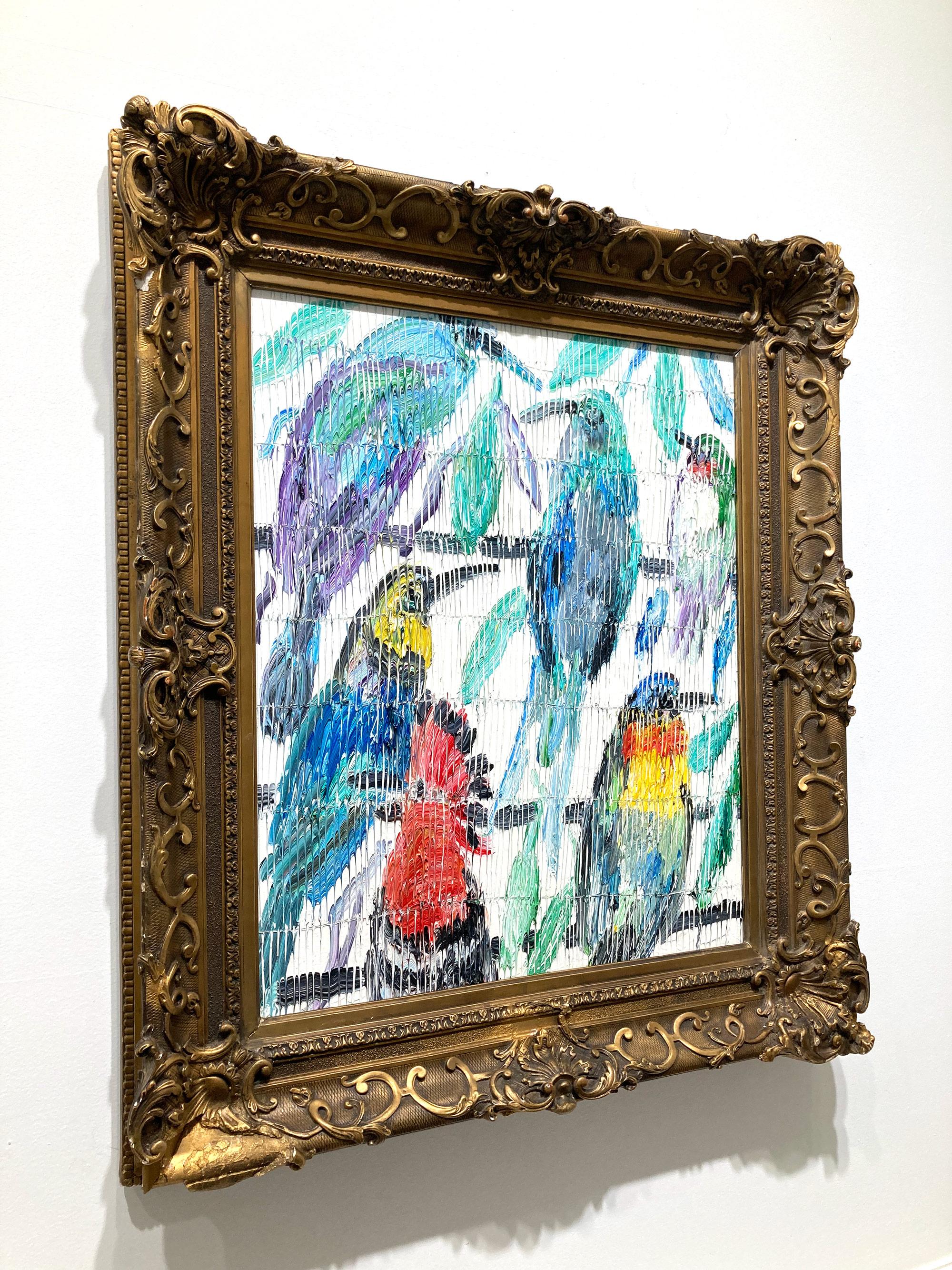 Hunt Slonem"Hoopoe" Multicolored Birds with White Background Oil Painting on Wood Framed2025