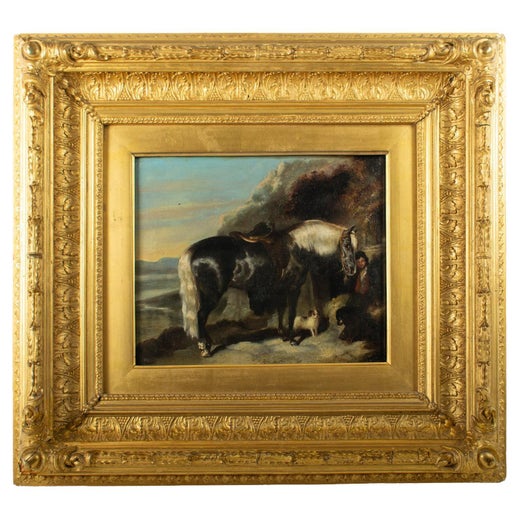 John Frederick Herring Jr. was taught by his father, the eminent early 19th century artist J.F. Herring Sr. (1795-1865) who was official Animal Painter to Her Royal Highness the Duchess of Kent. Like Herring Sr., he became a highly successful painter of sporting and animal subjects which were particularly popular with the English aristocracy. The current work is a homage to his father’s famous subject picture of 1850, and possibly commissioned by a patron who had been unable to secure Herring Senior’s original. Between 1860 and 1875 J.F. Herring Jr. exhibited at the Royal Academy, the British Institution, and the Royal Society of British Artists.