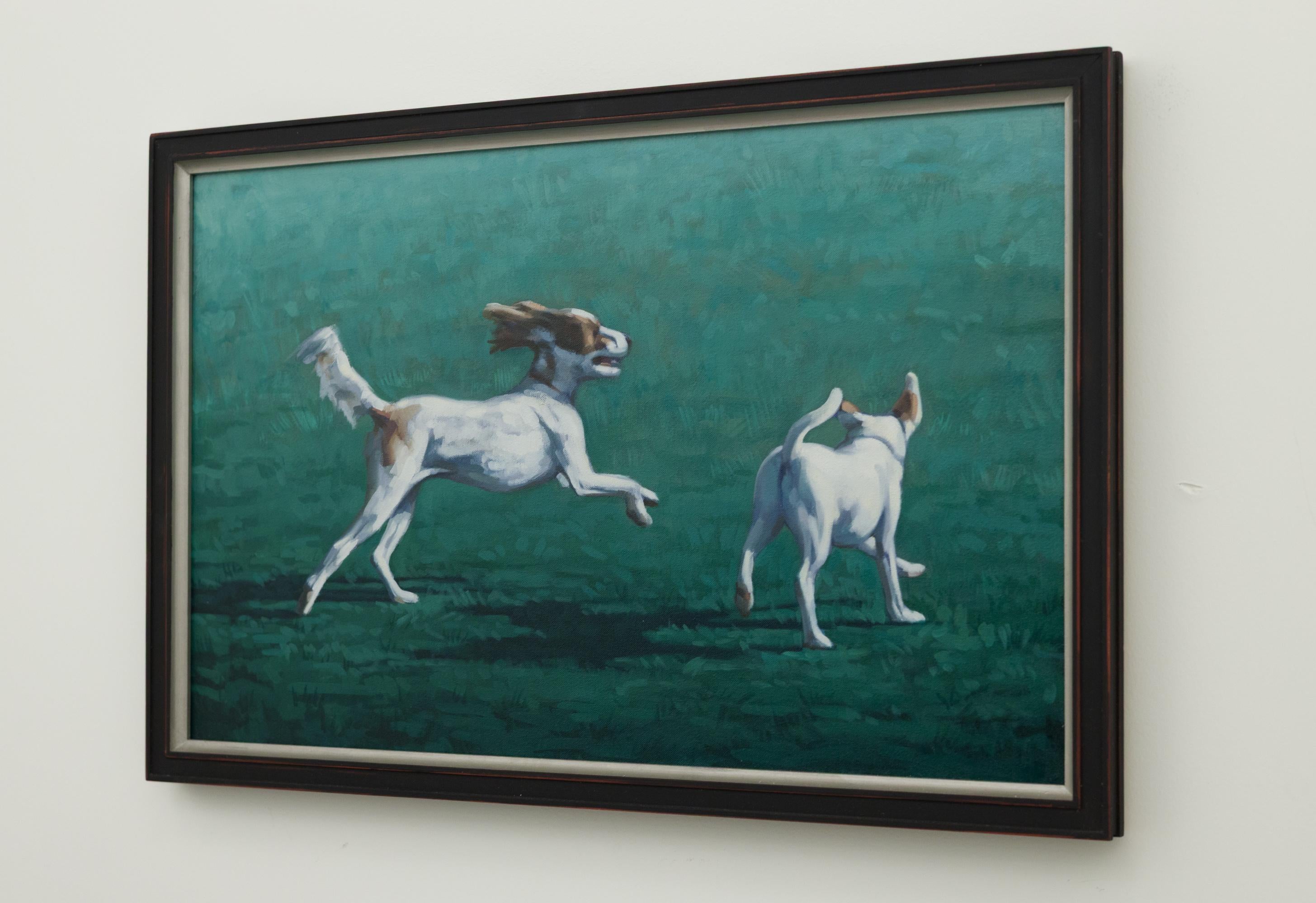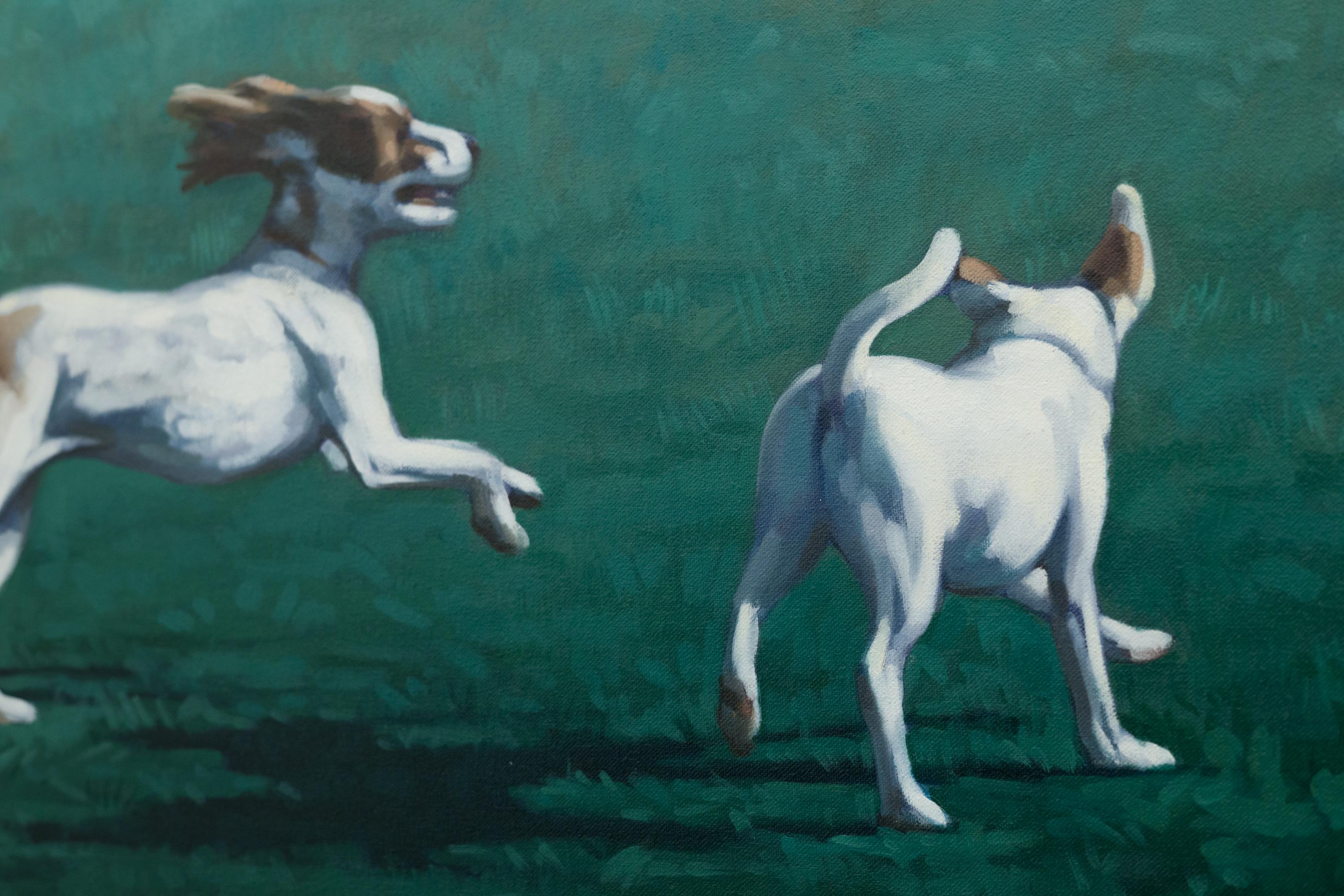 Katherine Fraser"Buddies" Playful Dogs Running in Oil on Canvas2018