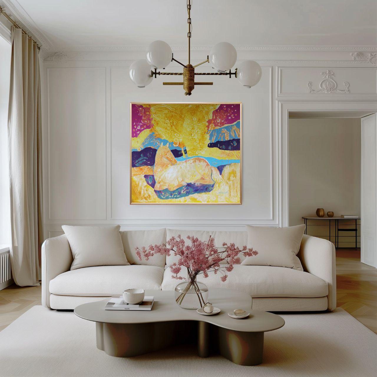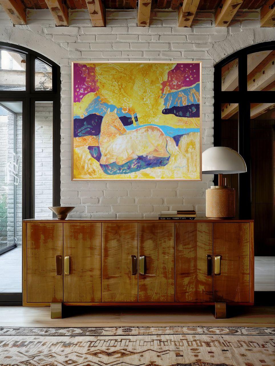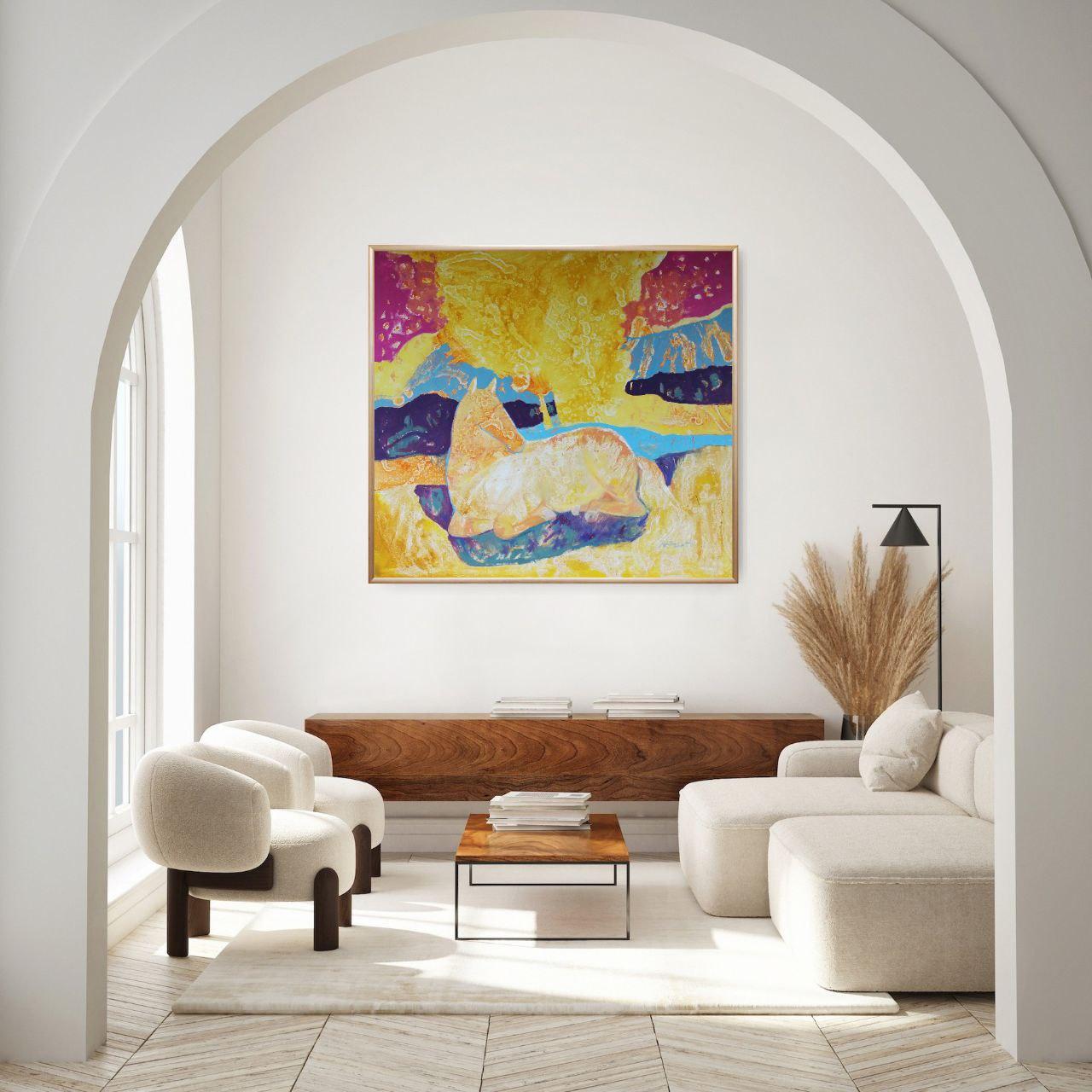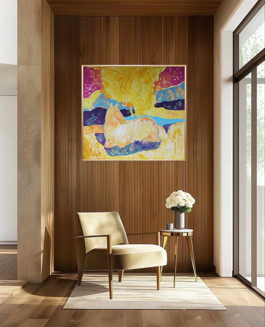 Golden Glow. Abstract expressionist, interior painting, large, gold