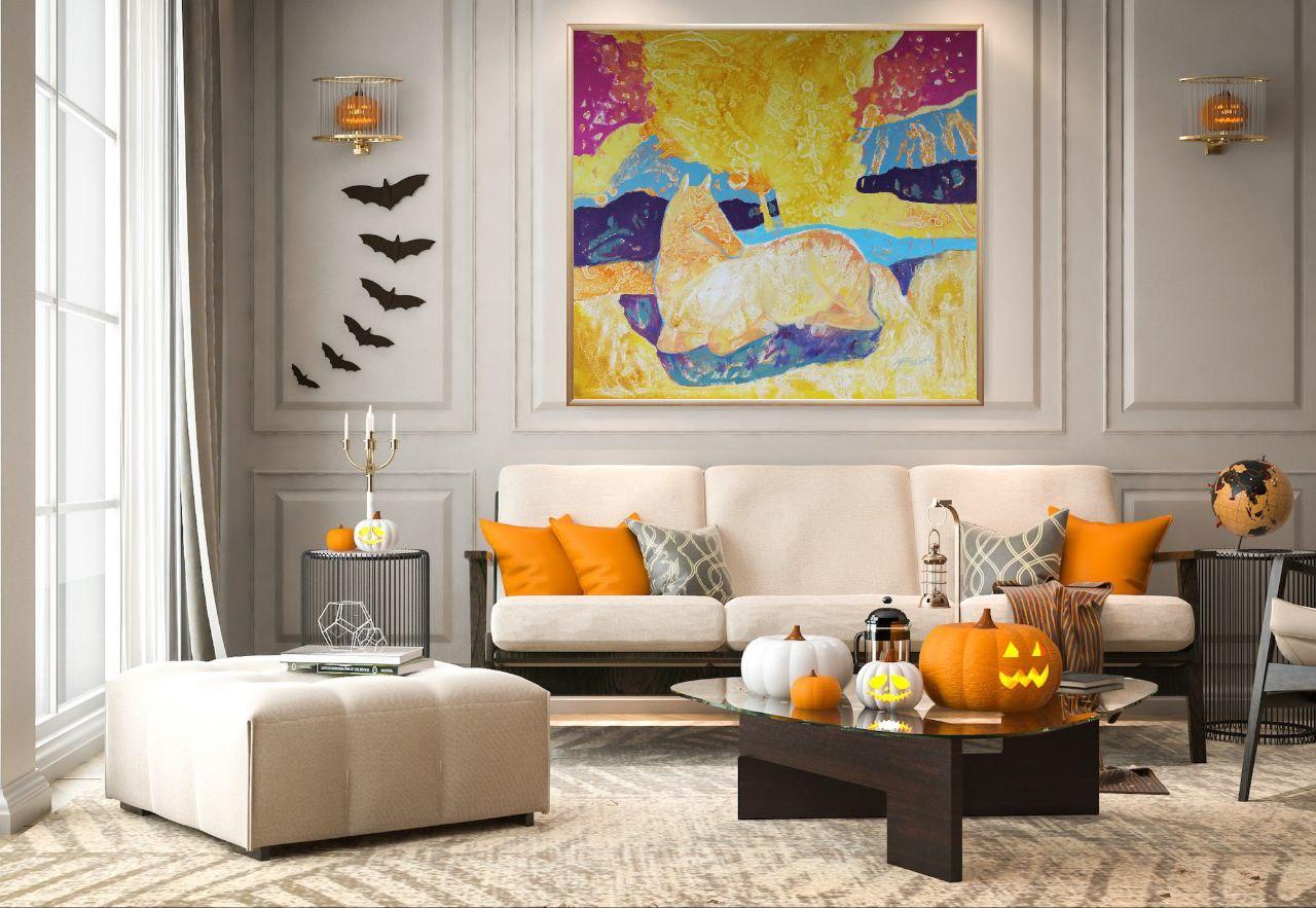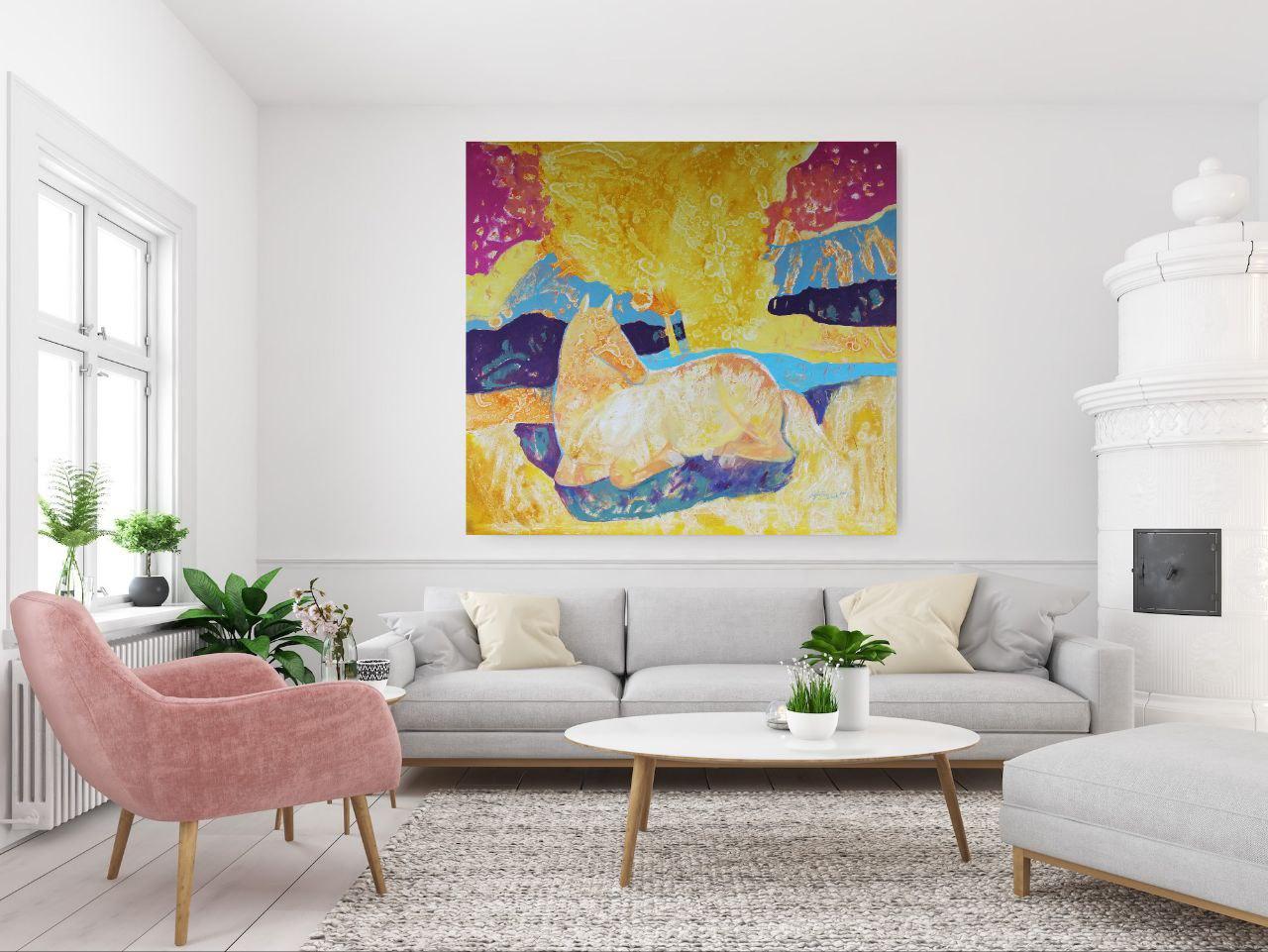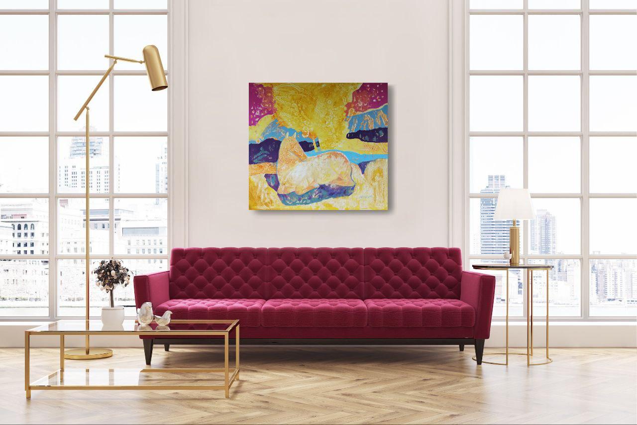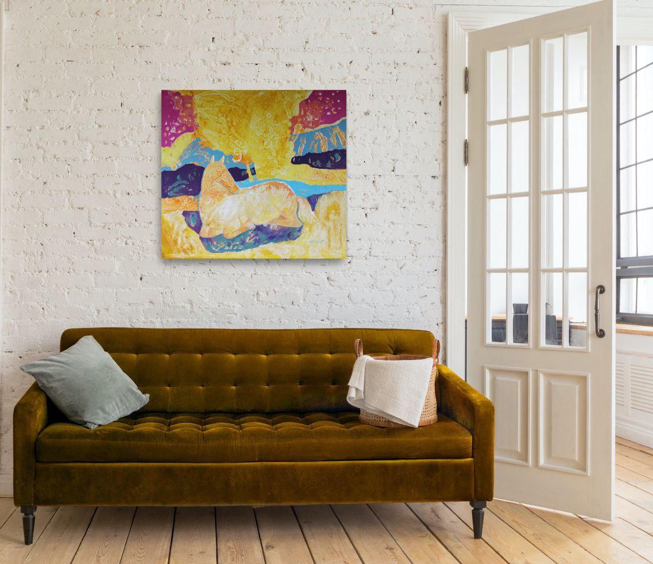 Golden Glow. Abstract expressionist, interior painting, large, gold