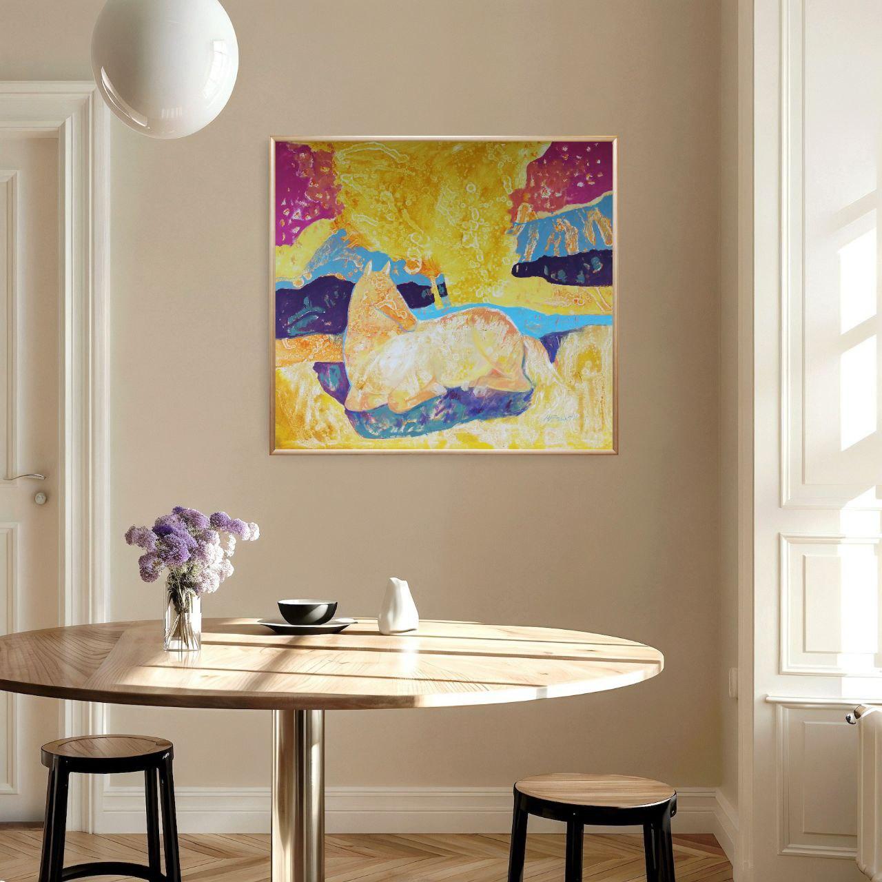 The horse, immersed in radiance, embodies serenity and a deep trust in the rhythms of the earth.