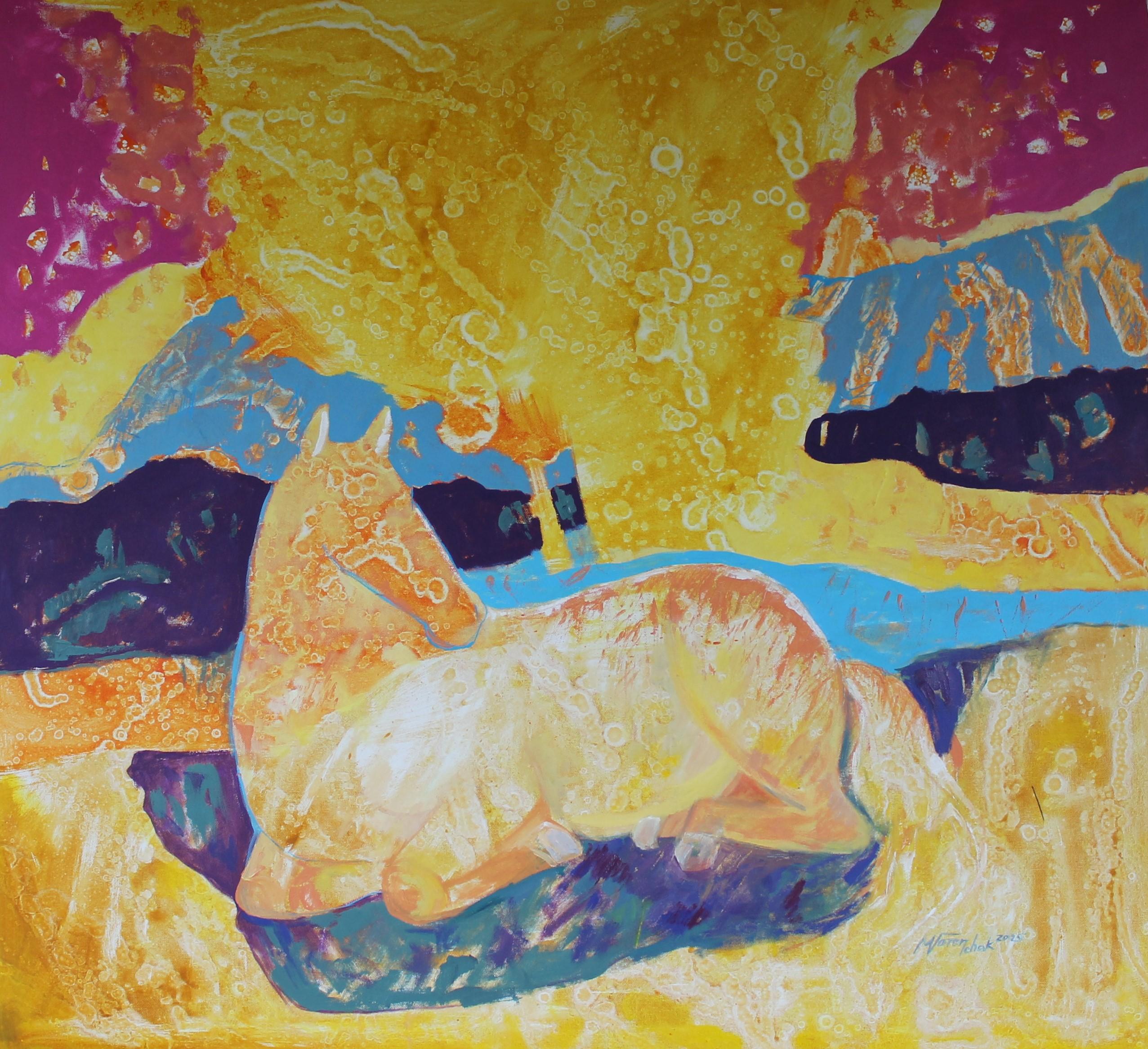 The painting opens a space where the earth resonates with its invisible vibrations. The horses appear not only as figures of nature but as symbols of the soul’s movement through the...