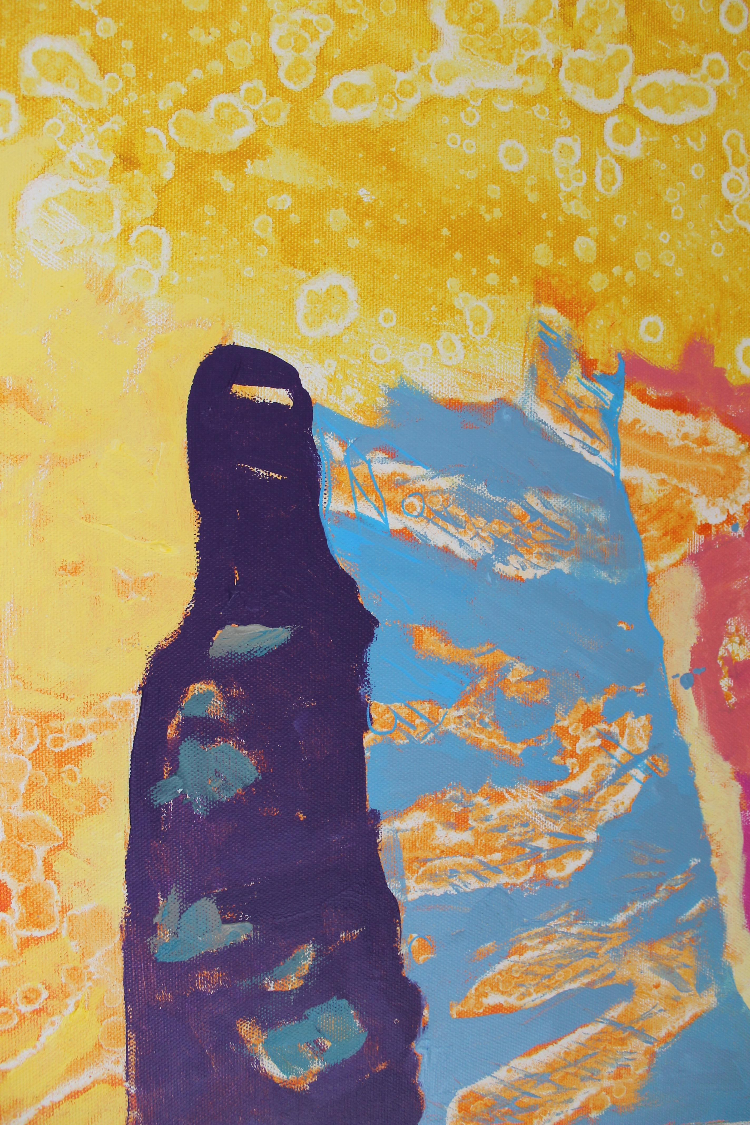 The story of one day. An expressive, modern, abstract painting created by drops and splashes of paint that sparkles and shimmers! The colors are superimposed on each other and also c...