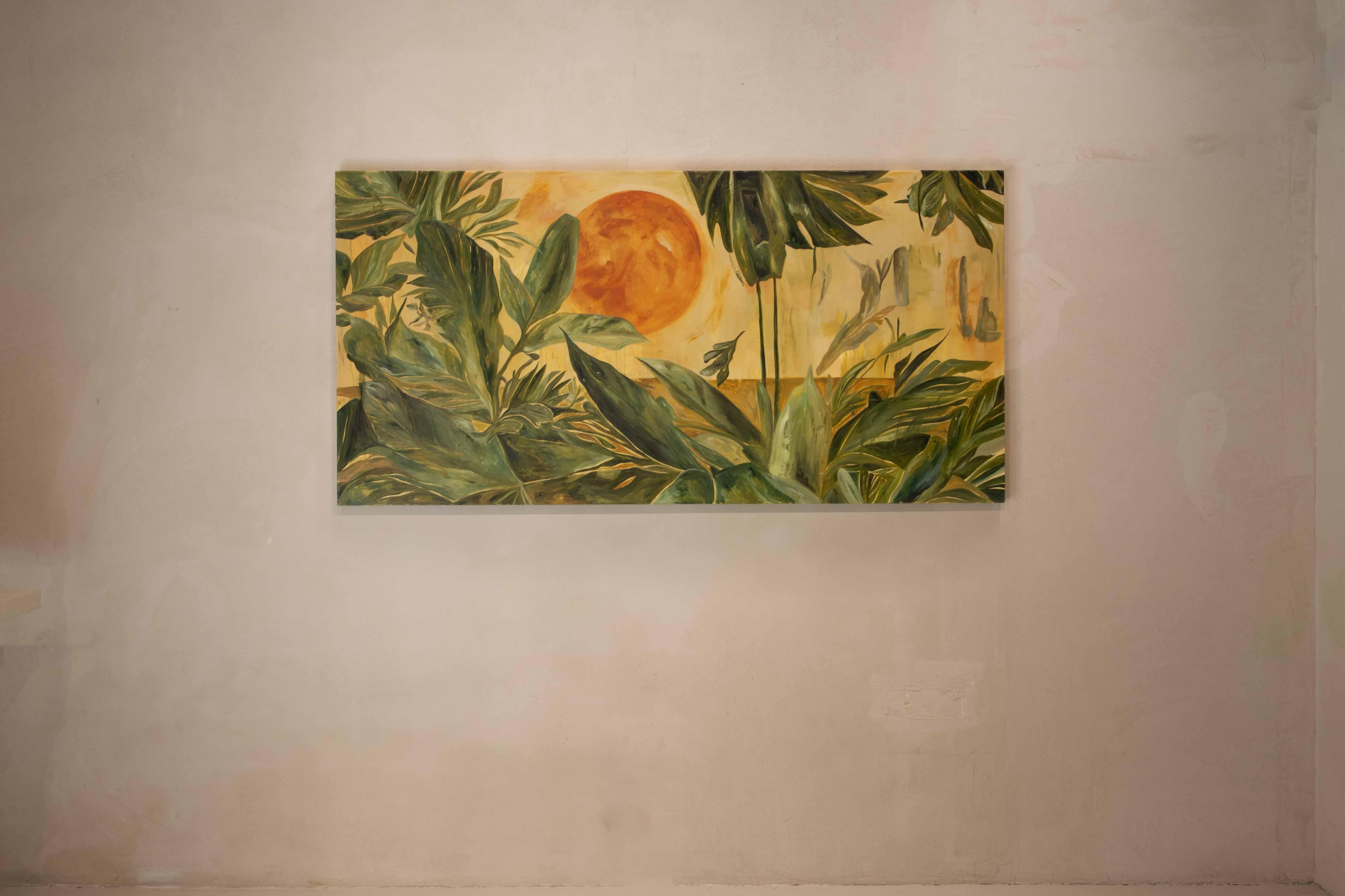 Morning Blooming - Butter Yellow Floral Landscape Mixed Media Art on Canvas