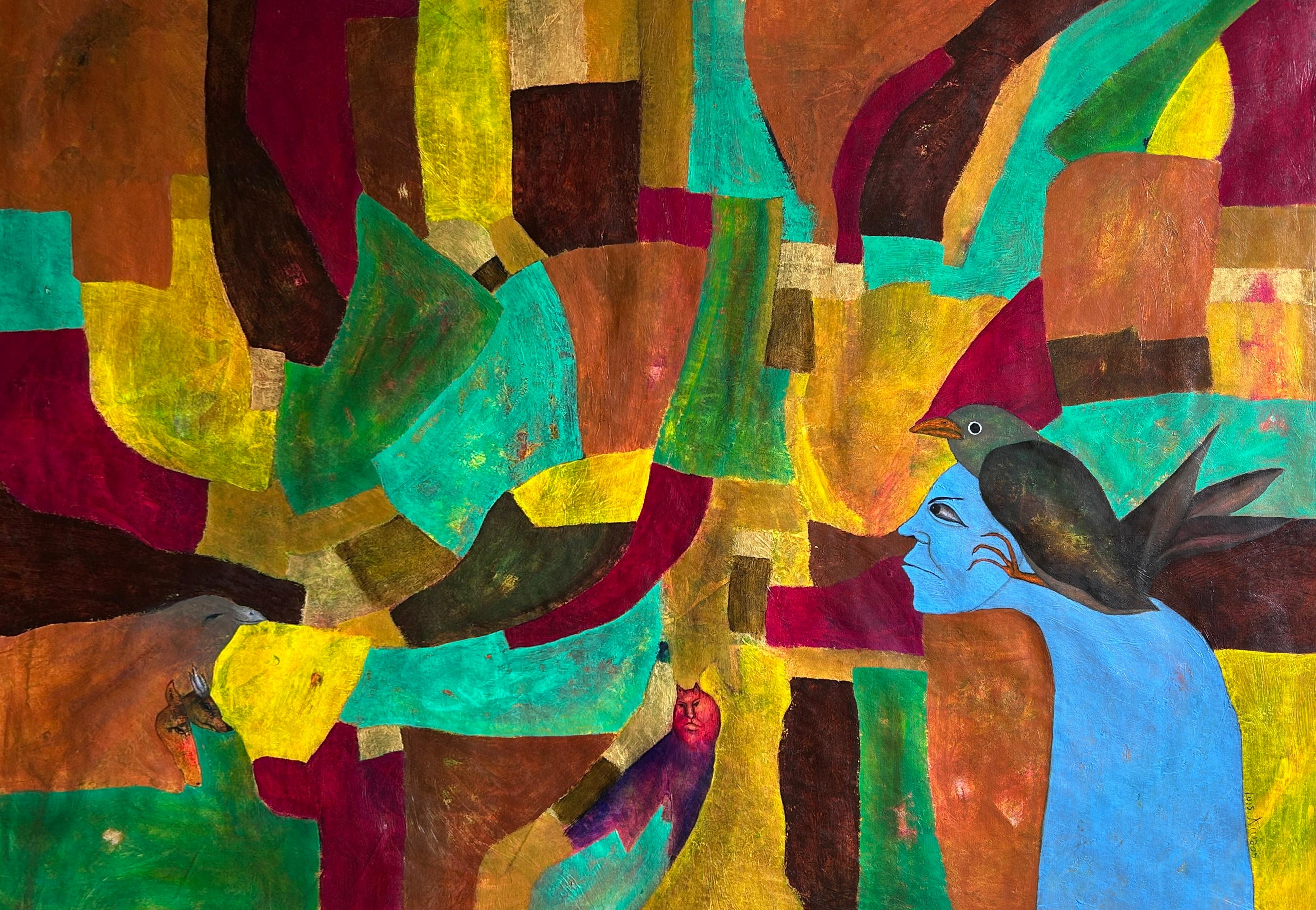 charming antique oil painting on wood board unsigned but attributed to the artist, Adolphe Deteix (1892-1967) see label on back, part of a private collection. Three women sit aroun...